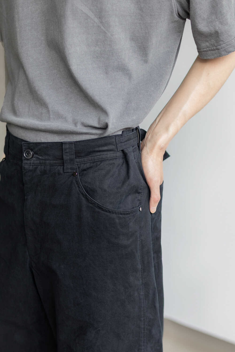 고밀도 cotton원단에 겉면에 피치를 내고 바이오한 부드러운 원단을 사용했으며, 봉제 완성 후 원단의 장점을 끌어낼 수 있는 방법으로 가먼트워싱하여 자연스러운 퍼커링과 편안한 착용감이 좋은 팬츠입니다.