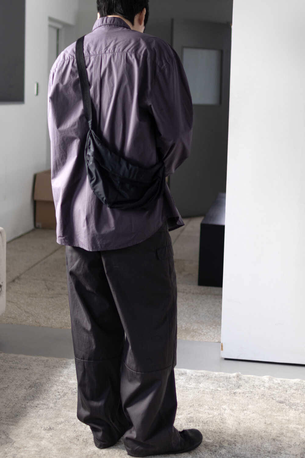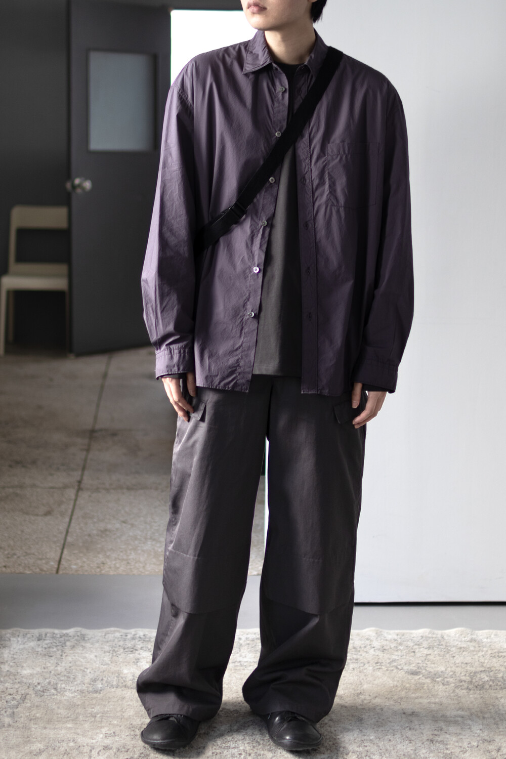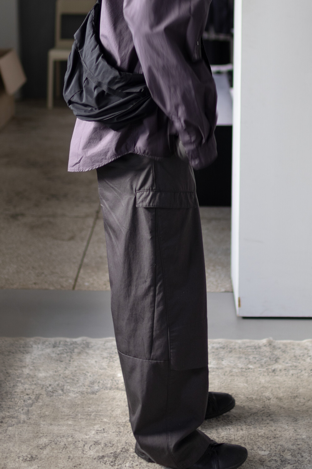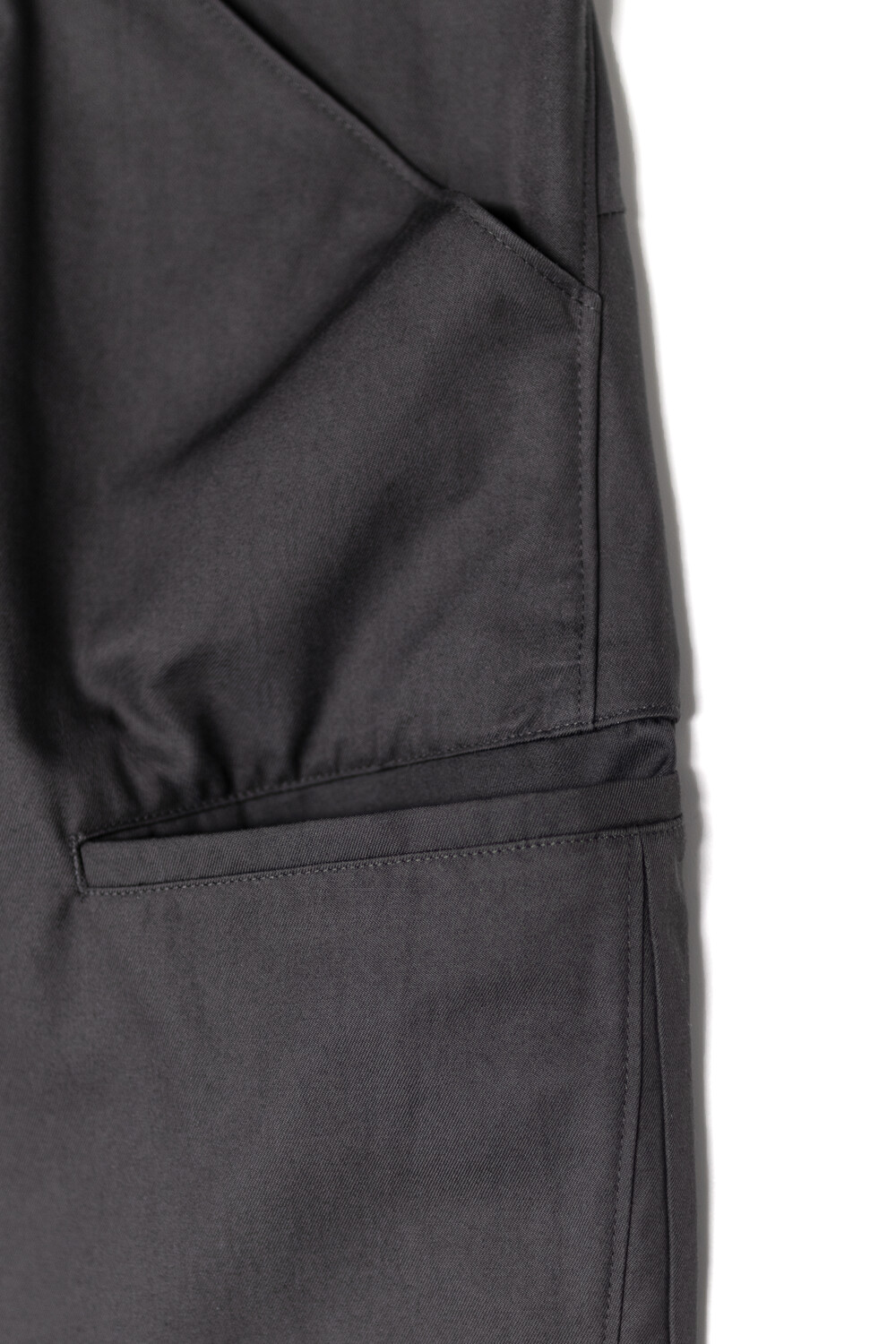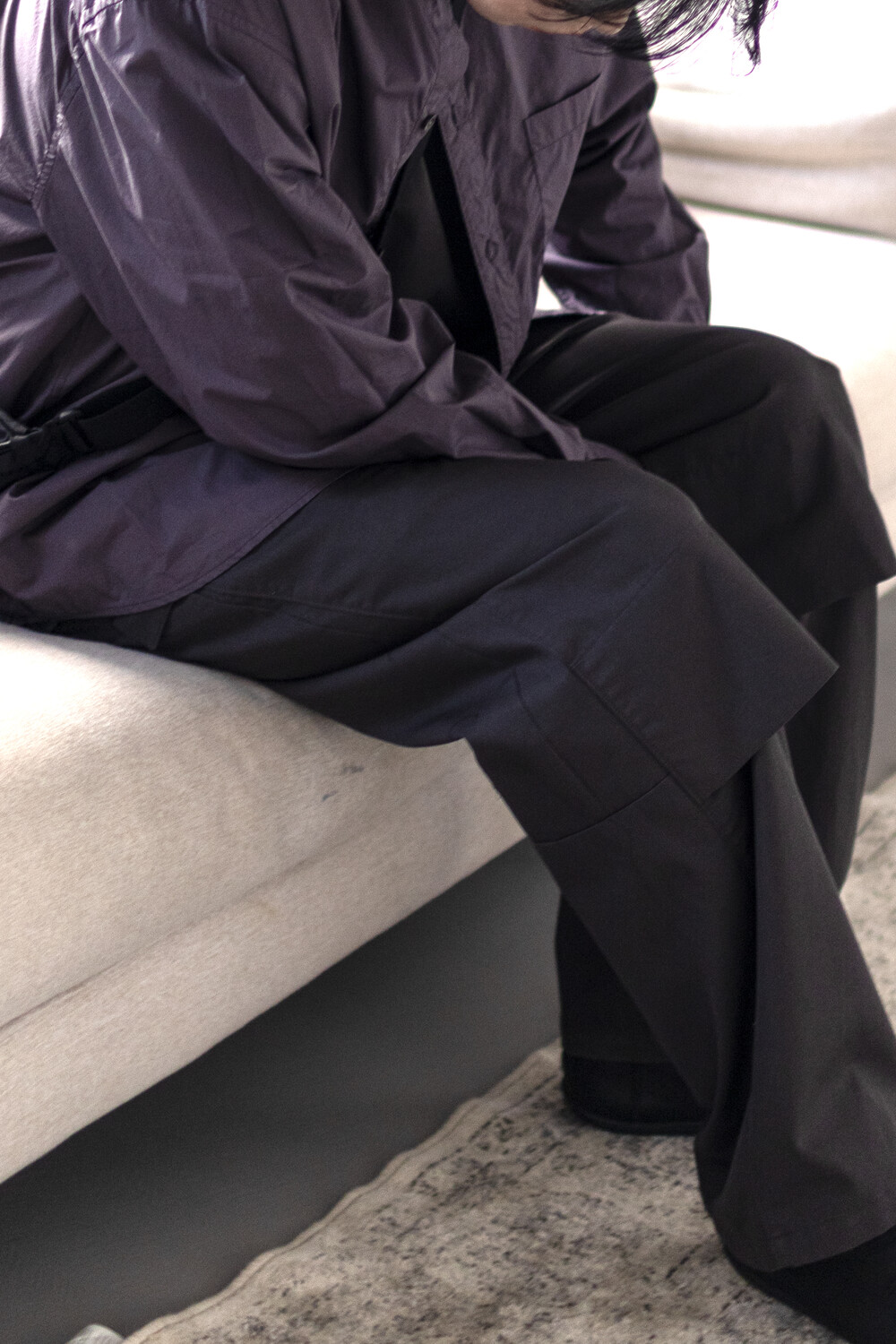 밀도감 있는 C/P 혼방 소재를 베이스로 상동, 전-측면에 구조적인 베리에이션이 있는 <6P 플랩 팬츠>입니다.