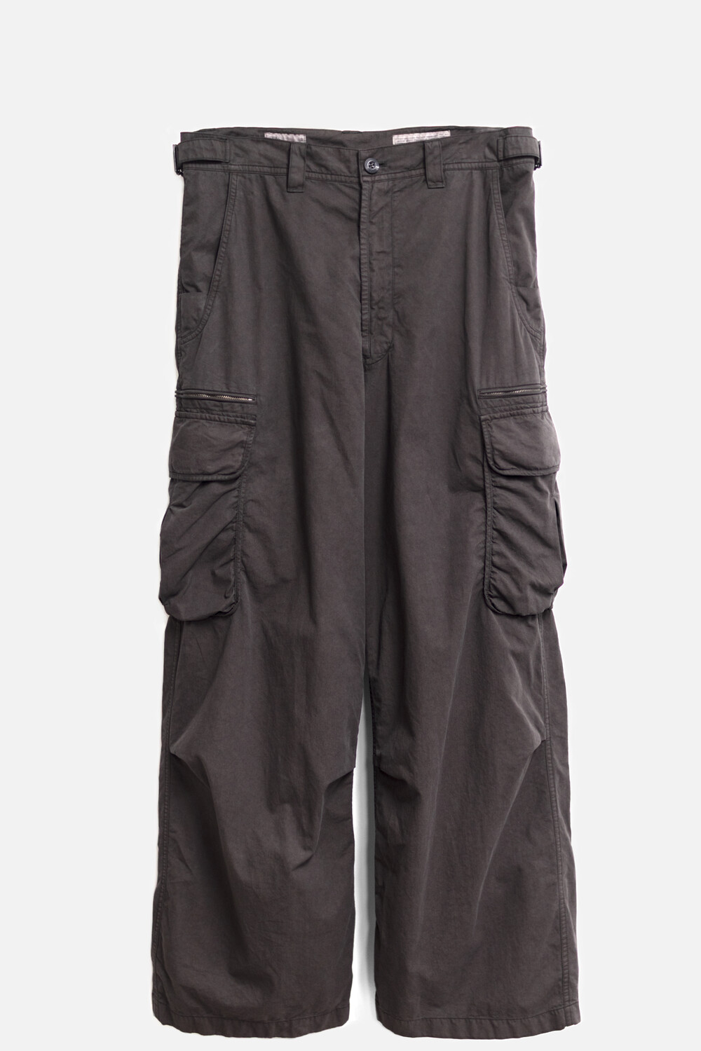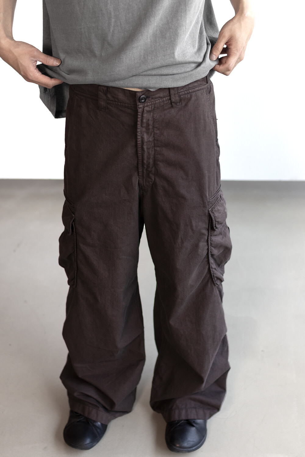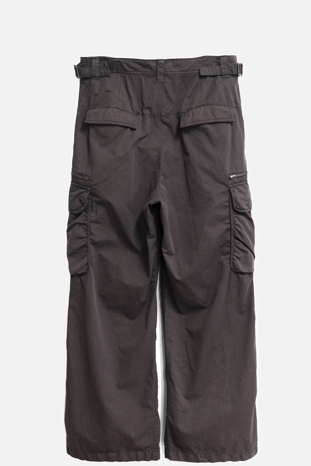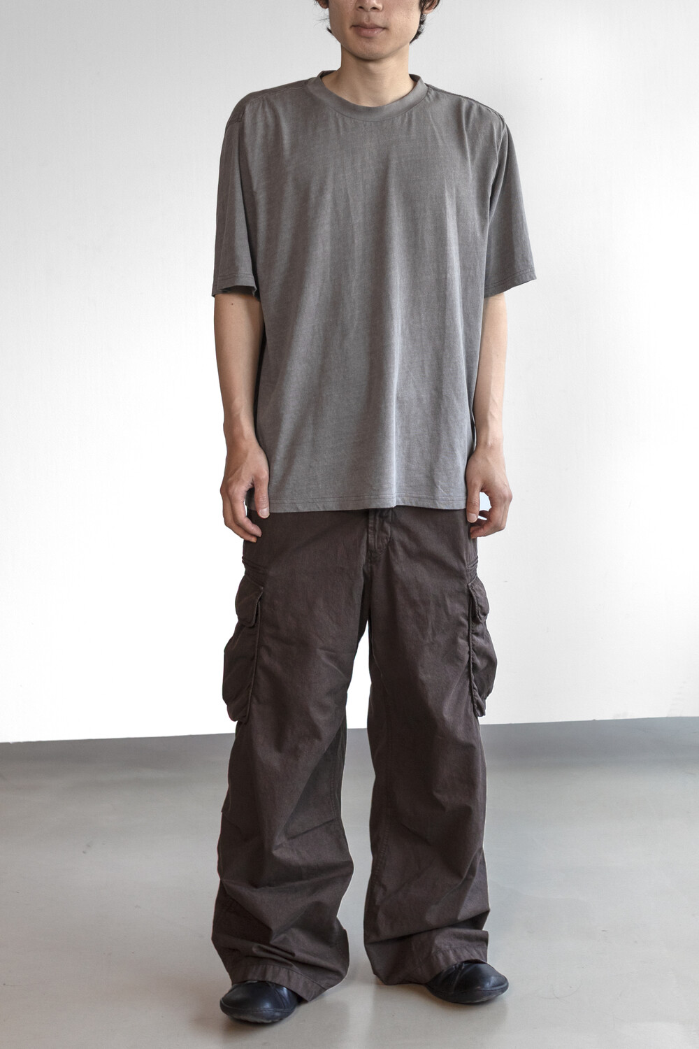 각기 다른 8개의 포켓과 여유 있는 실루엣, 완성 후 가먼트 다잉하는 방식으로 불균일하고 깊은 색감을 갖는 <8p zip cargo pants>입니다.