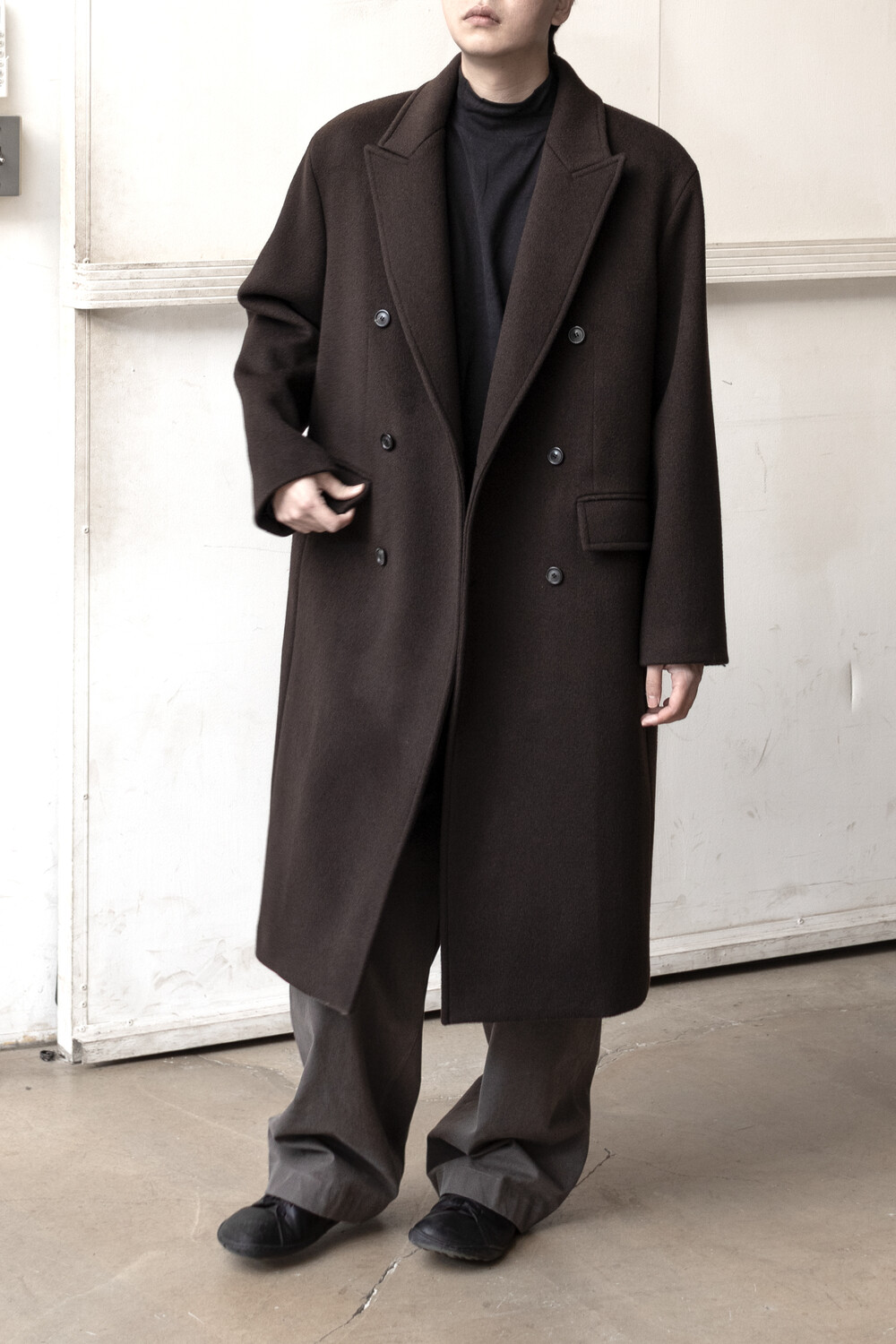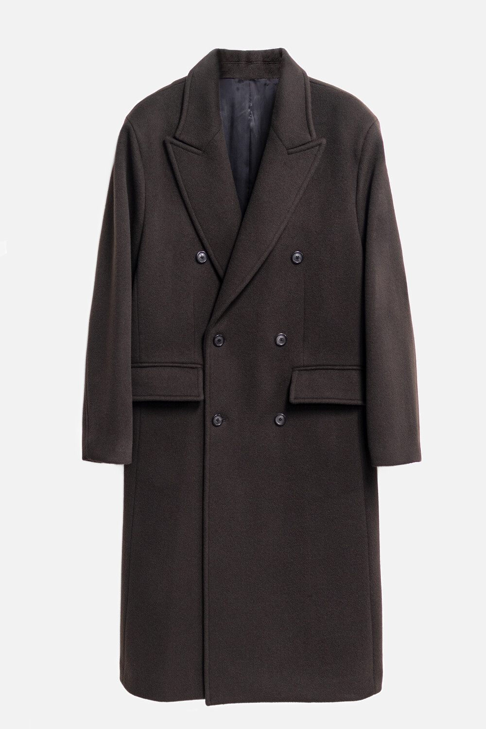 드레시한 인식의 피크드 라펠 더블 브레스트를 캐쥬얼한 분위기로 제작한 <더블브레스트 코트>입니다.