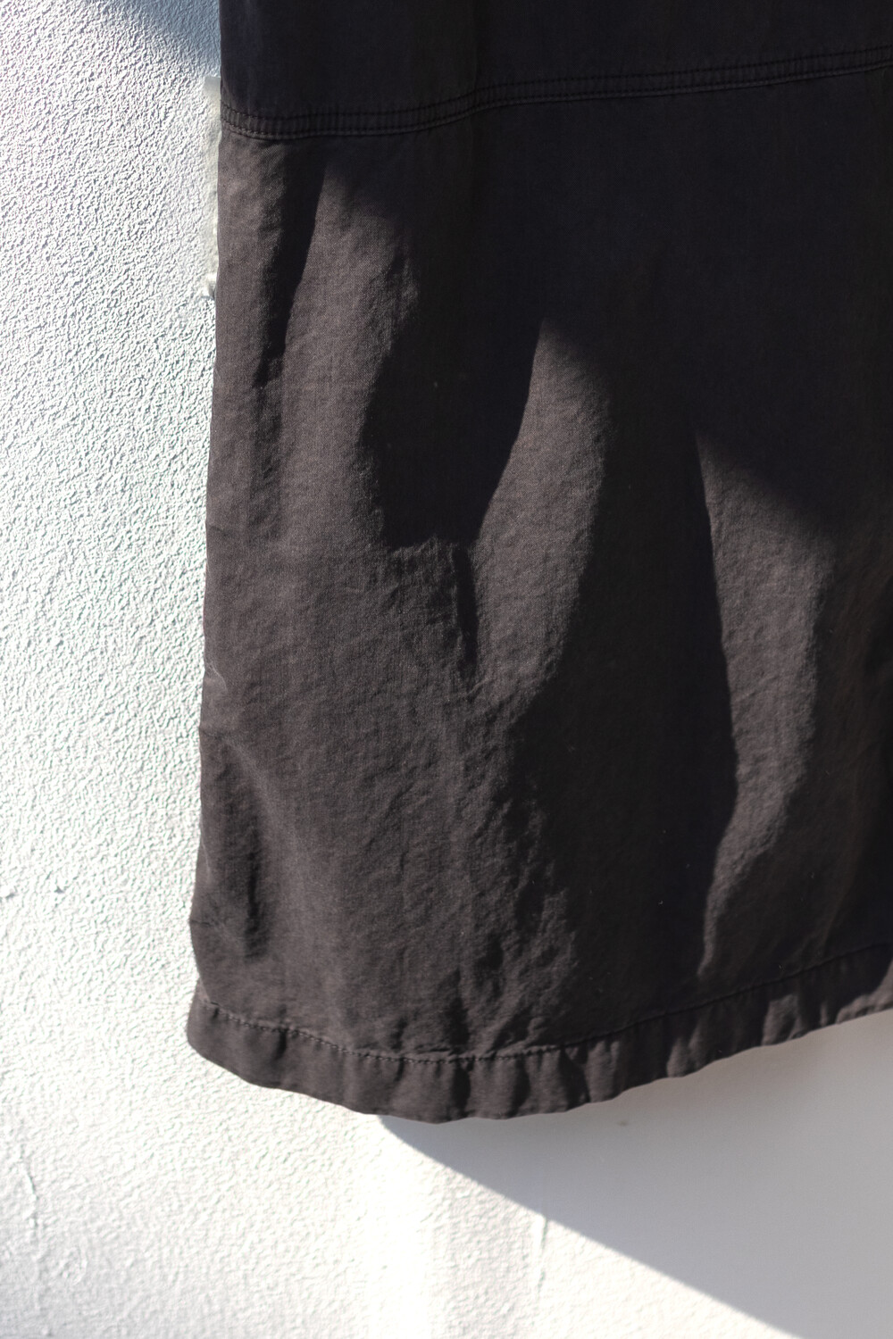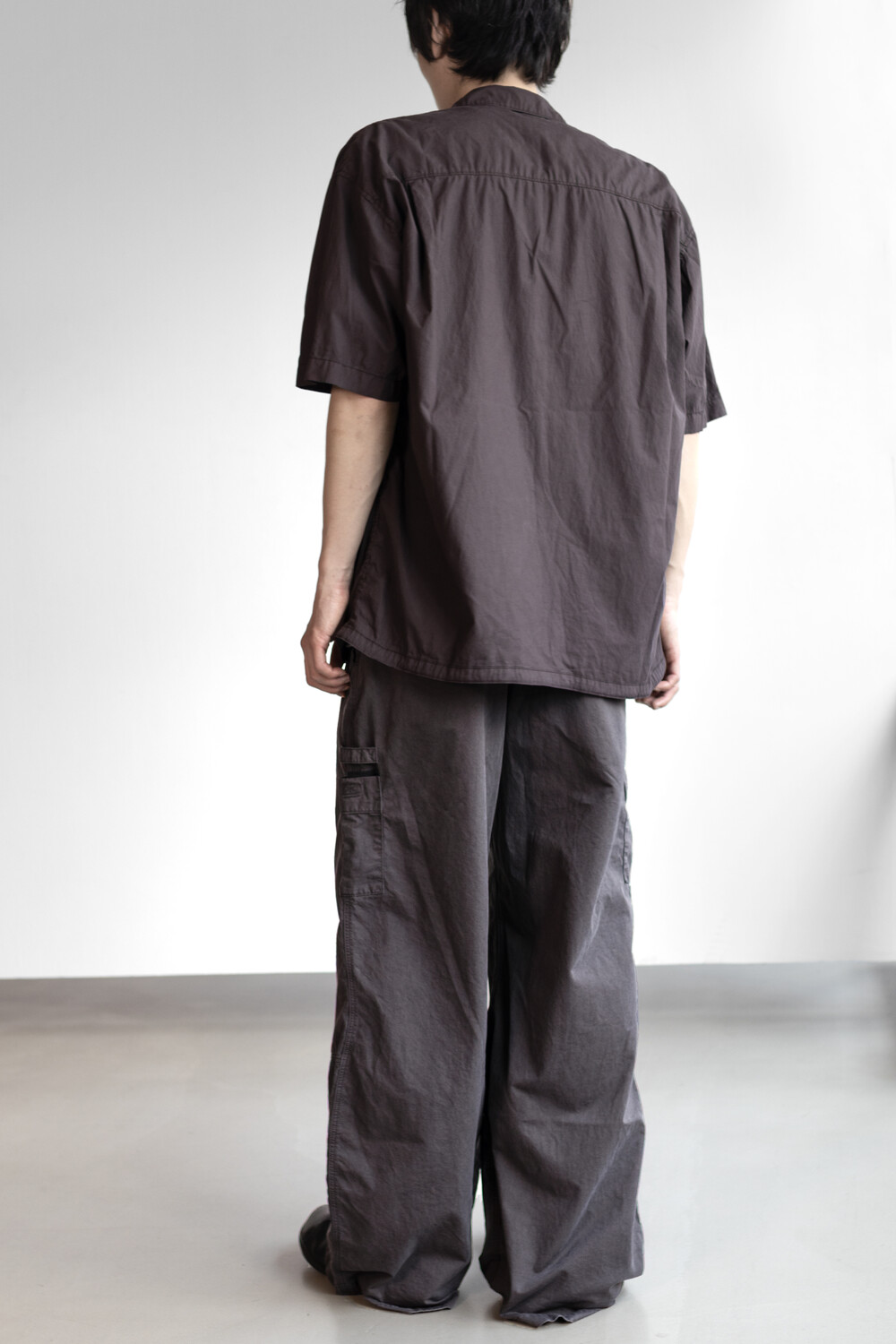 제품 완성 후 가먼트 다잉한 제품으로 염료가 봉제 부위와 요소에 불균하게 침투하면서 미세한 음영과 깊은 발색을 갖습니다.