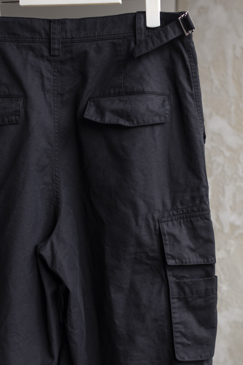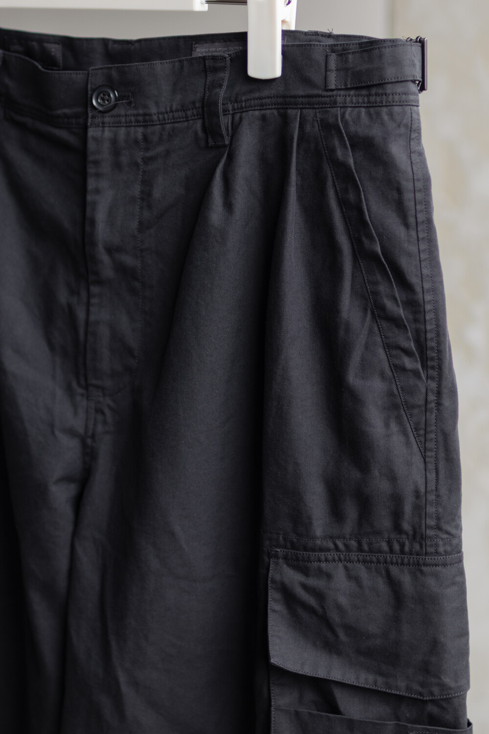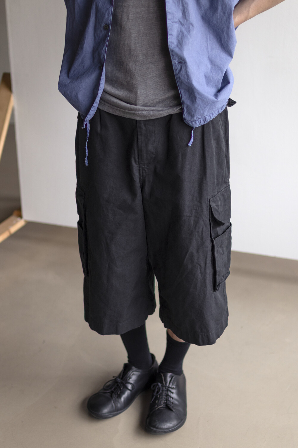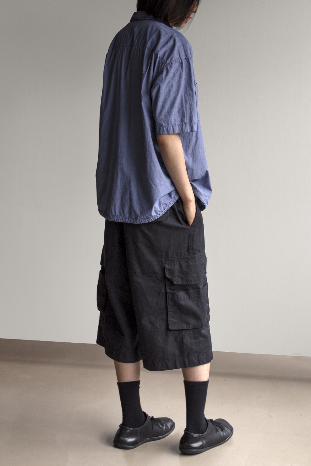 내구성과 유연함을 고루 갖춘 코튼/레이온 혼방 소재를 겉감으로, 측면에 이중 구조의 카고 주머니가 설치된 <Bermuda cargo pants>입니다.