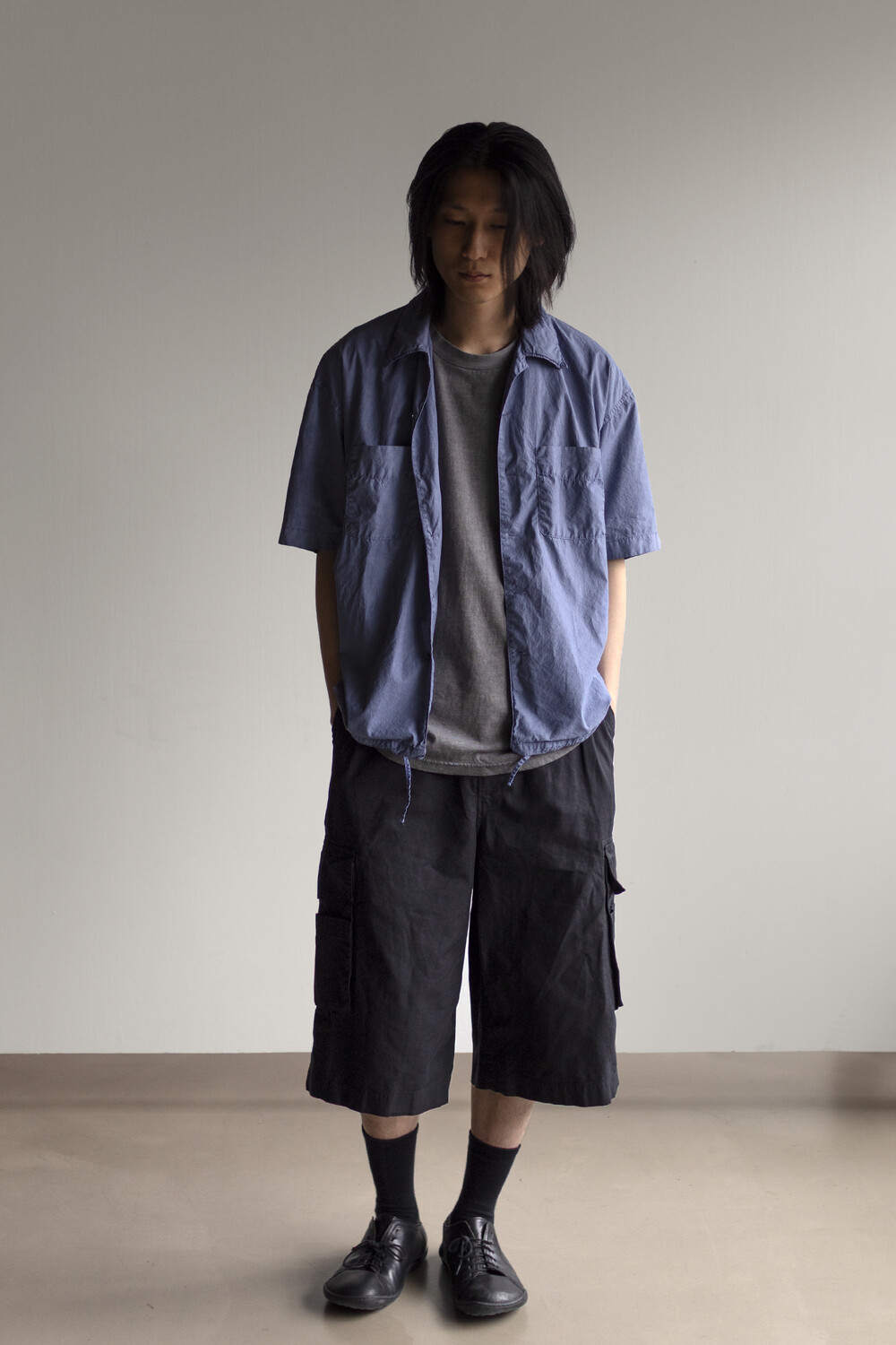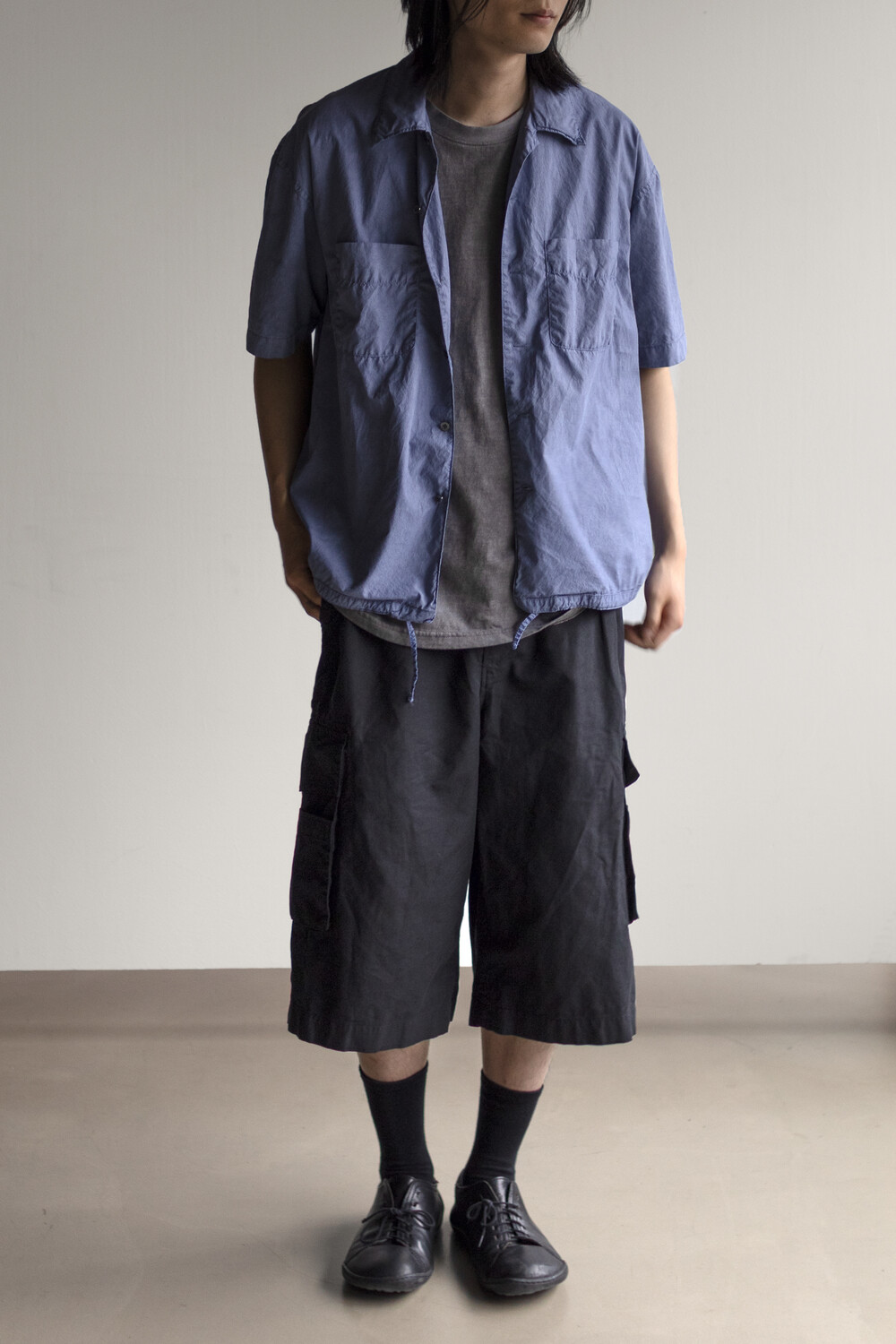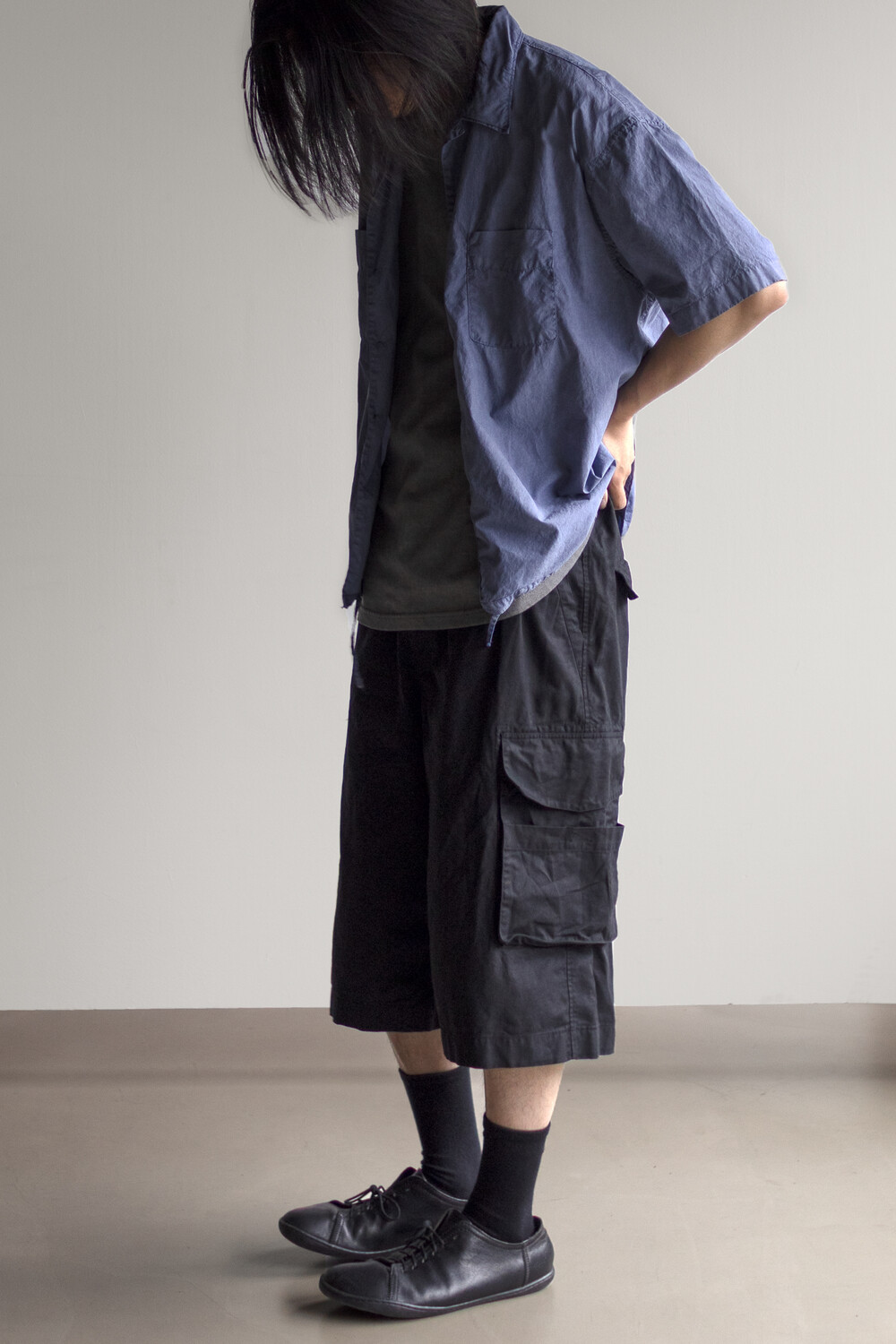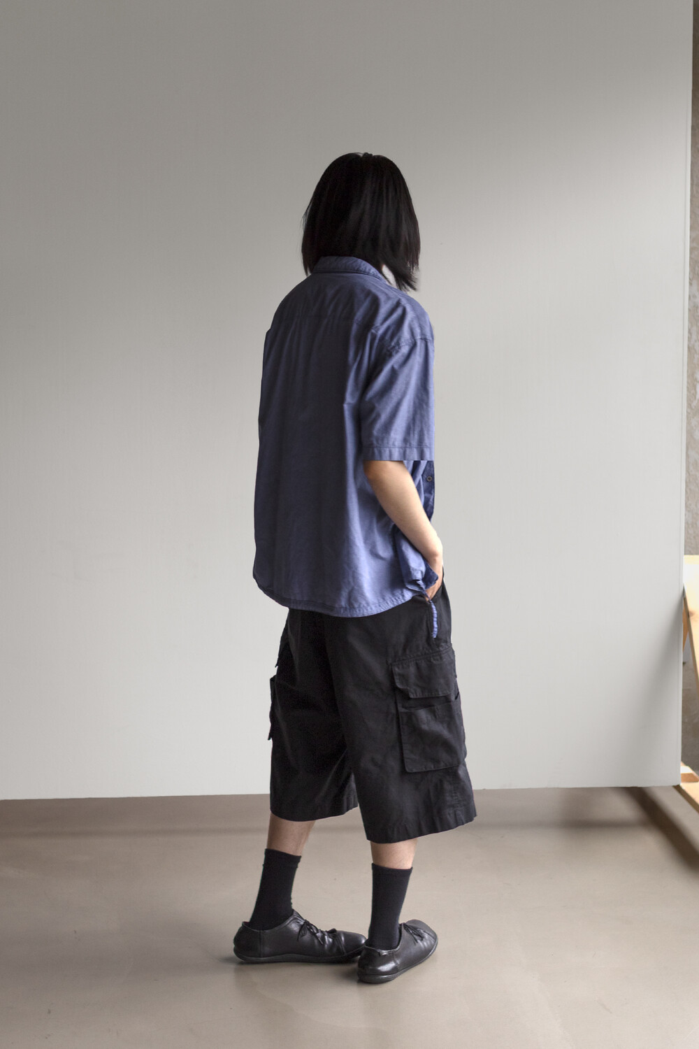 내구성과 유연함을 고루 갖춘 코튼/레이온 혼방 소재를 겉감으로, 측면에 이중 구조의 카고 주머니가 설치된 <Bermuda cargo pants>입니다.