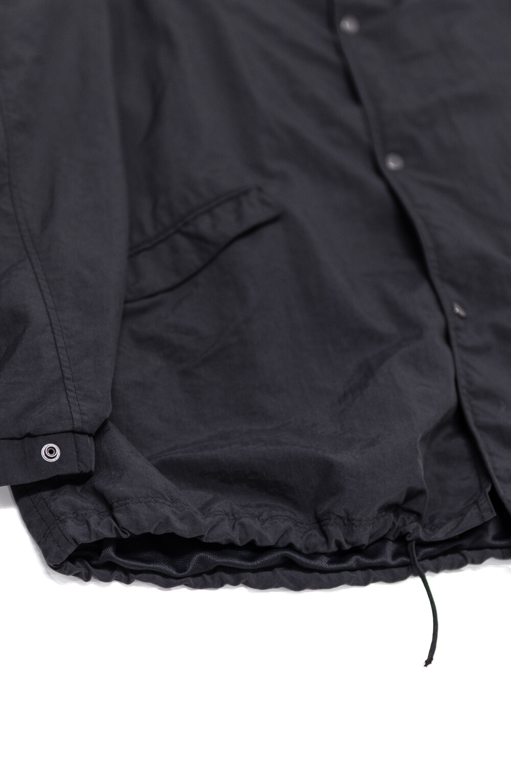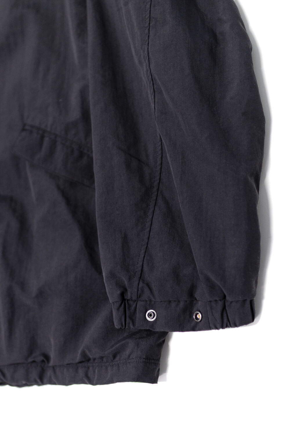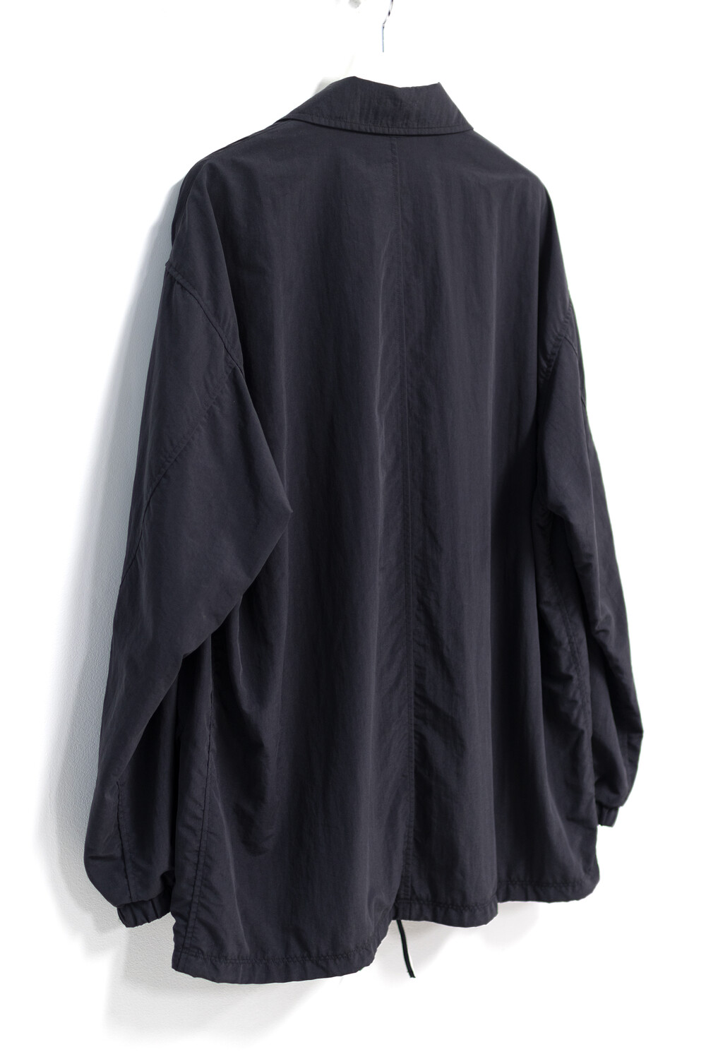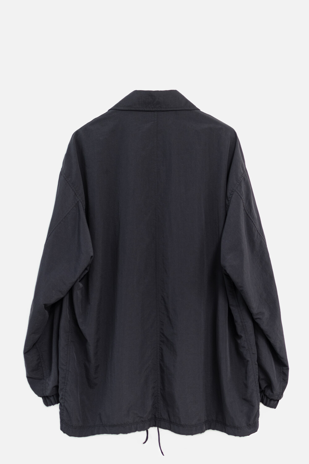 카라와 스냅 방식의 프론트 여밈, 밑단의 끈 조임을 기본 구성으로 하는 코치자켓을 gonak의 무드로 해석하였습니다.