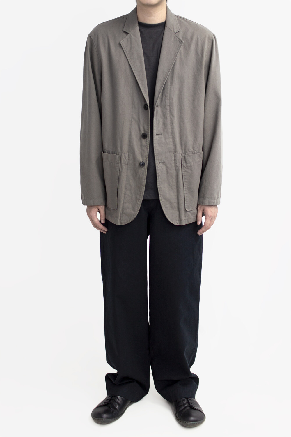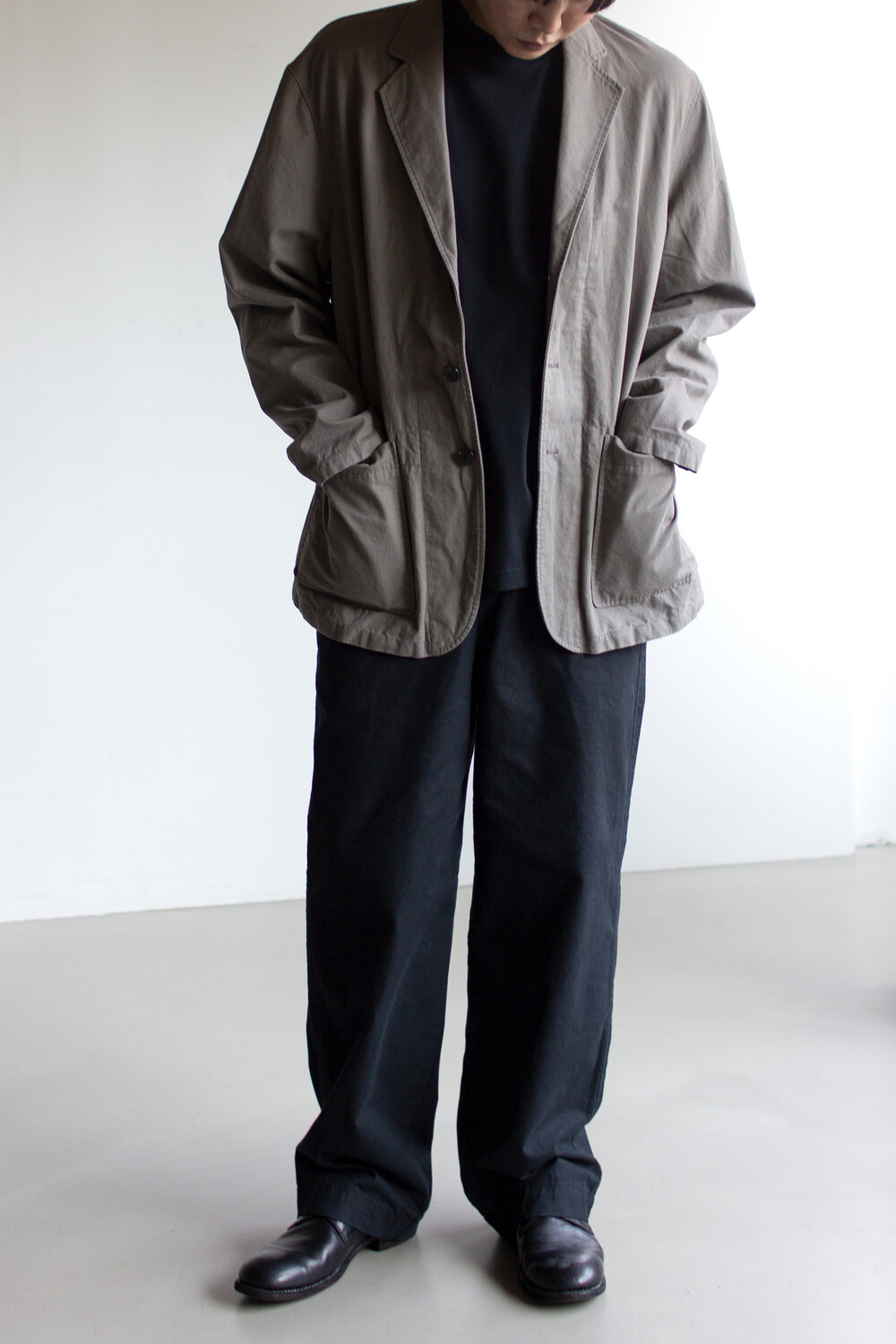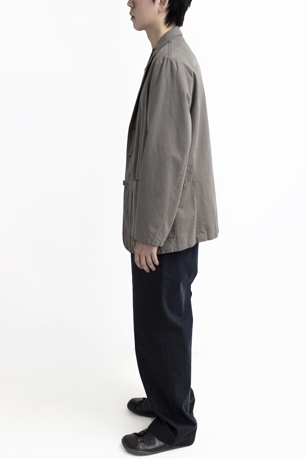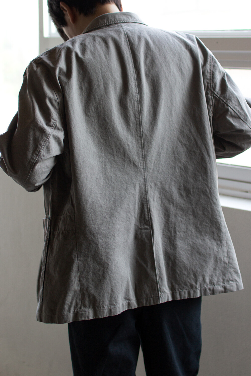 소재 특유의 자연스러운 워셔감이 매력적인 3버튼 여밈의 <cotton drill jacket>입니다.