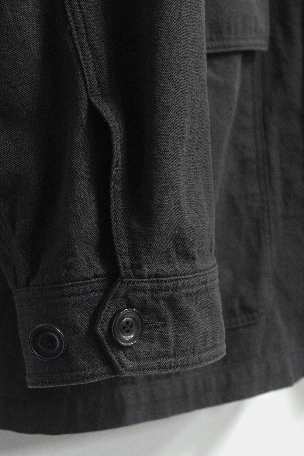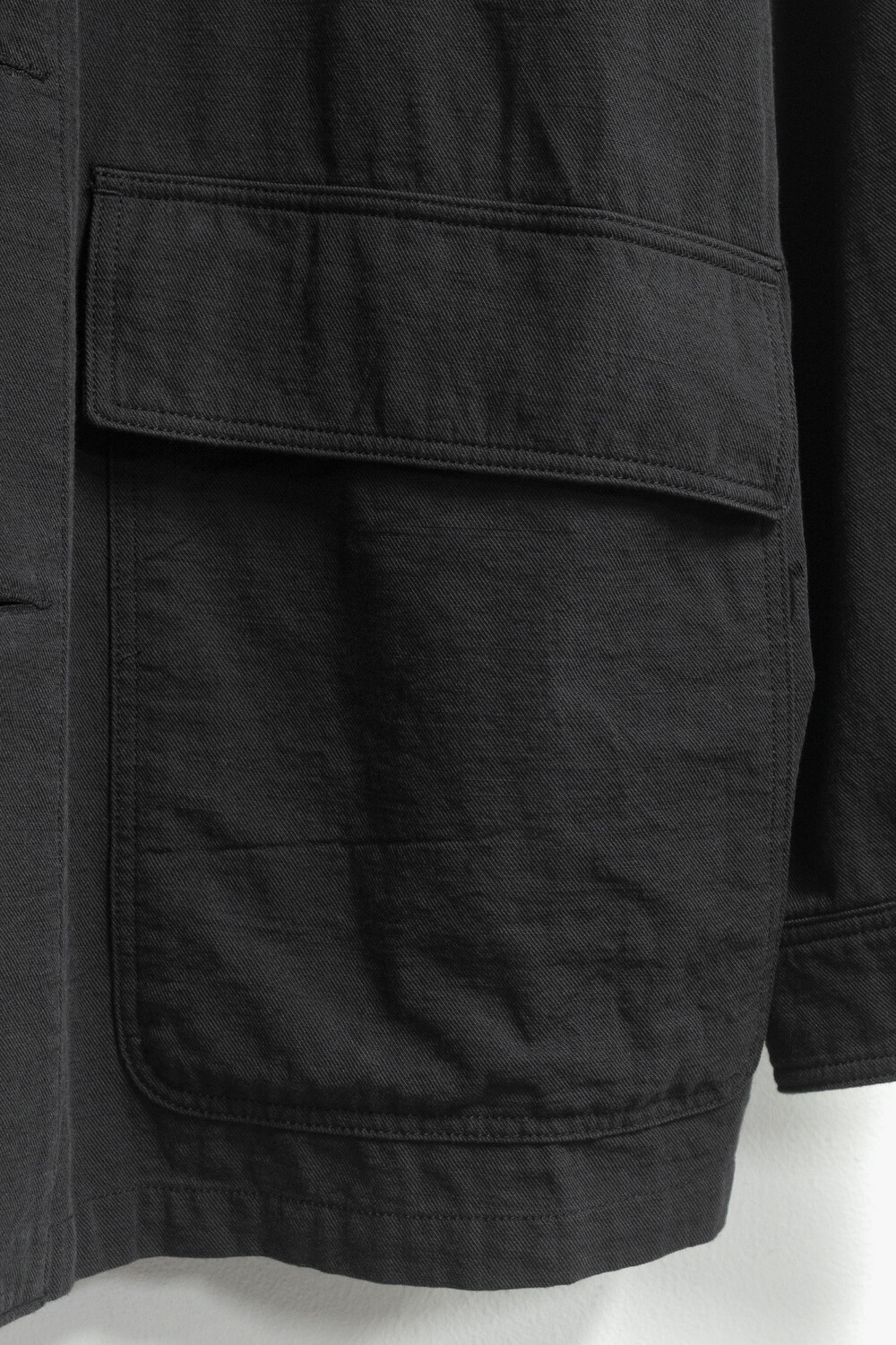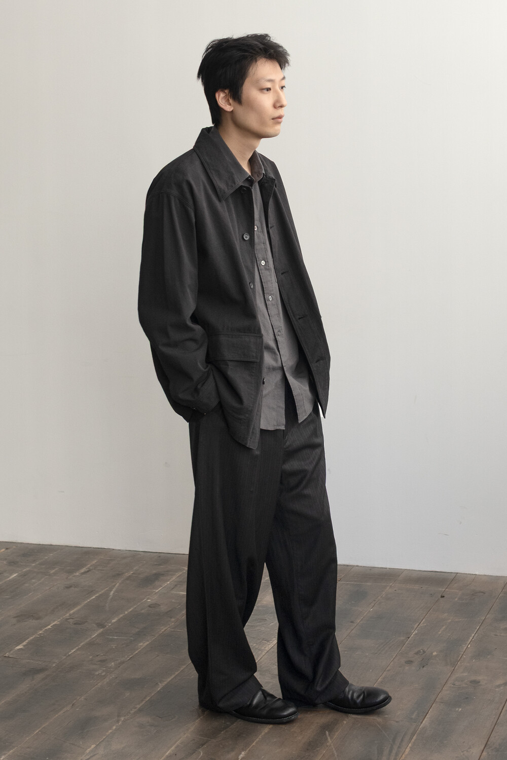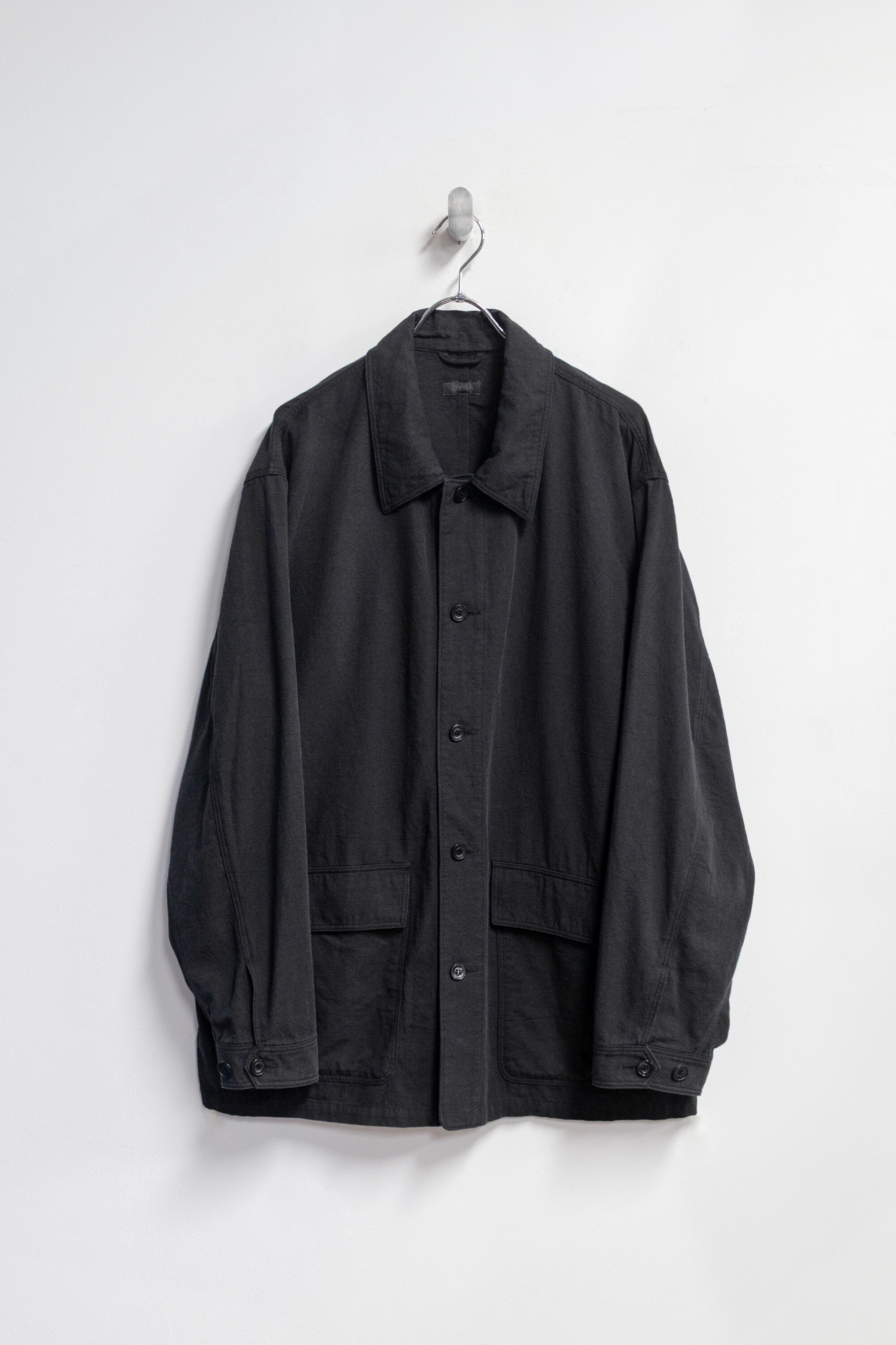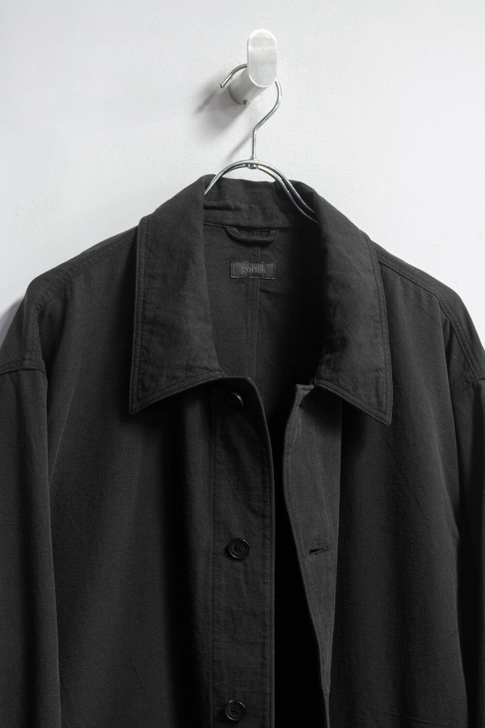 워크 자켓의 맥락에서 이어지는 포켓의 배치와 여밈의 맥락은 가져오되, 일(작업)을 위한 단단하고 고시감 있는 소재와 작업 능률을 위한 저스트한 사이즈감은 덜어냈습니다. 대신 우리가 좋아하는 편안함과 유연함을 중심에 두고, 적당히 여유 있고 차분한 실루엣으로 재구성했습니다.