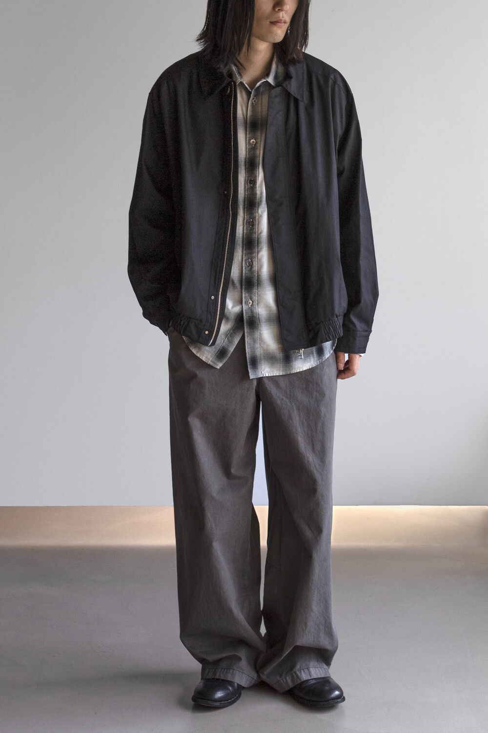 적당히 여유 있으면서 포근하게 가라 앉는 실루엣이 특징인 자켓으로, c/p 혼방소재에 바이오 가공을 하여 구김이 적고, 촉촉함이 느껴지는 소재를 사용했습니다. 앞판 플라켓의 스티치를 주는 방식, 일반적으로 끼워서 설치하는 견보루를 눌러박는 등의 크게 드러나지 않지만 약간의 다름이 있는, 차분함이 좋은 제품이라고 생각합니다.
