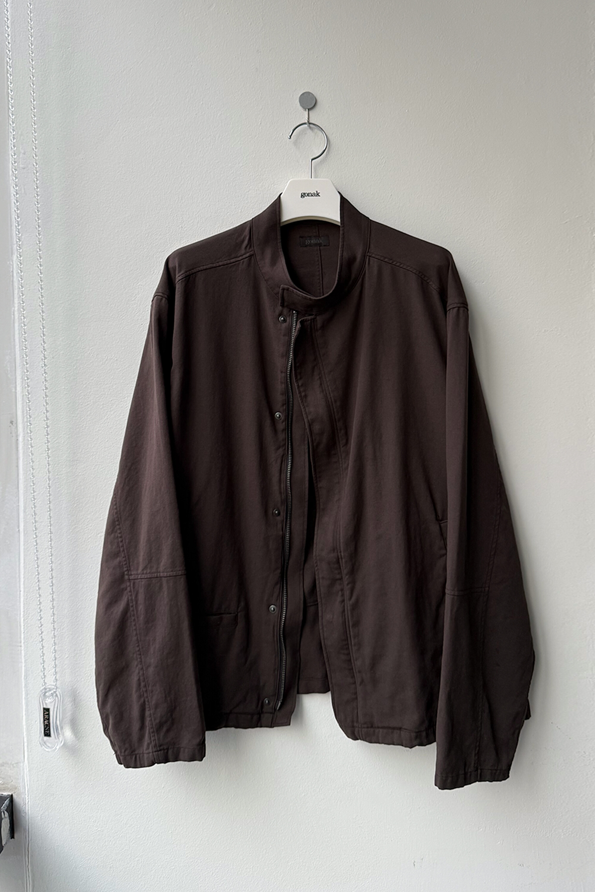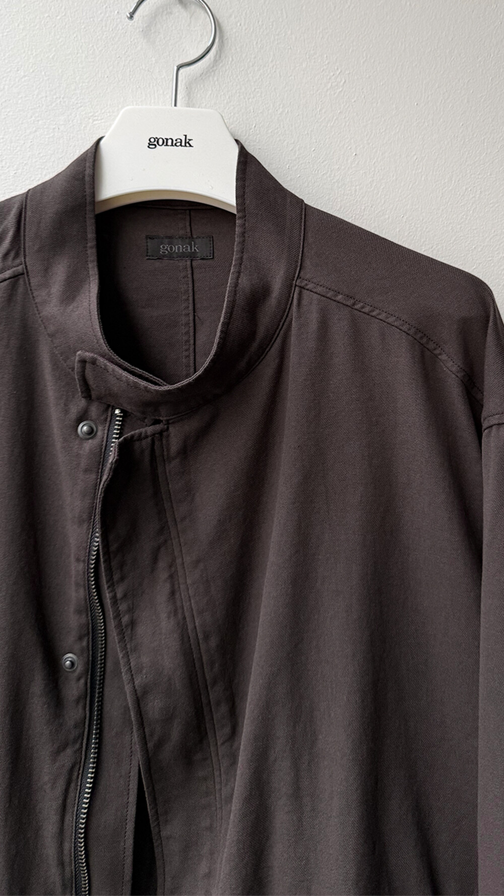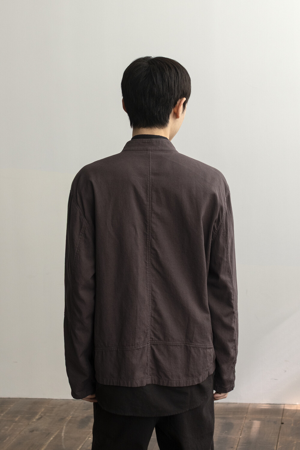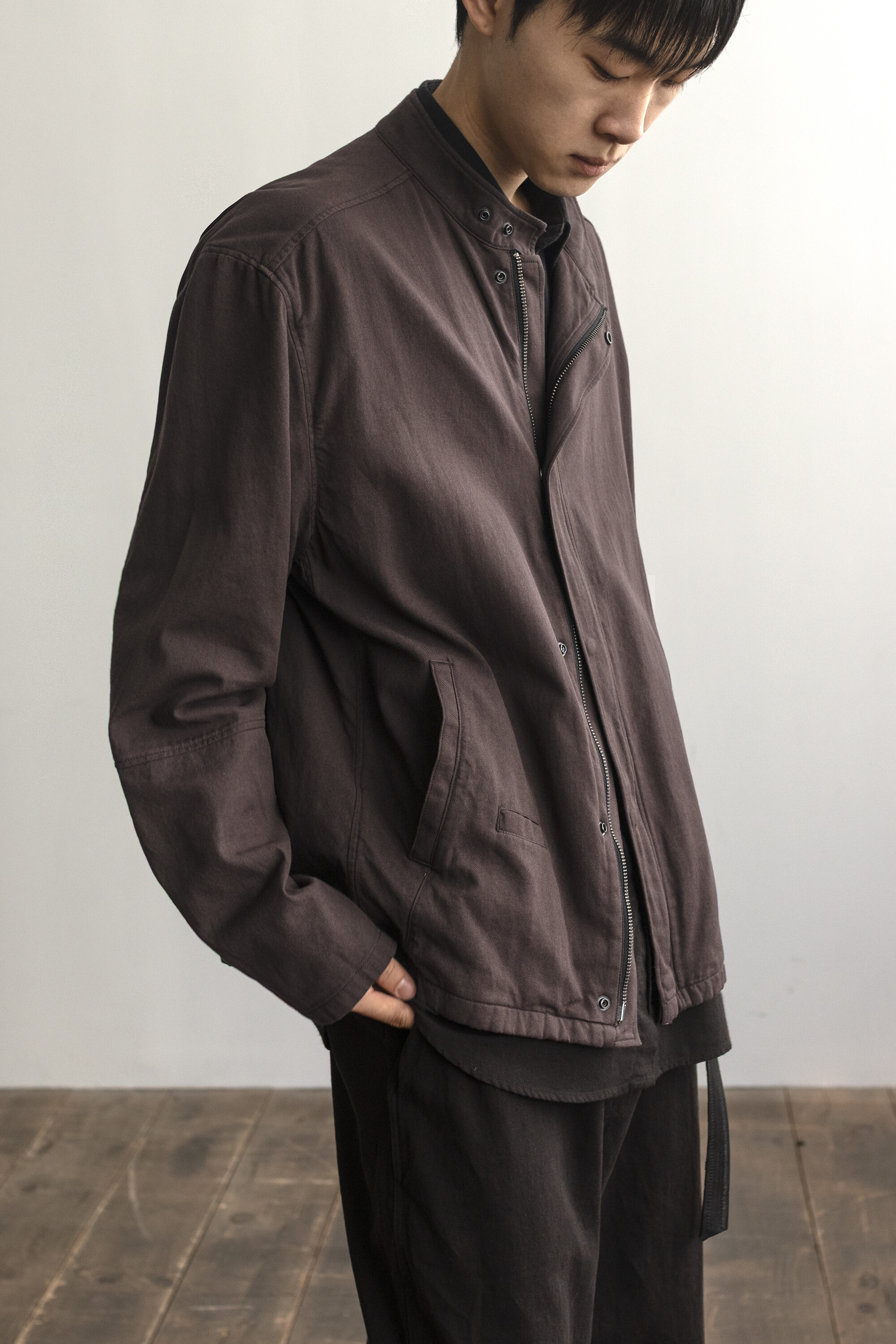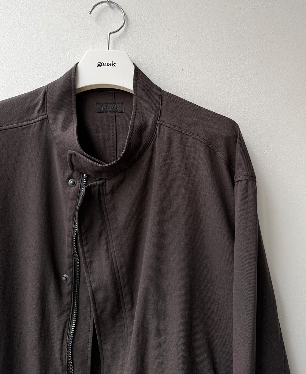 ghost jacket 2.1의 안정적인 패턴을 기반으로 펜싱복이 갖는 전면의 비대칭 여밈과 넥을 보호하기 스탠 카라 등의 구조적 요소를 저희 고낙의 차분한 분위기로 풀어낸 <펜싱 자켓>입니다.