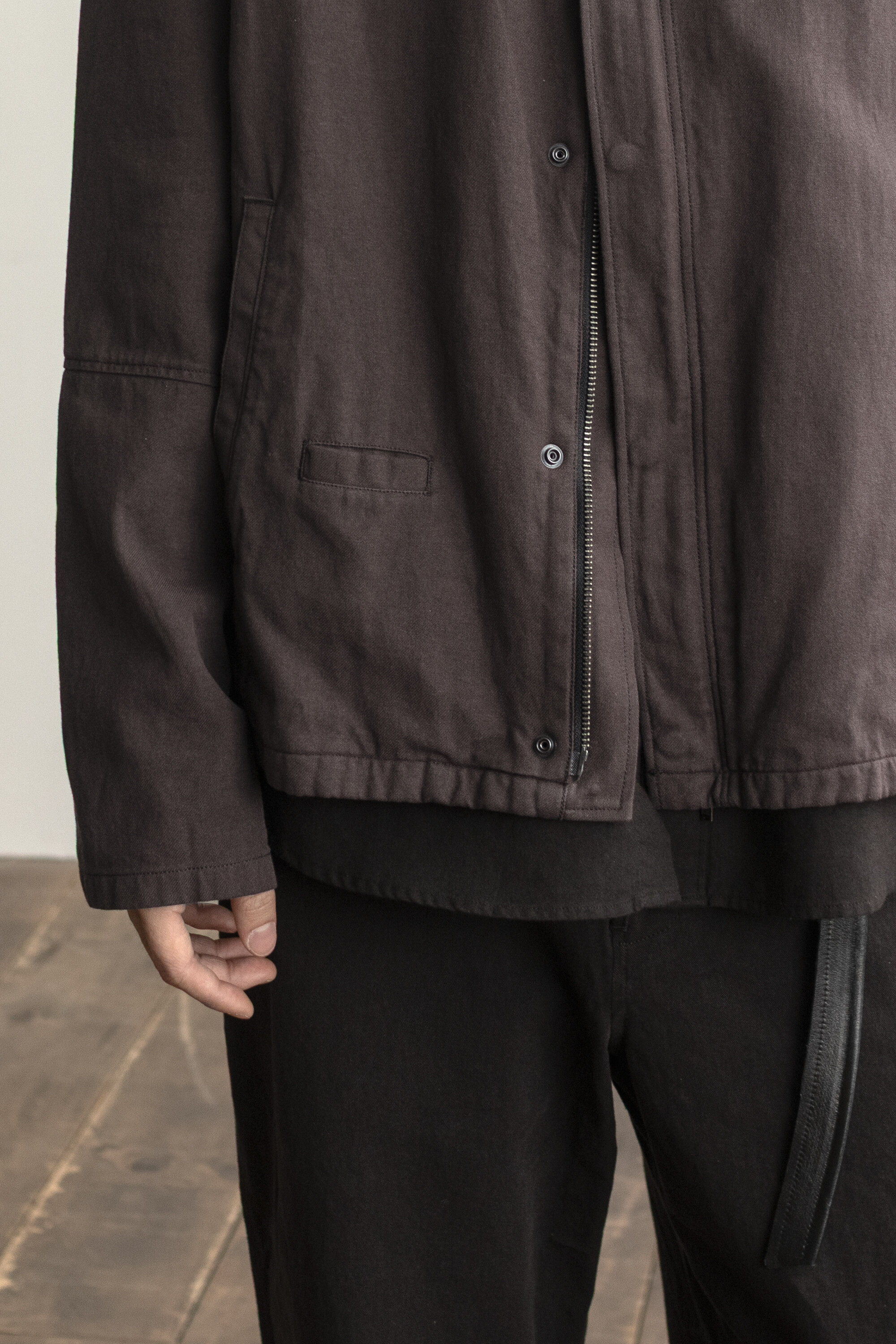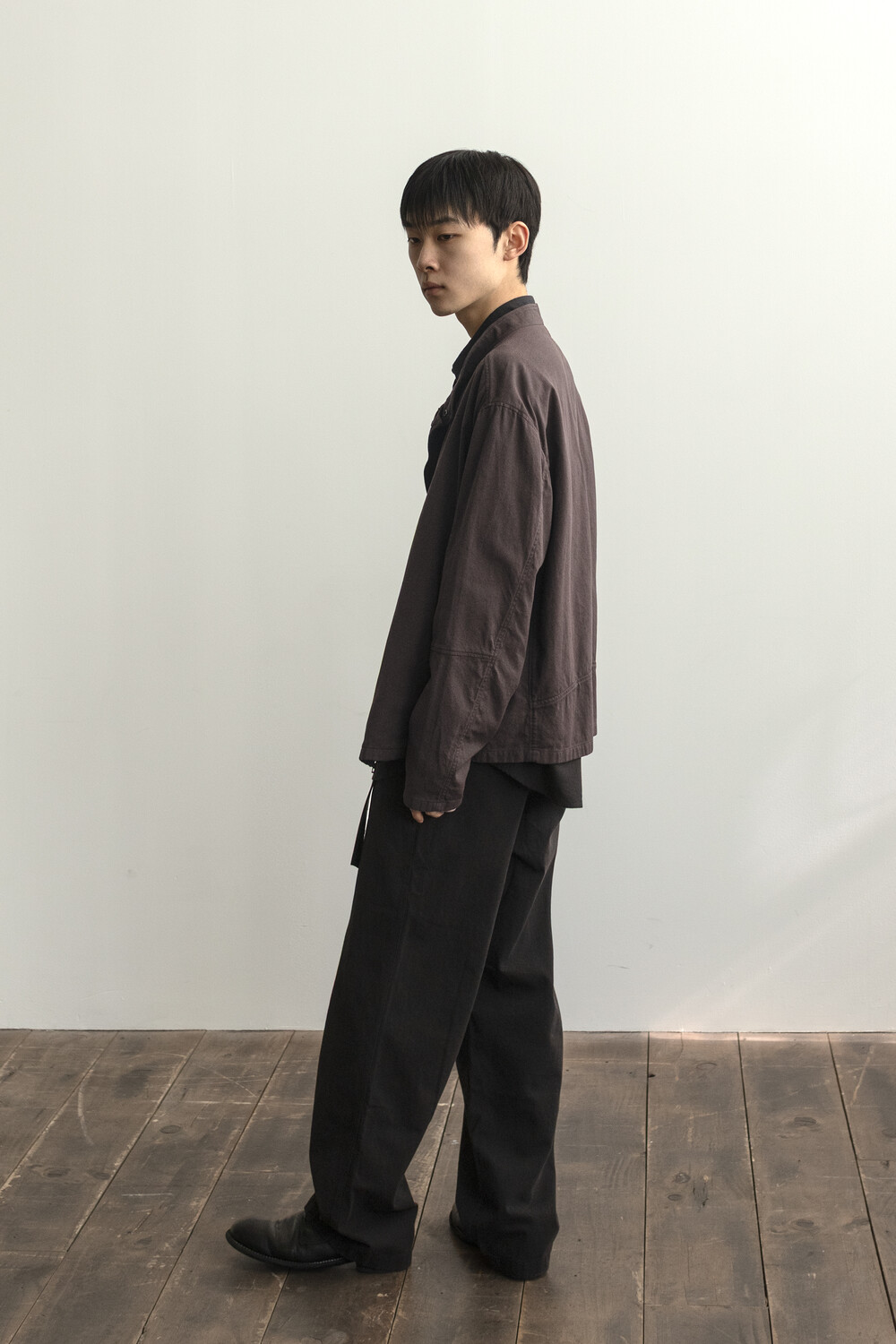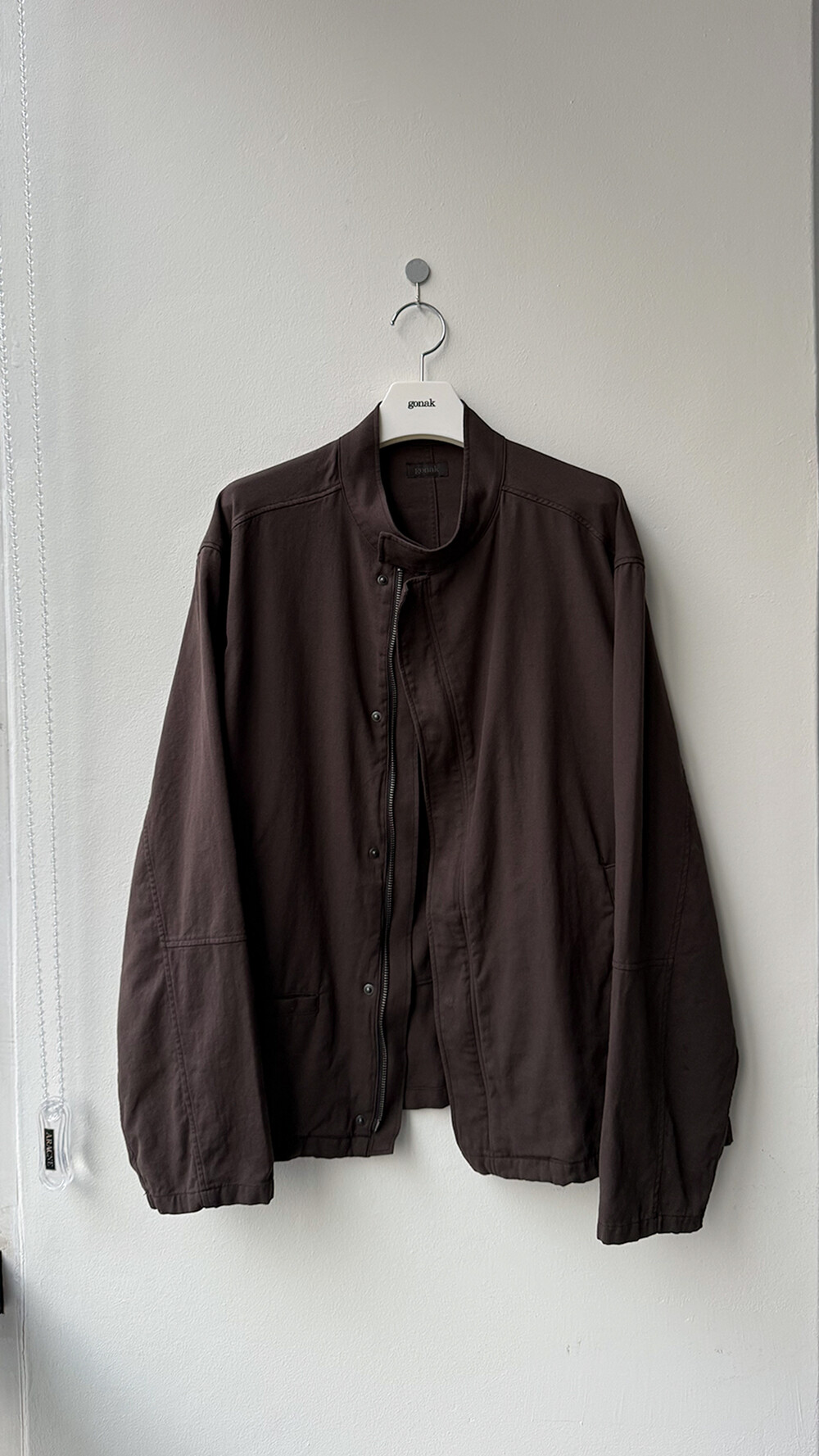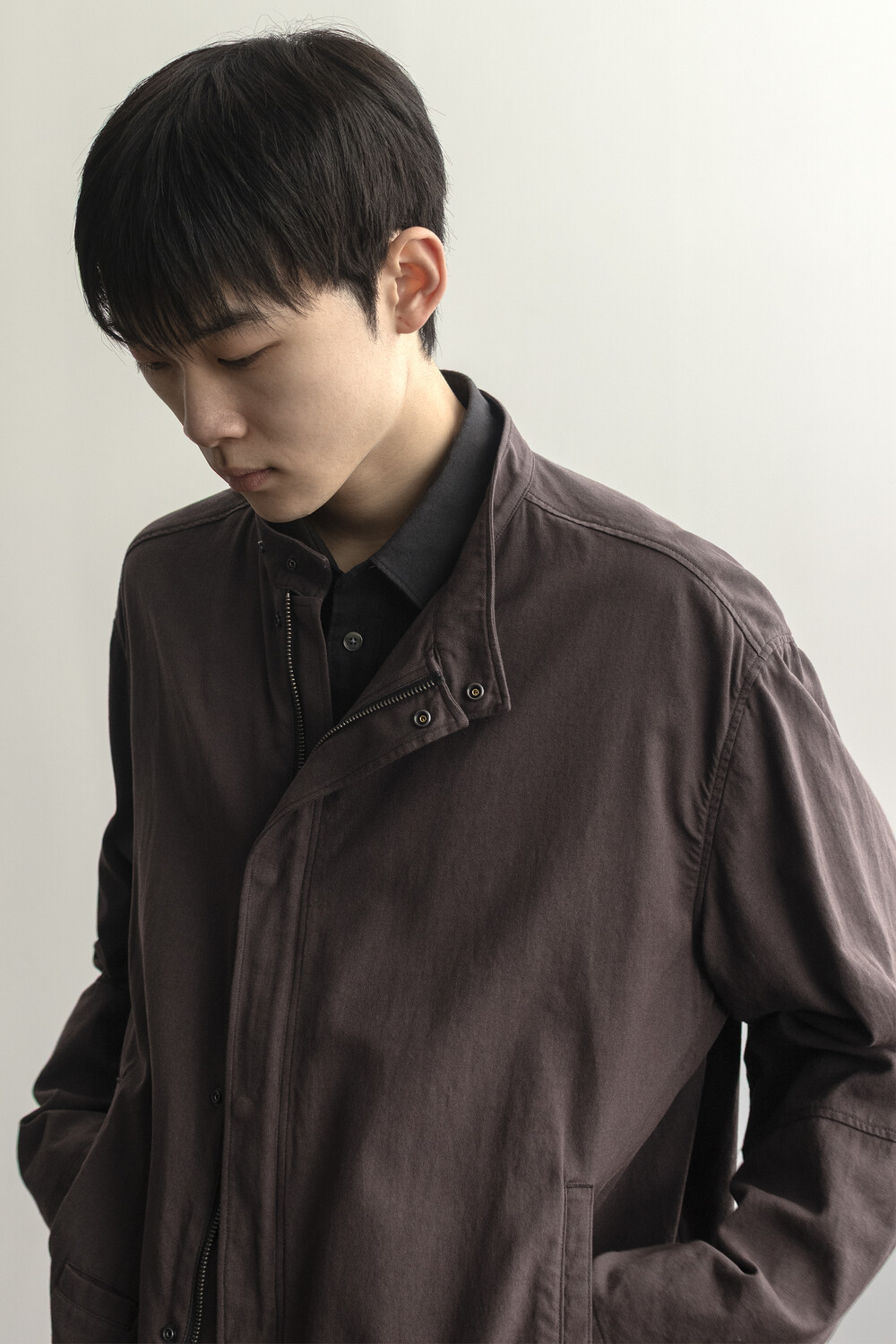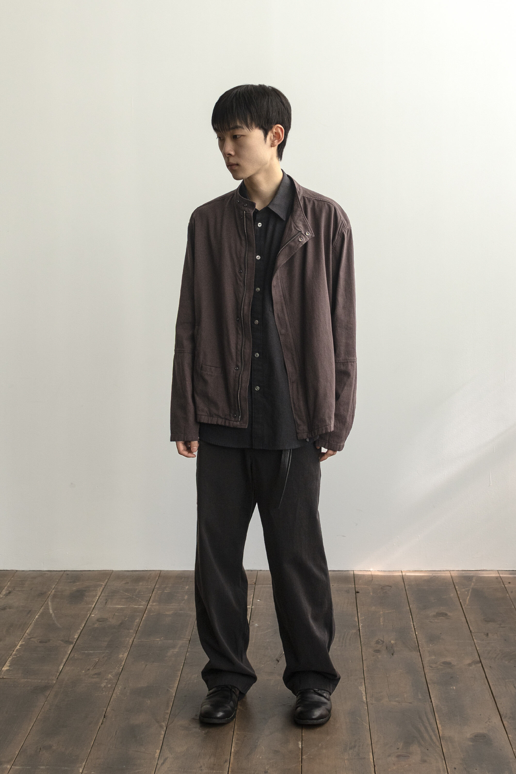 ghost jacket 2.1의 안정적인 패턴을 기반으로 펜싱복이 갖는 전면의 비대칭 여밈과 넥을 보호하기 스탠 카라 등의 구조적 요소를 저희 고낙의 차분한 분위기로 풀어낸 <펜싱 자켓>입니다.