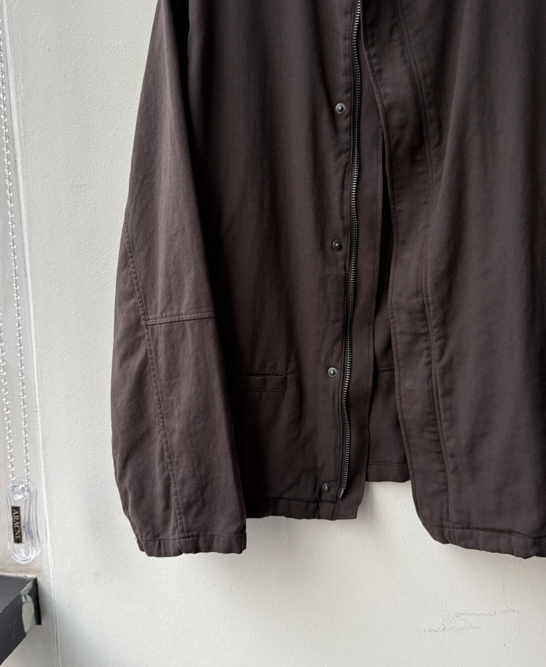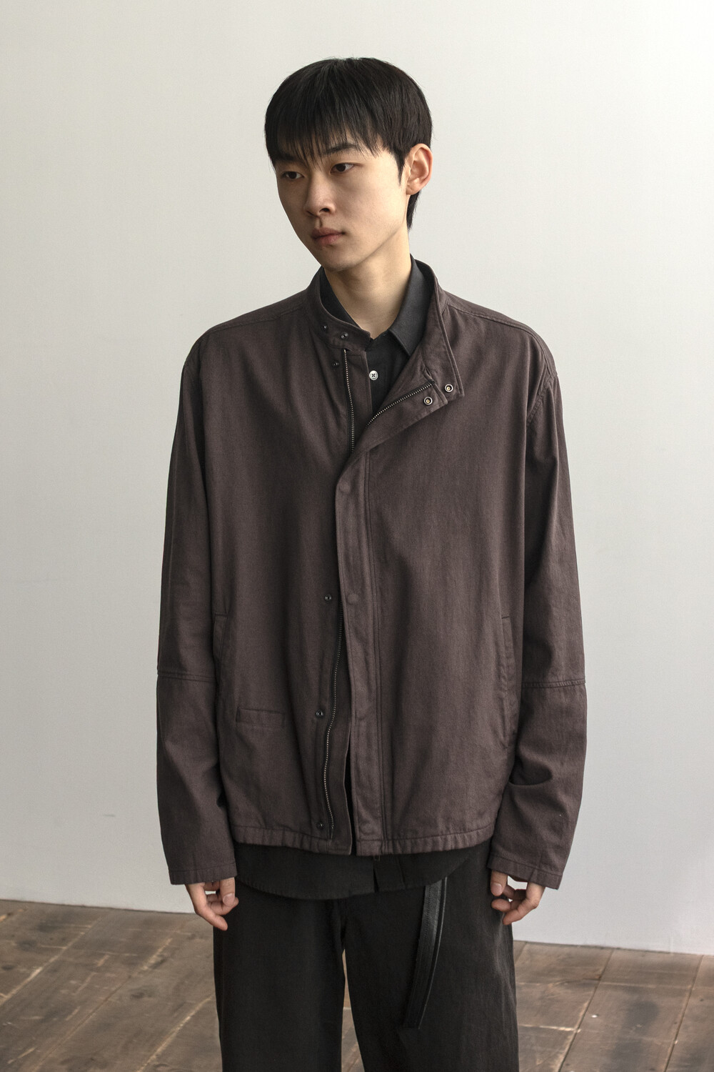 안정감 있는 비대칭 여밈을 바탕으로, 지퍼와 스냅을 모두 여몄을 때와 가볍게 풀어 입었을 때 각기 다른 분위기를 즐길 수 있는 점이 매력적인 자켓이라고 생각합니다.