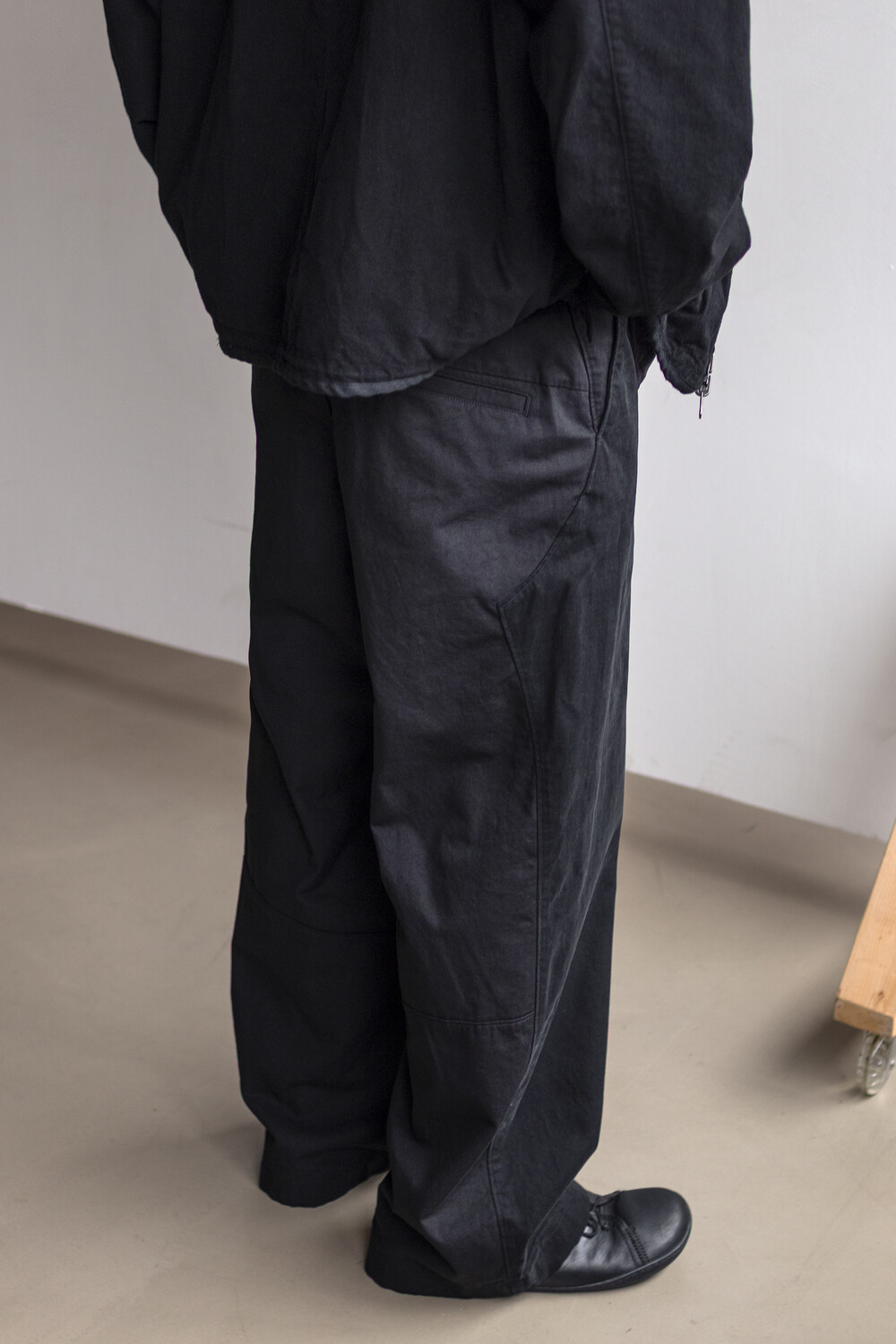 이런 연상을 토대로. 주머니와 이어지는 것처럼 보이는 아웃심이 뒷판으로 넘어가 앞/뒤의 구분을 만들고