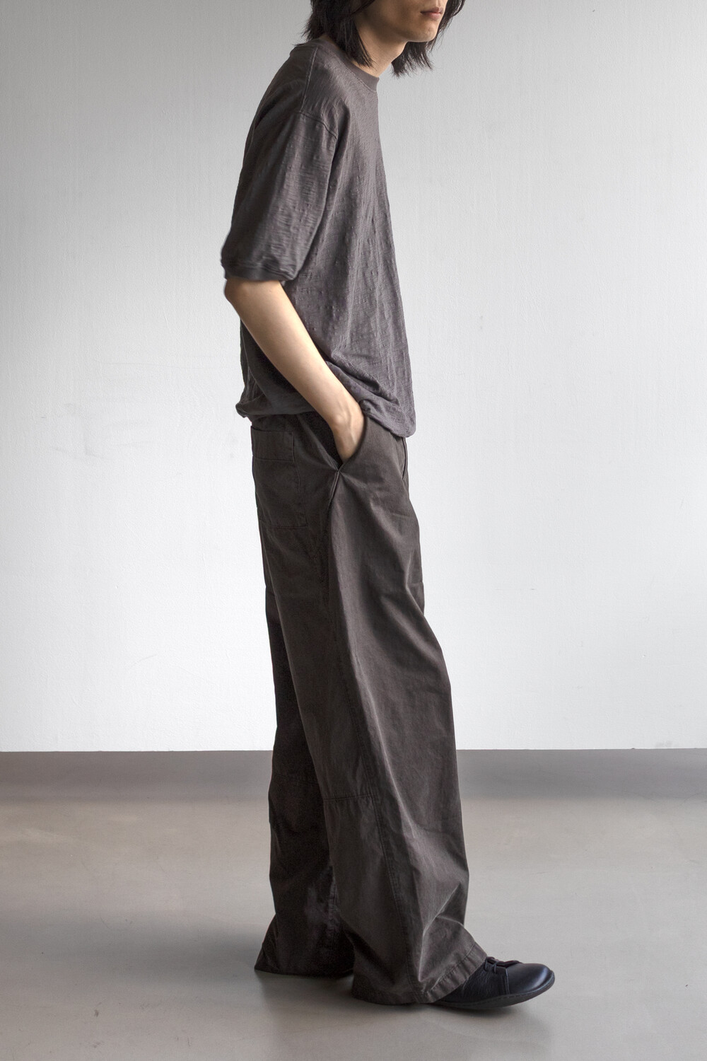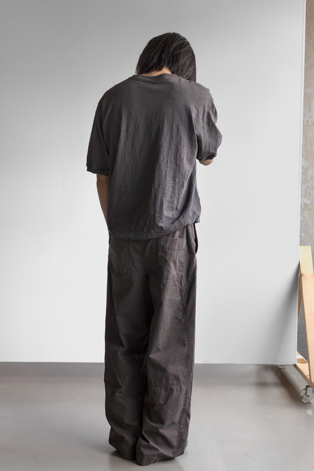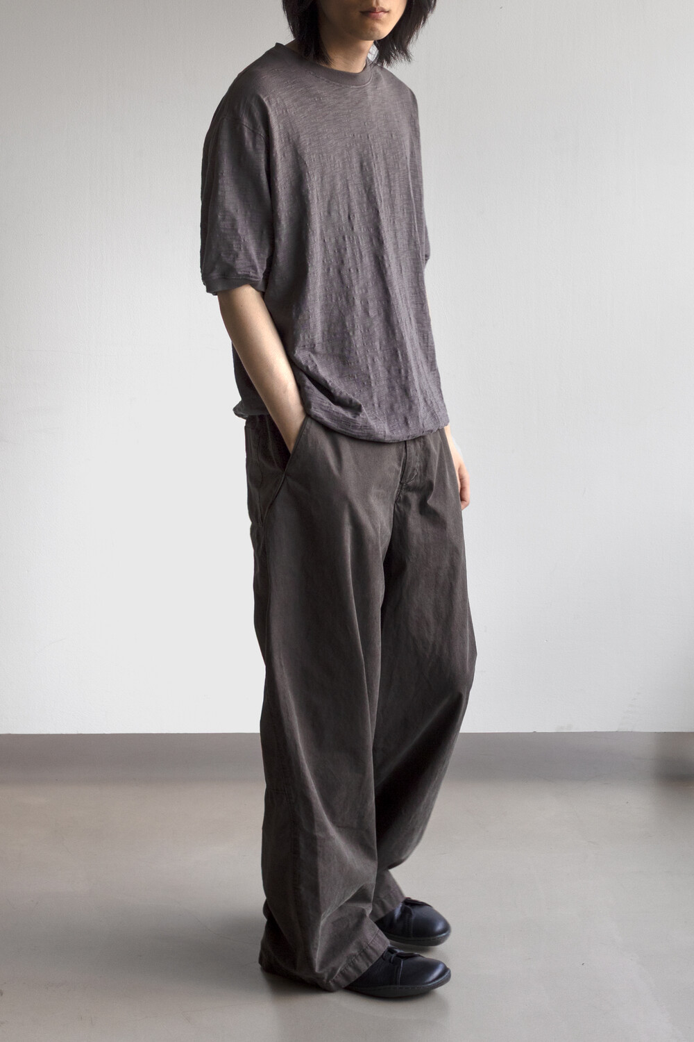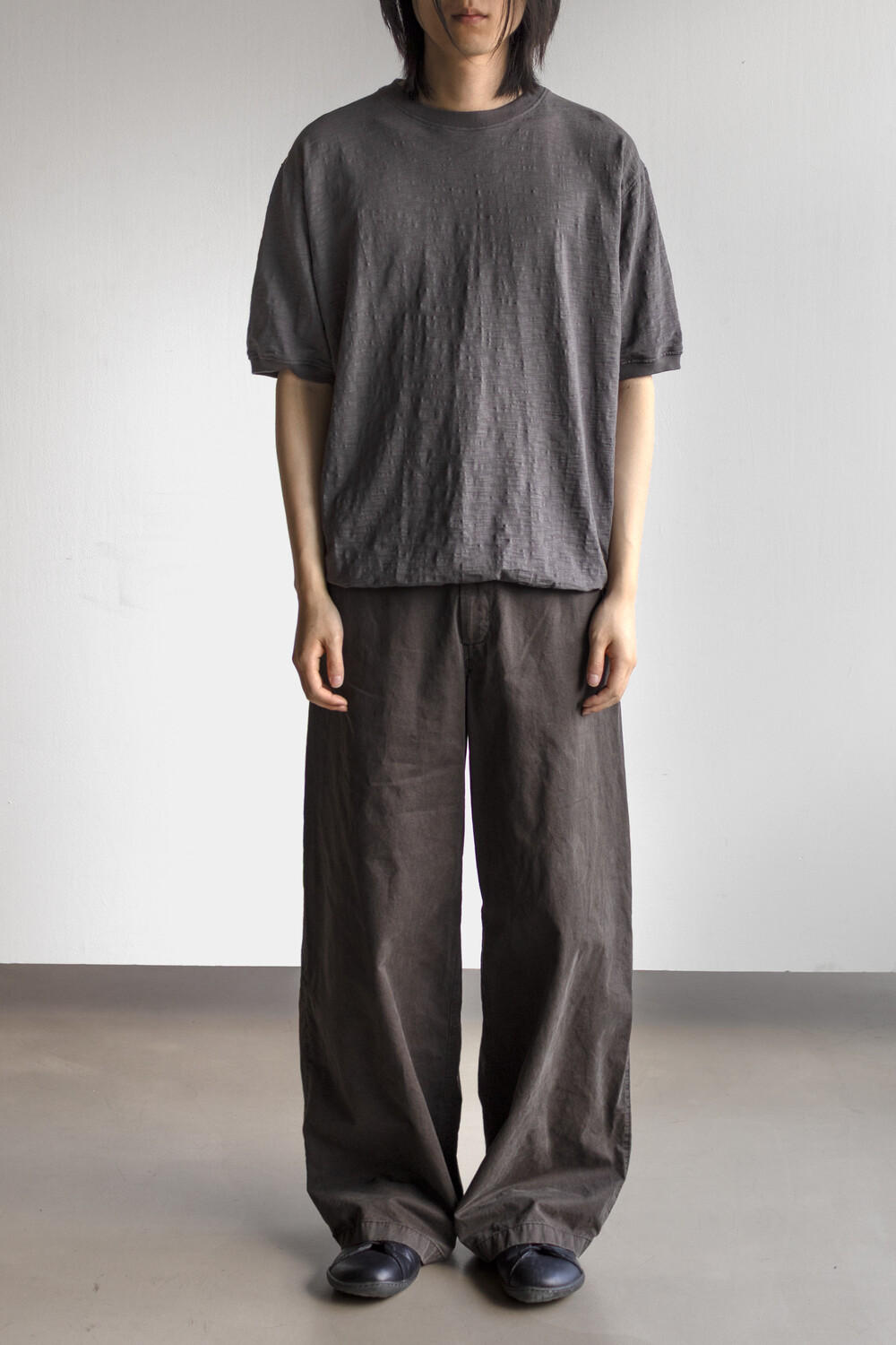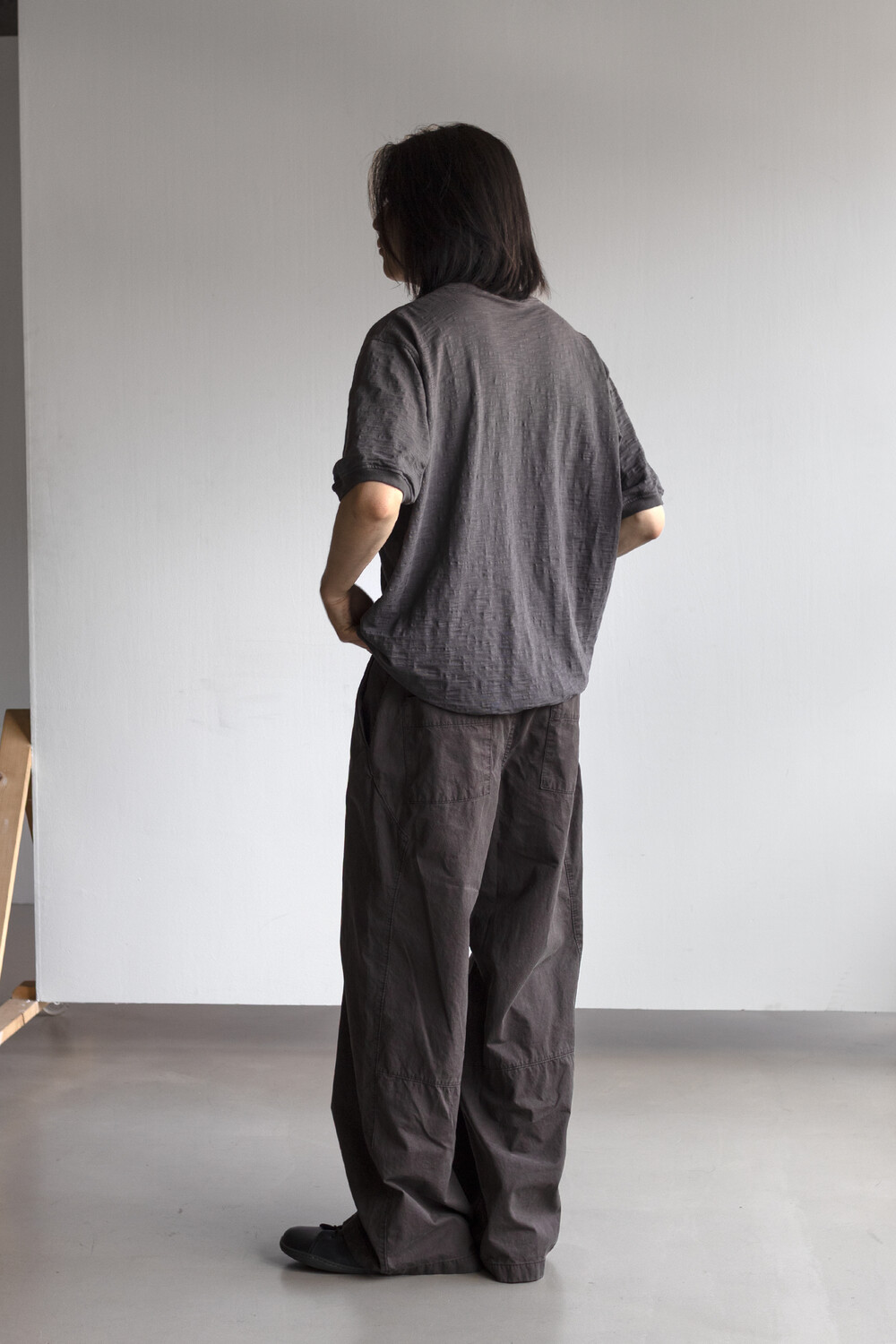 소재는 여름 시즌 착용에 적합한 코튼 소재를 베이스로, 앞판에는 약하게 피치를 내어 융이 부드럽게 서게하고 뒤판은 바이오 가공하여 비교적 매끄러운 질감입니다. 앞판과 뒤판이 미묘하게 다른 텍스쳐 배색을 만들었는데, 이런 구분이 깊어지면서 피셔맨을 찾을 수 있다고 생각합니다.