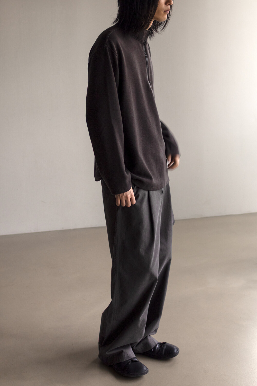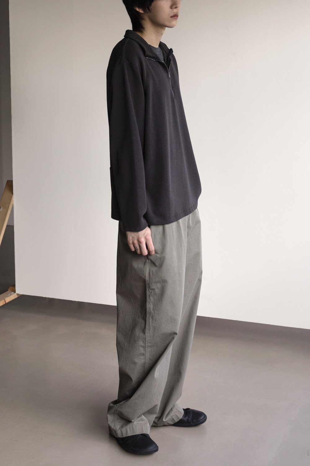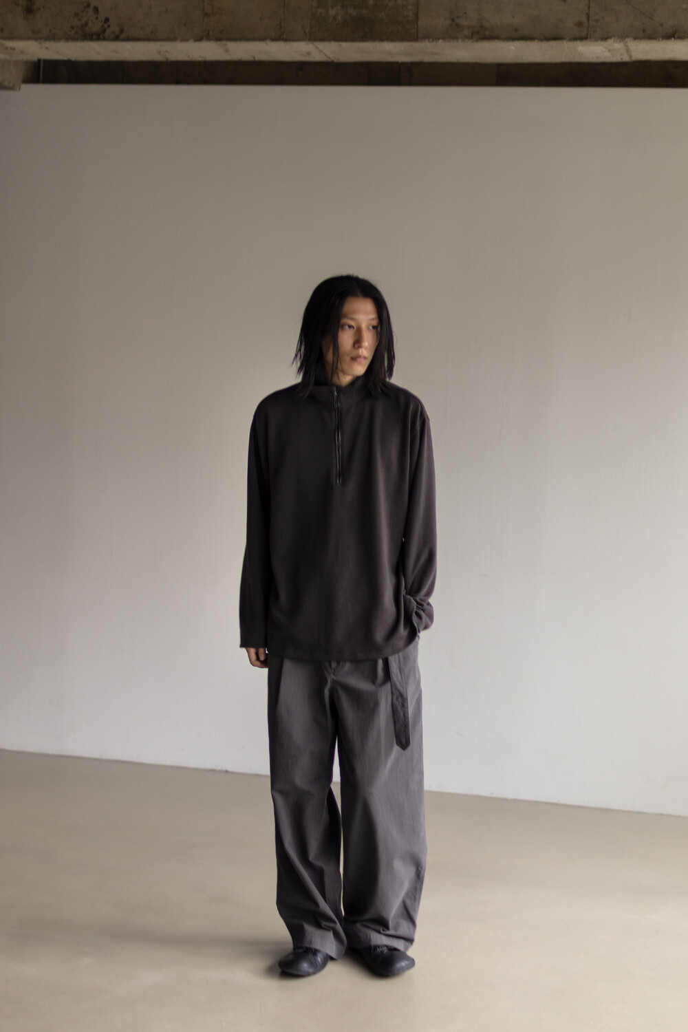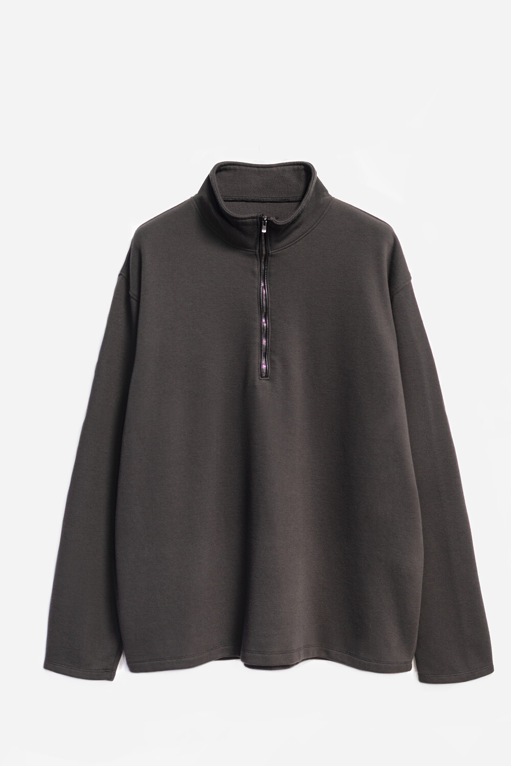 하프 집 풀오버를 베이스로 지퍼 양단에 텍스쳐 배색을 주는 트리밍이 설치된 <half zip up>입니다.