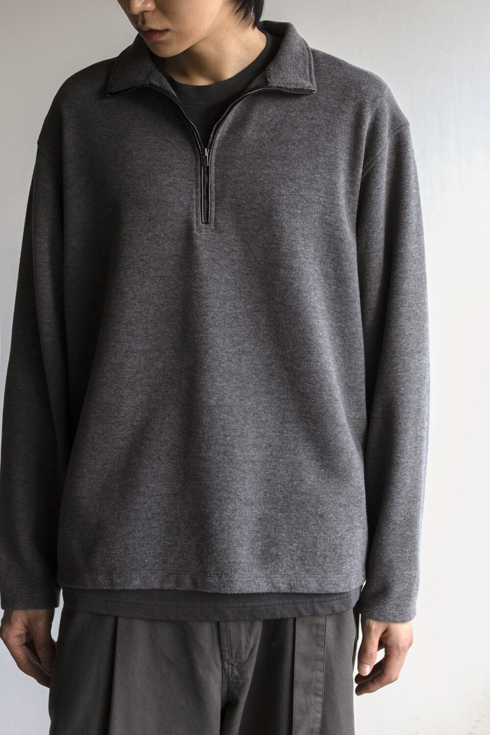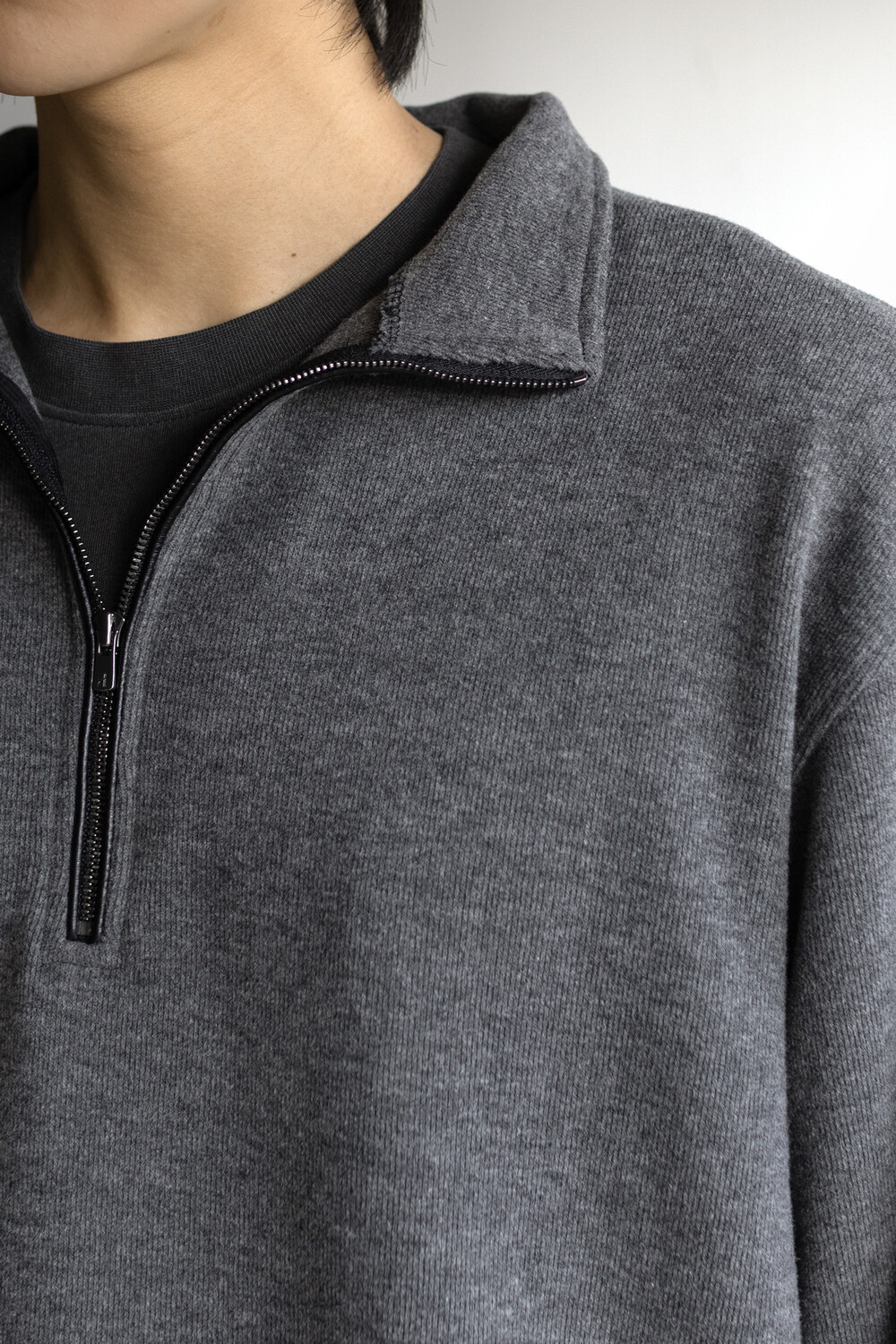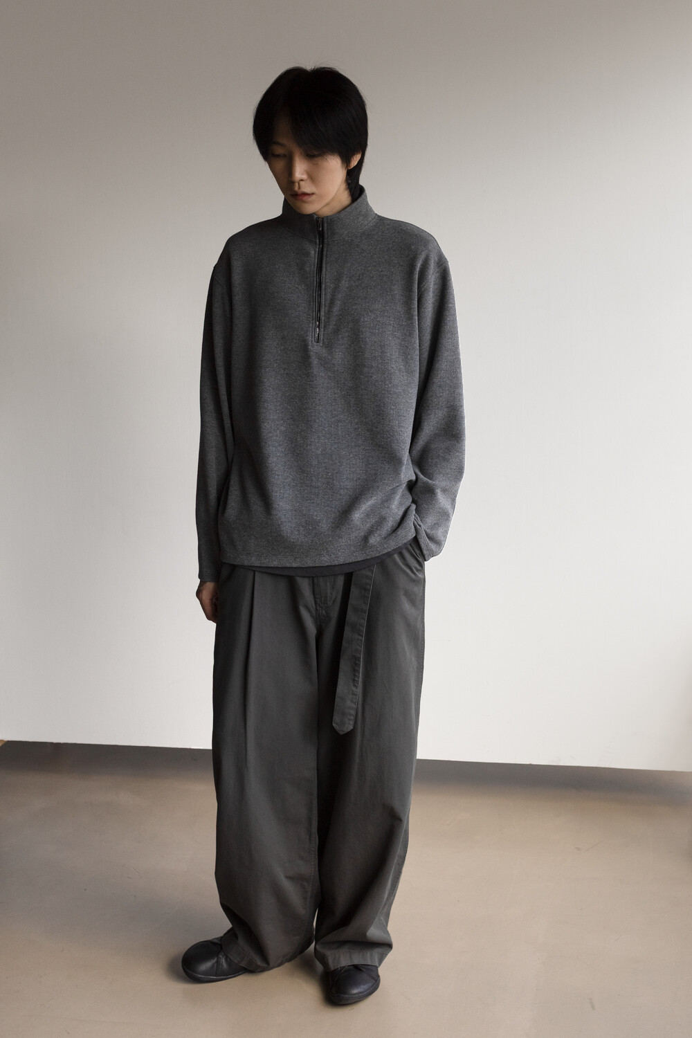 하프 집 풀오버를 베이스로 지퍼 양단에 텍스쳐 배색을 주는 트리밍이 설치된 <half zip up>입니다.
