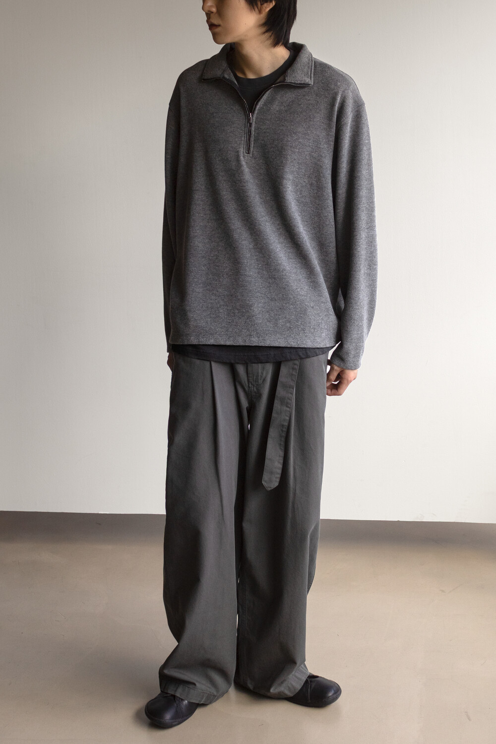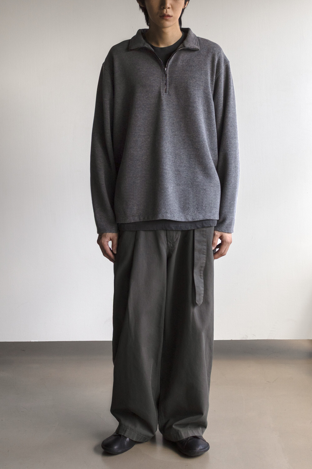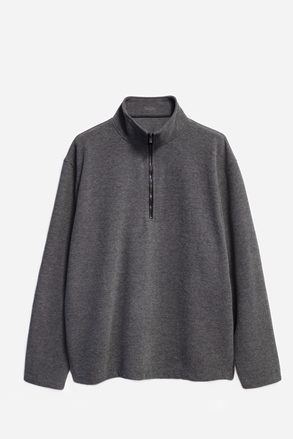 하프 집 풀오버를 베이스로 지퍼 양단에 텍스쳐 배색을 주는 트리밍이 설치된 <half zip up>입니다.