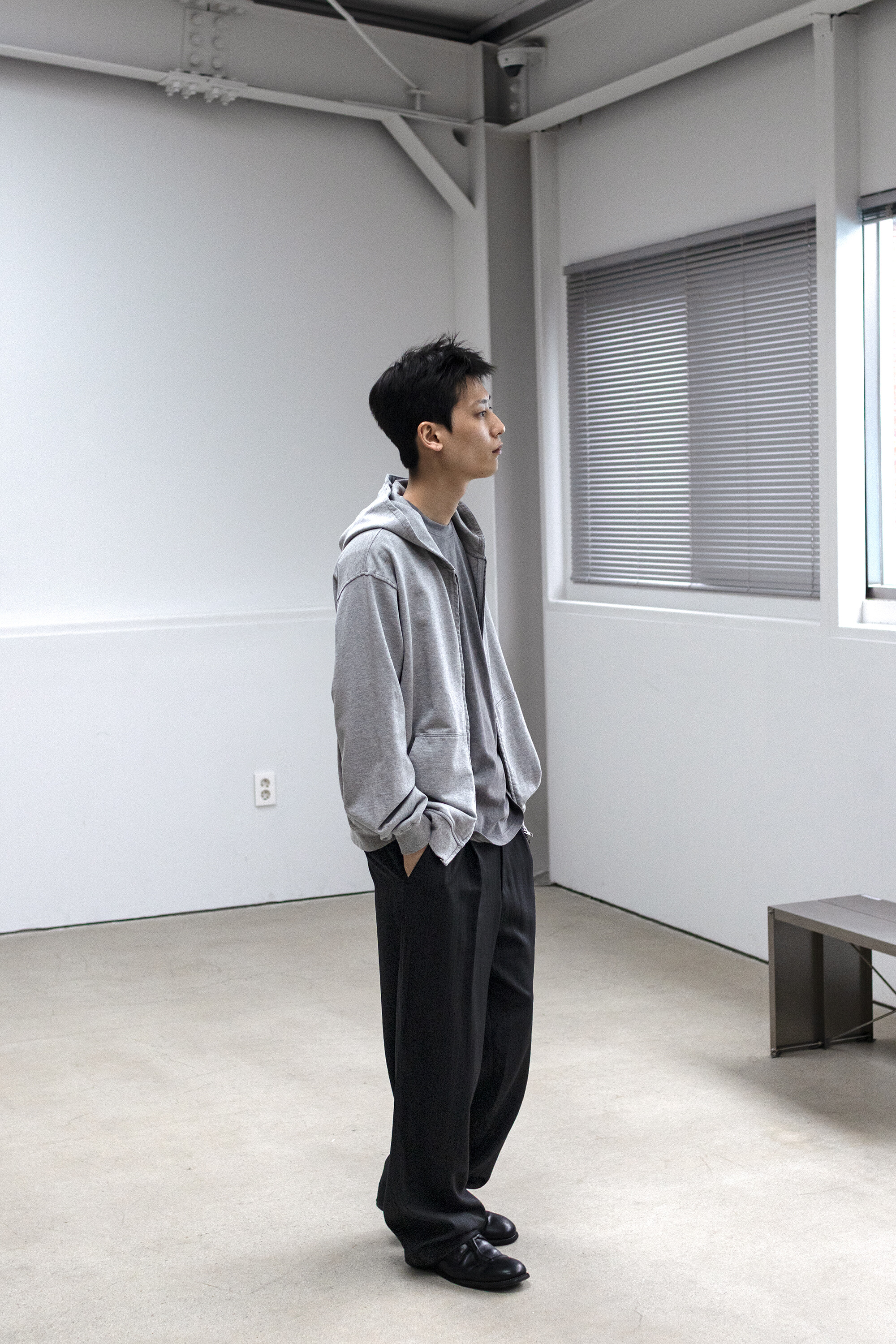 따뜻해지는 봄시즌에는 단품으로, 바람이 있는 날에는 겹겹이 레이어드 할 수 있도록 내구성 있으면서 얇고 유연한 구상으로 제작한 <hoodie zip>입니다.