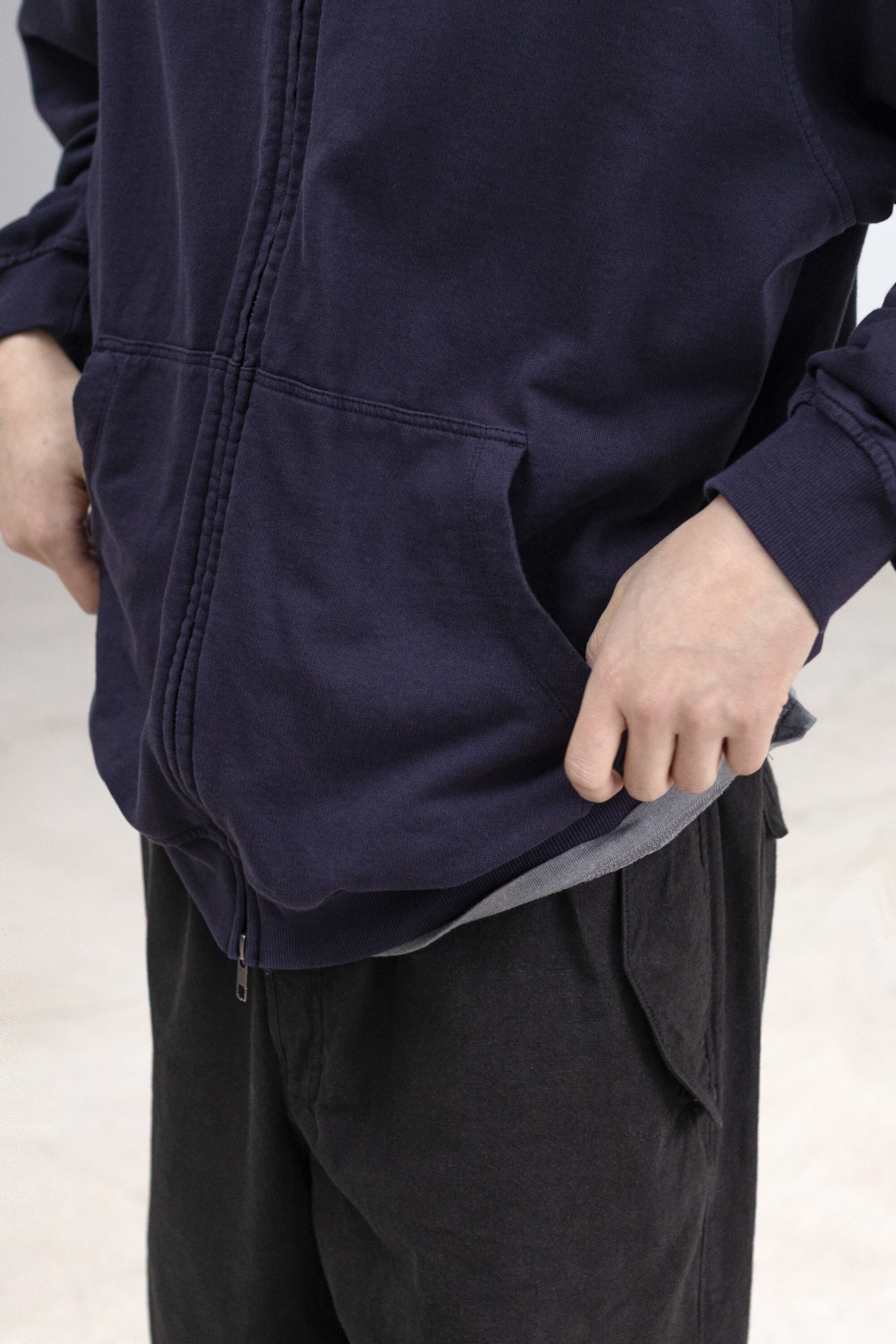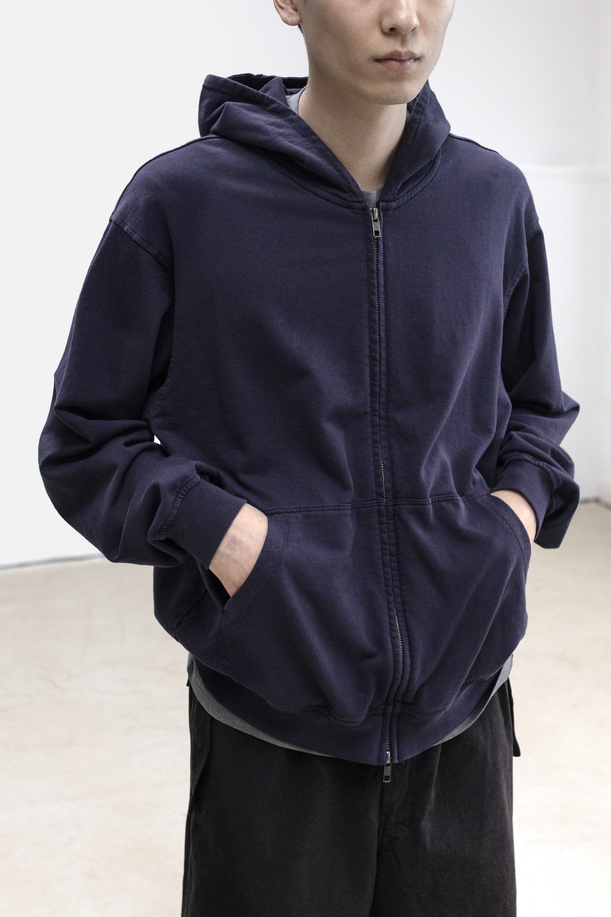 따뜻해지는 봄시즌에는 단품으로, 바람이 있는 날에는 겹겹이 레이어드 할 수 있도록 내구성 있으면서 얇고 유연한 구상으로 제작한 <hoodie zip>입니다.