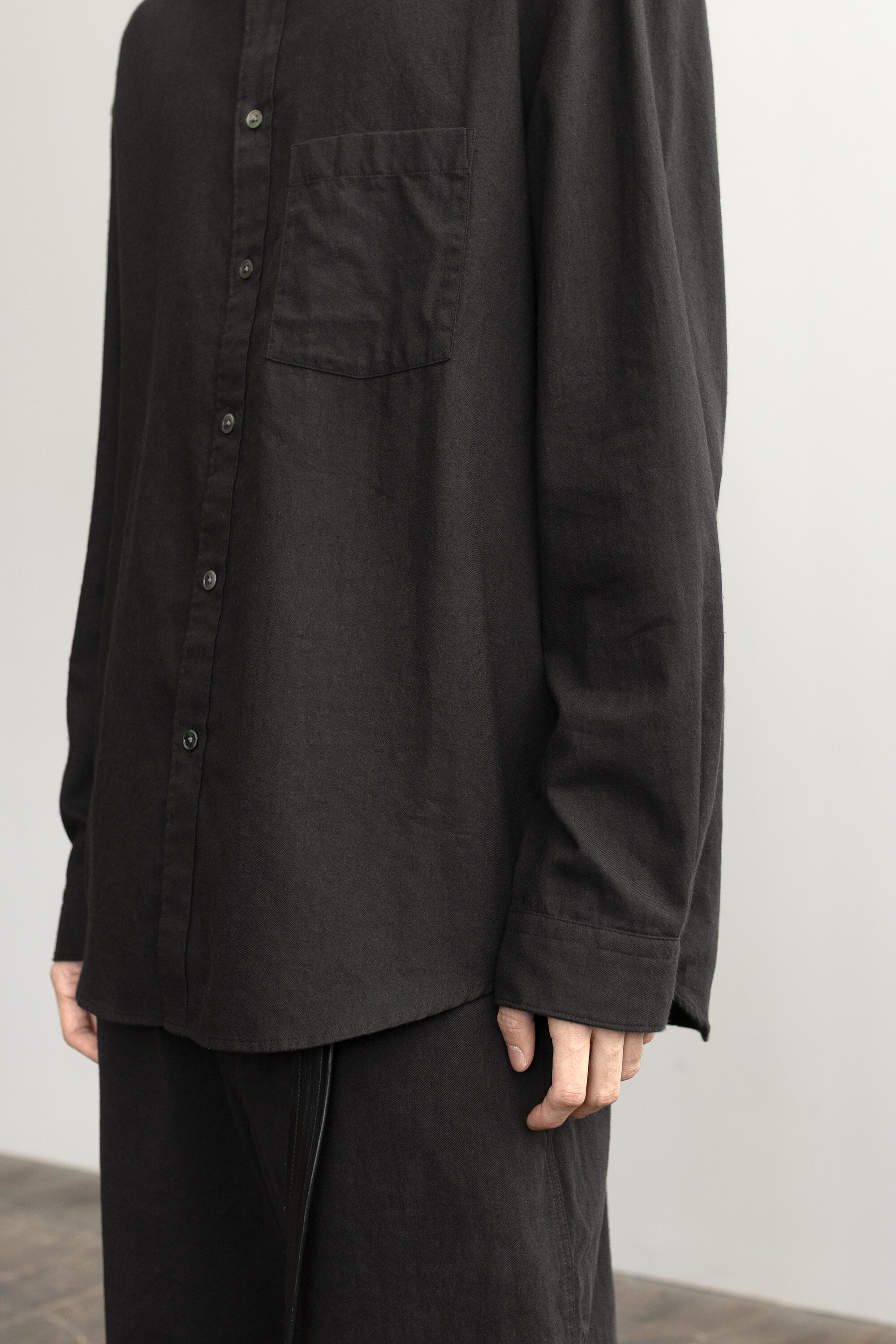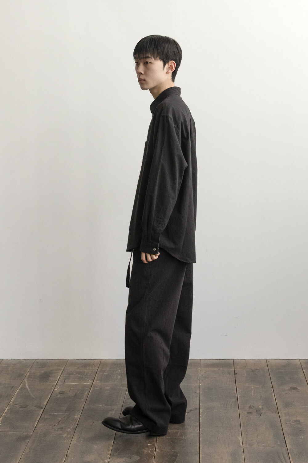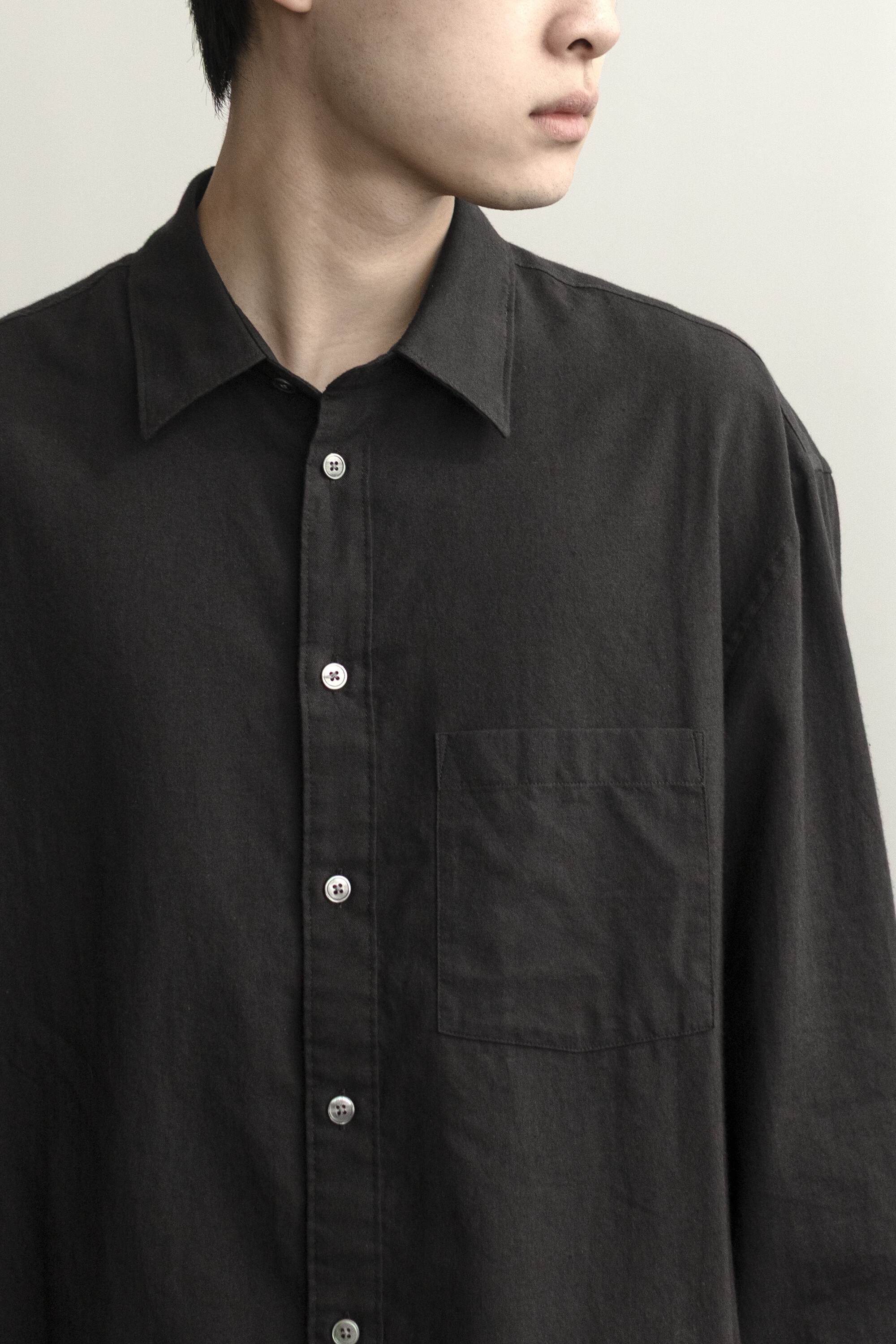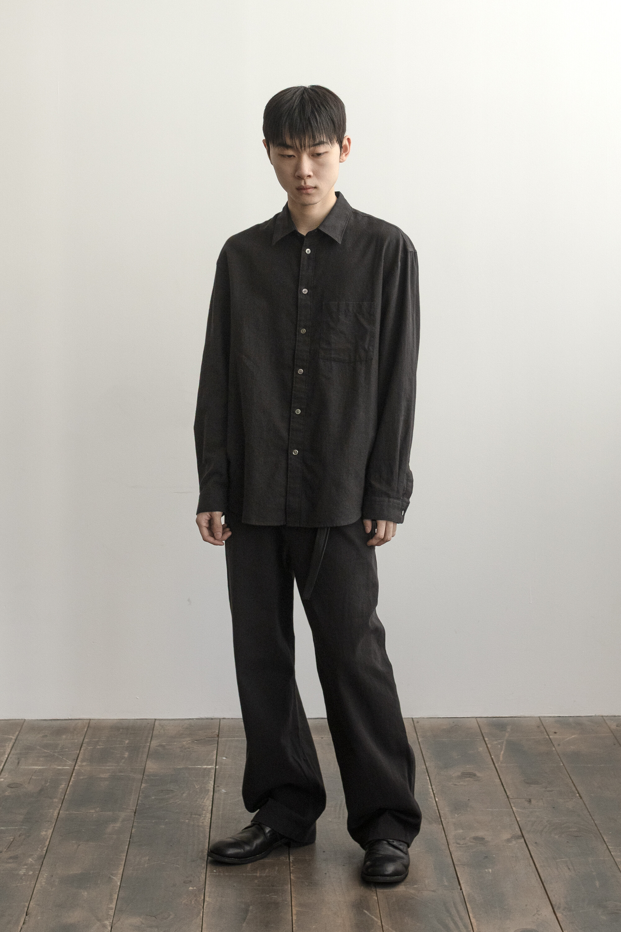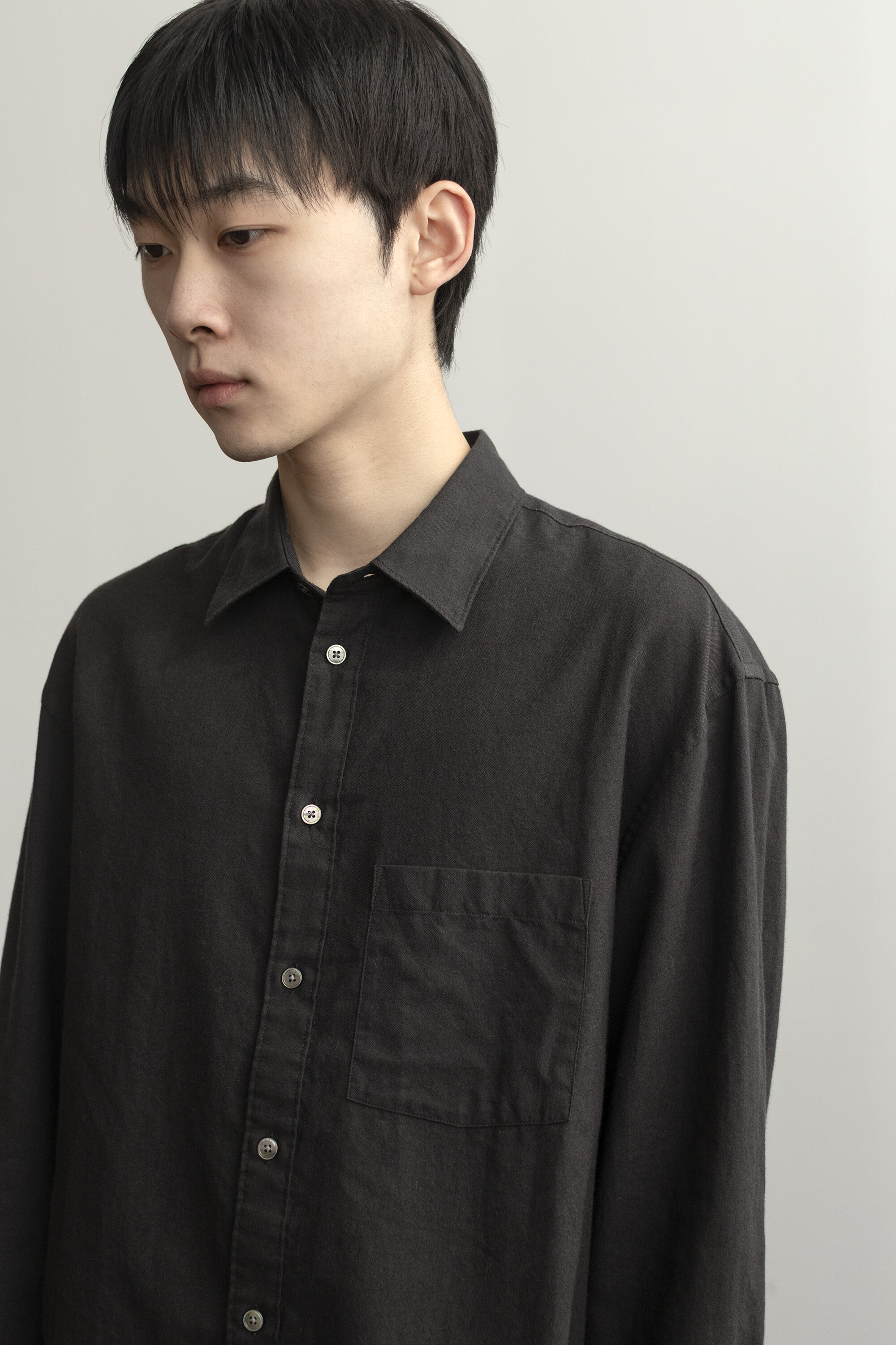글리치(glitch)는 신호가 잠깐 흔들릴 때 생기는 작고 미세한 불균일을 의미합니다. 글리치 셔츠 시리즈는 소재 본연에서 오는 불균일한 질감과 가먼트와 염색 등에서 만들어지는 작은 어긋남과 의도된 불균일을 담고 있습니다. 26시즌에서는 소매라인 등을 좀 더 정돈된 실루엣으로 다듬었으며, 소재의 물성을 더 끌어낼 수 있는 봉제 방식과 후가공을 적용한 글리치 시리즈를 보여드리고자 합니다.