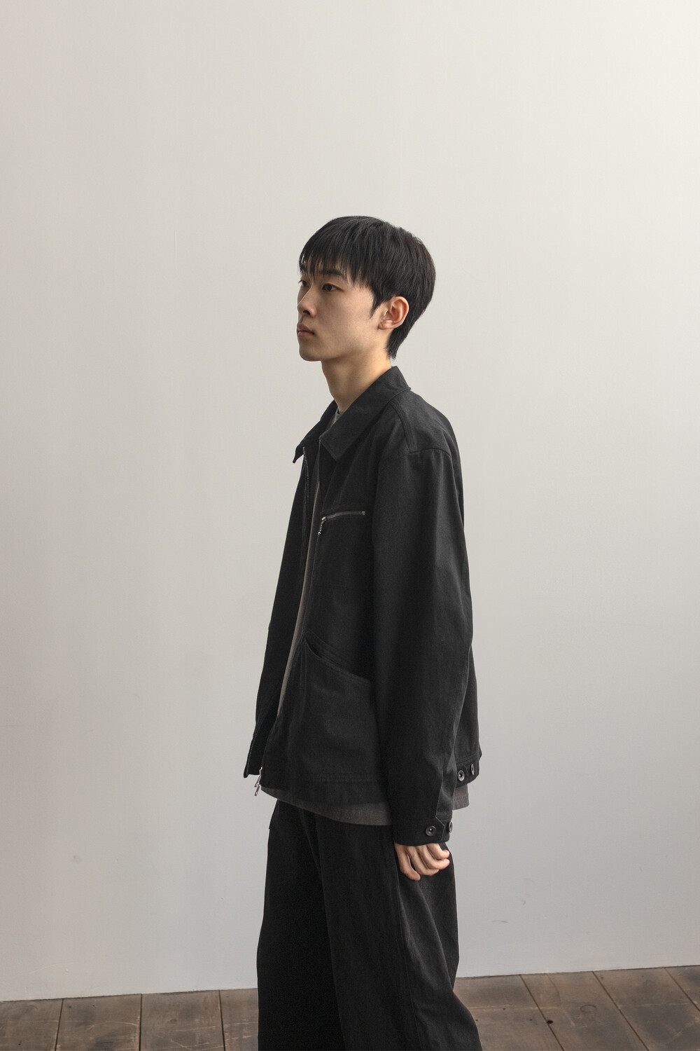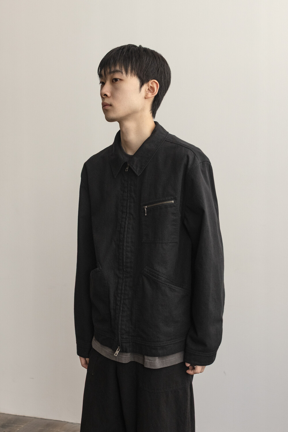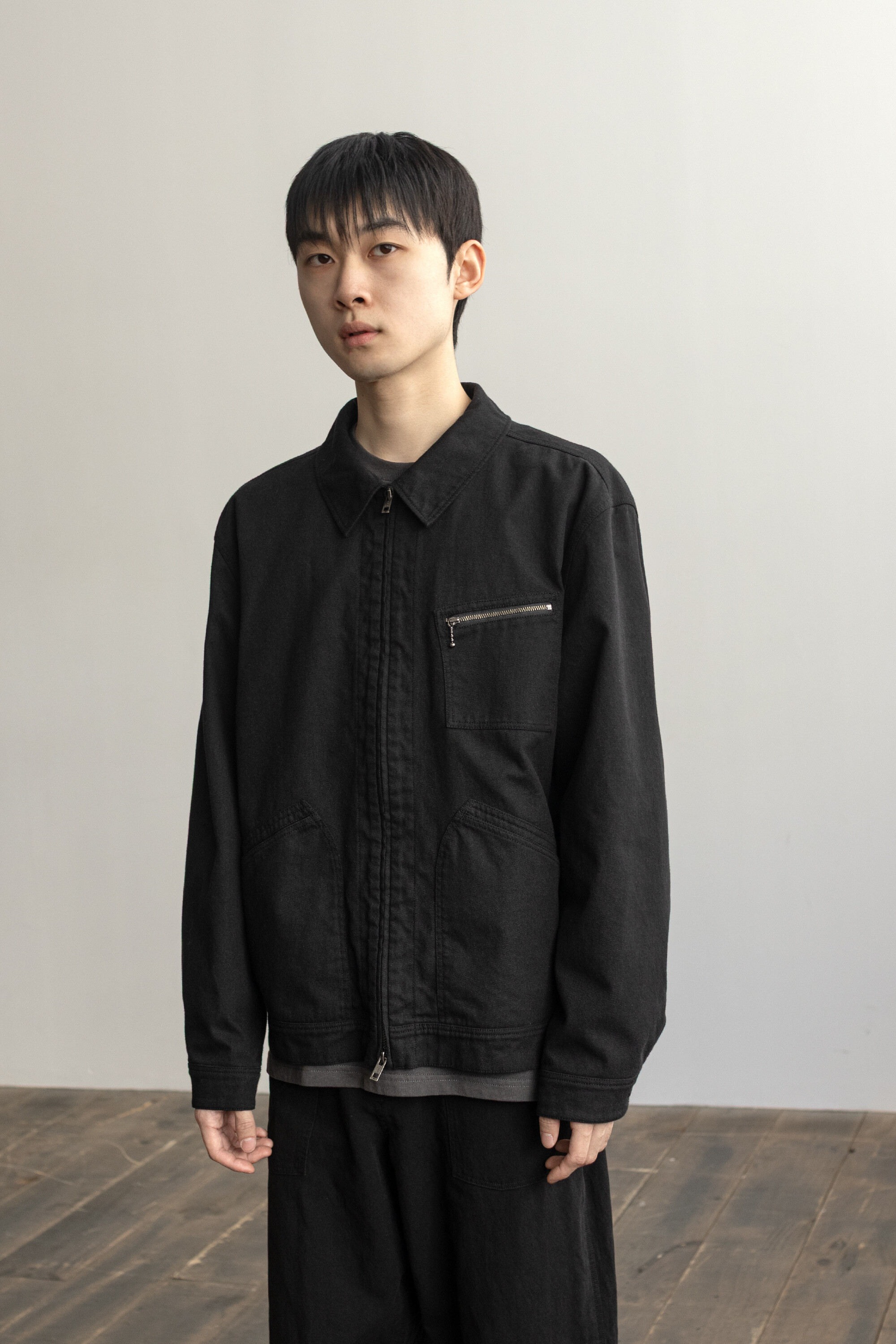 워크웨어 아카이브의 트러커 구성을 기반으로 우리가 좋아하는 미감으로 소매진이나 포켓의 밸런스를 조정하고, 유연하고 요철감 있는 소재로 만들어진 <orimo zip jacket>입니다.