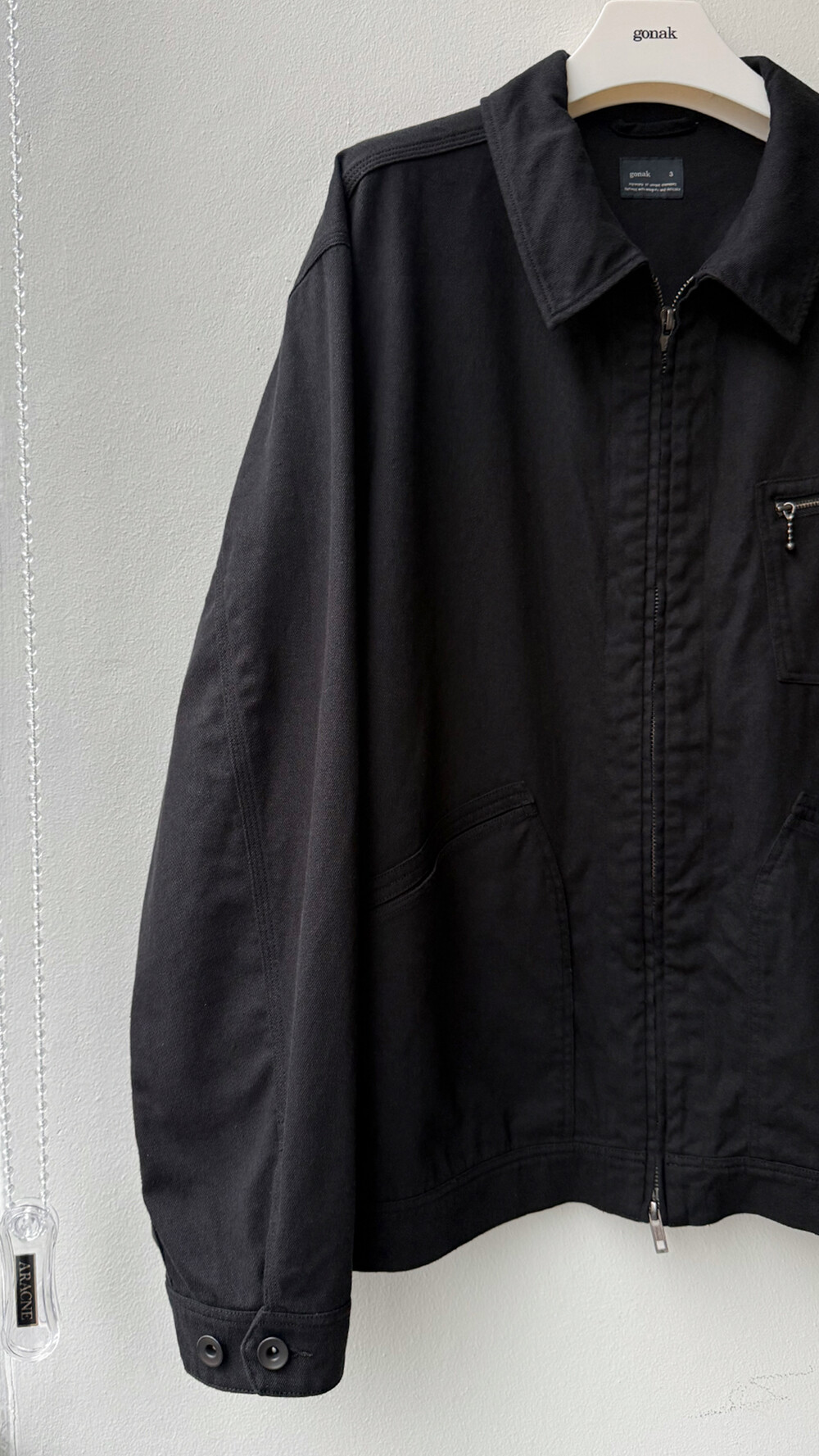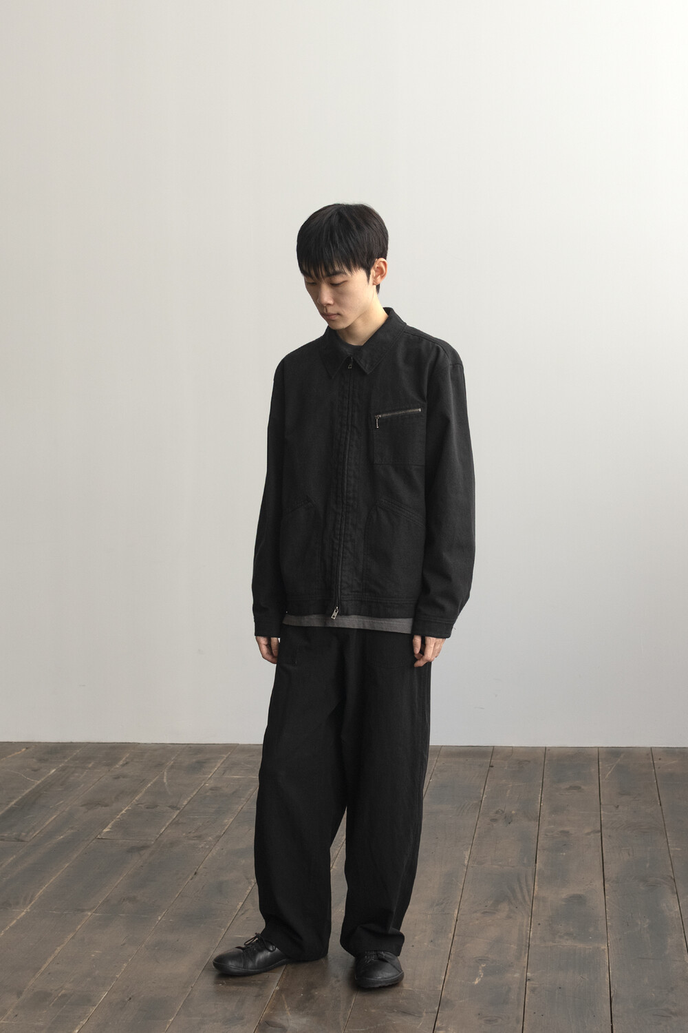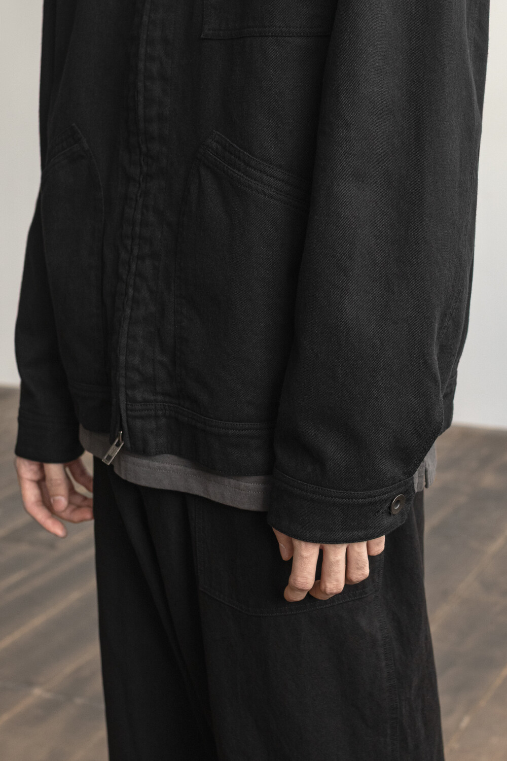 워크웨어 아카이브의 트러커 구성을 기반으로 우리가 좋아하는 미감으로 소매진이나 포켓의 밸런스를 조정하고, 유연하고 요철감 있는 소재로 만들어진 <orimo zip jacket>입니다.