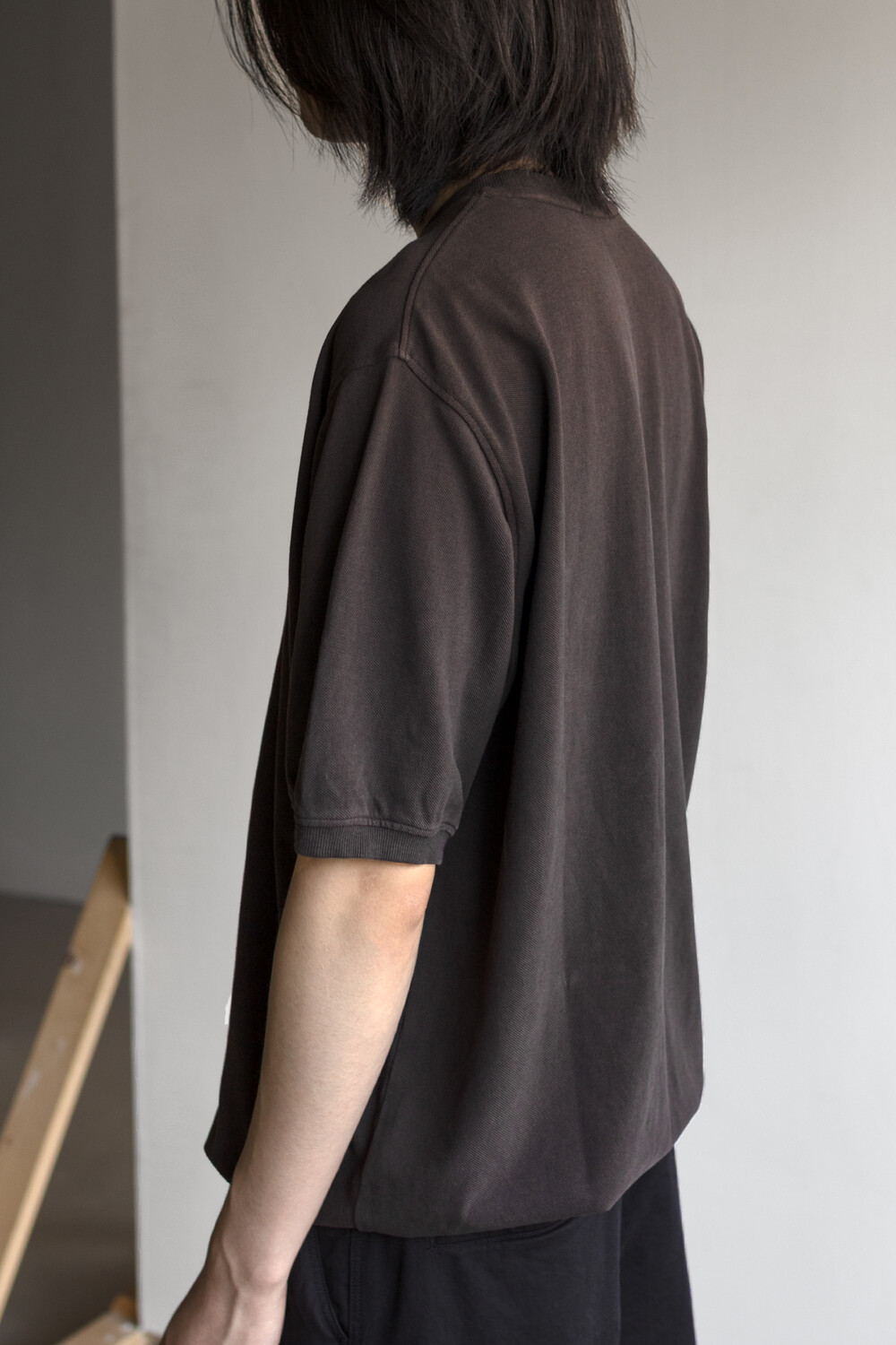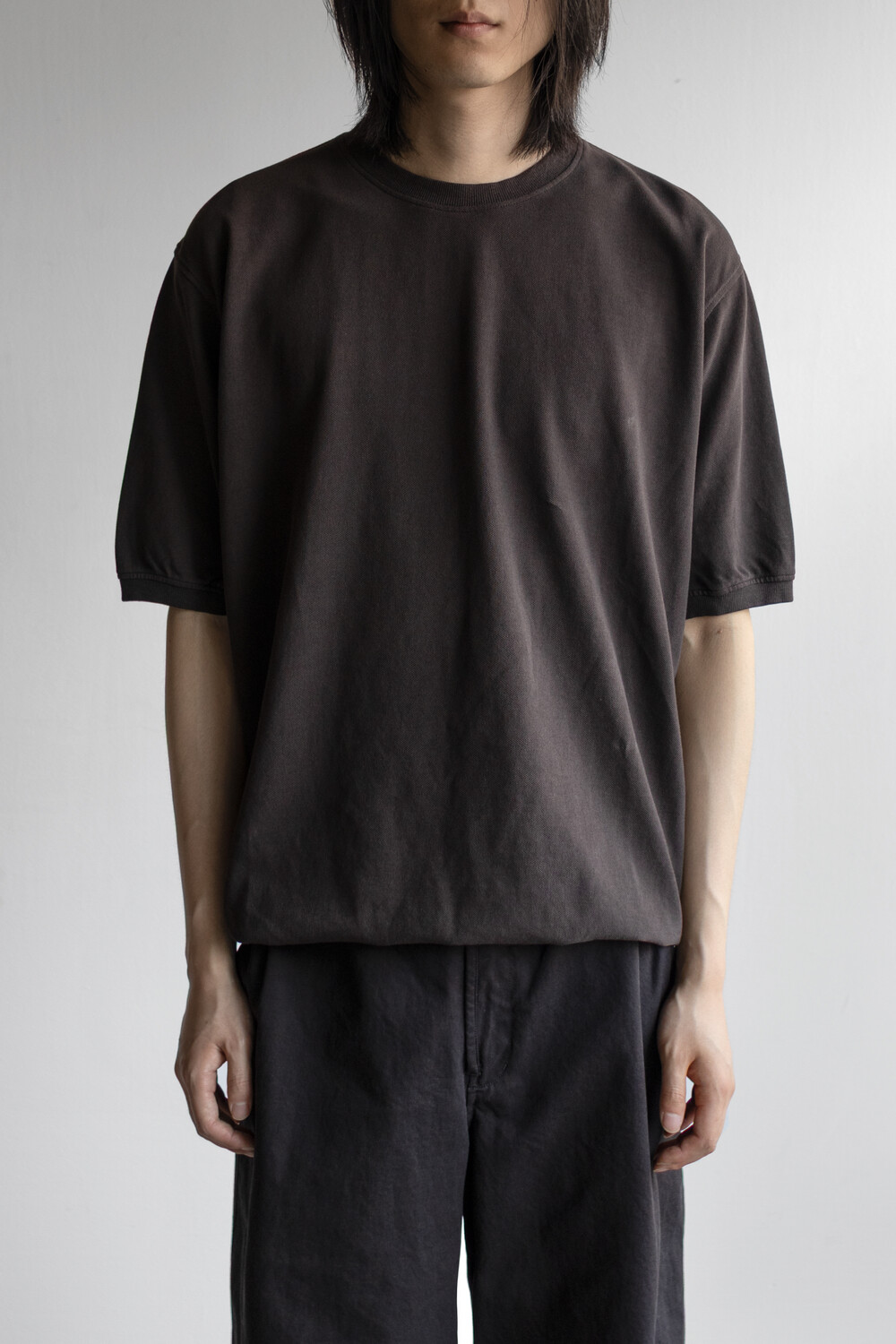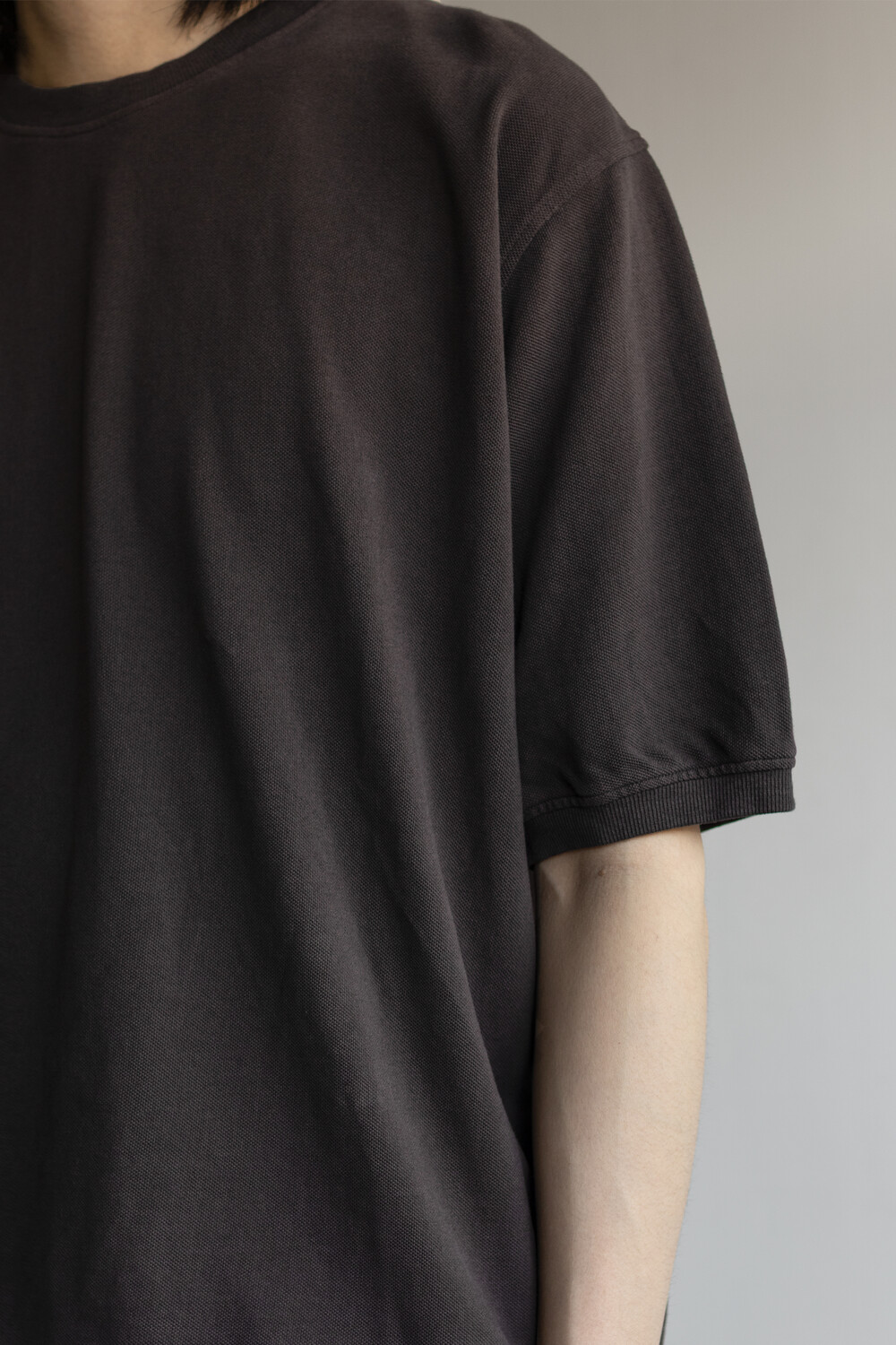 pique round sleeve - charcoal brown