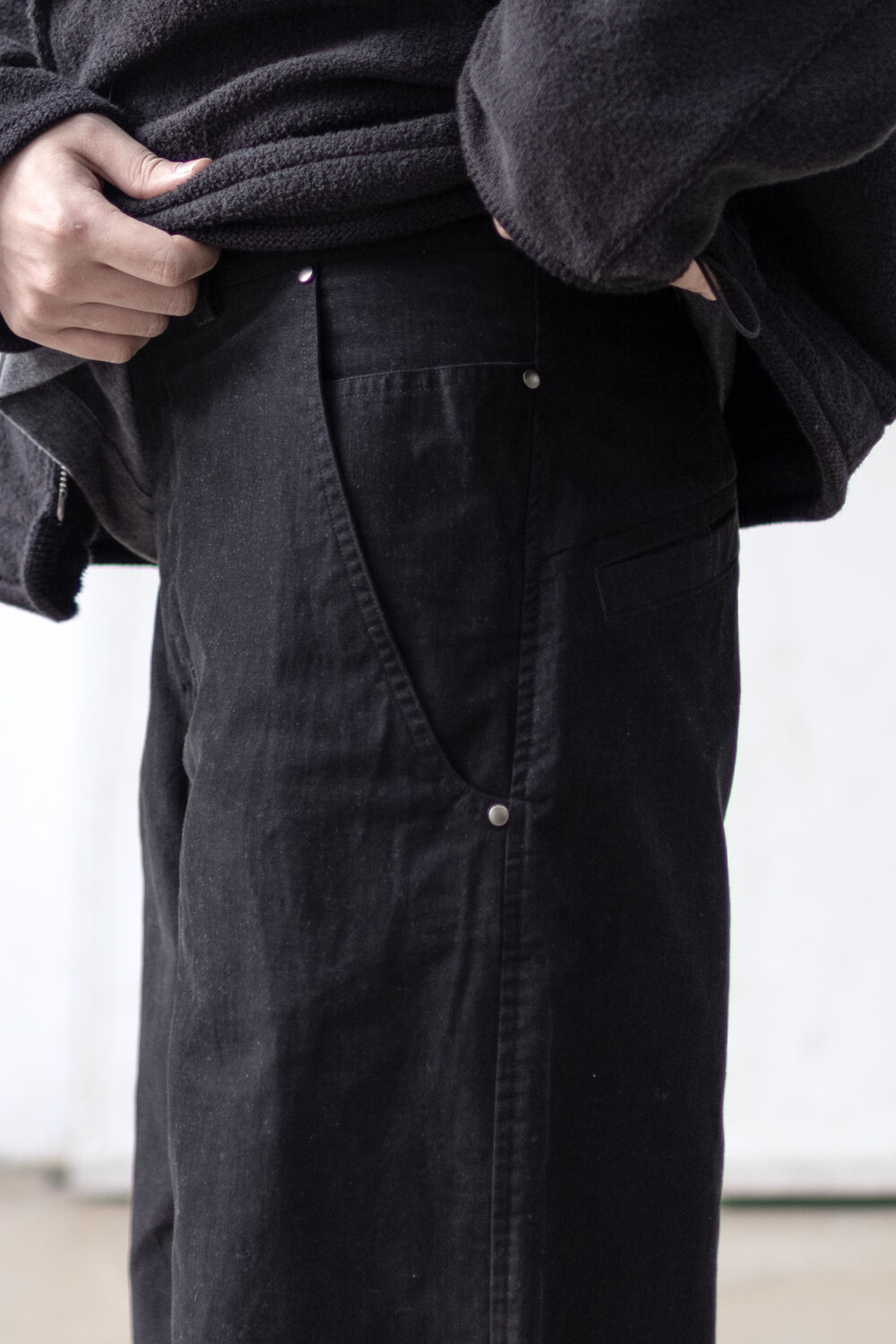 사이드 포켓 안 쪽으로 이어지는 겹침 주머니와 부드러운 터치감의 <purgmill pants>입니다.