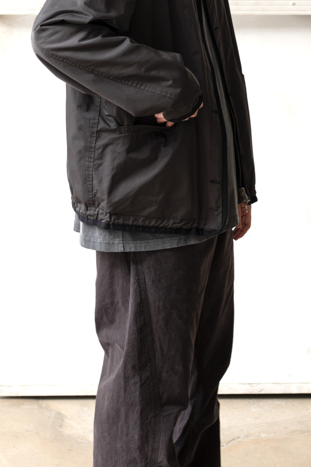 봉제 완성 후 원단을 풀어주는 식으로 가먼트하여 자연스러운 봉제 자리잡음, 퍼커링이 생겨