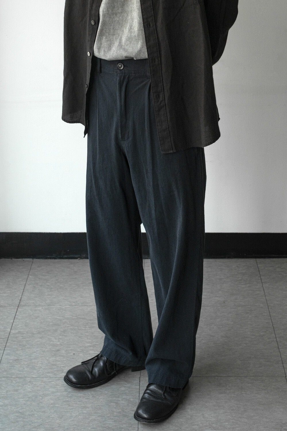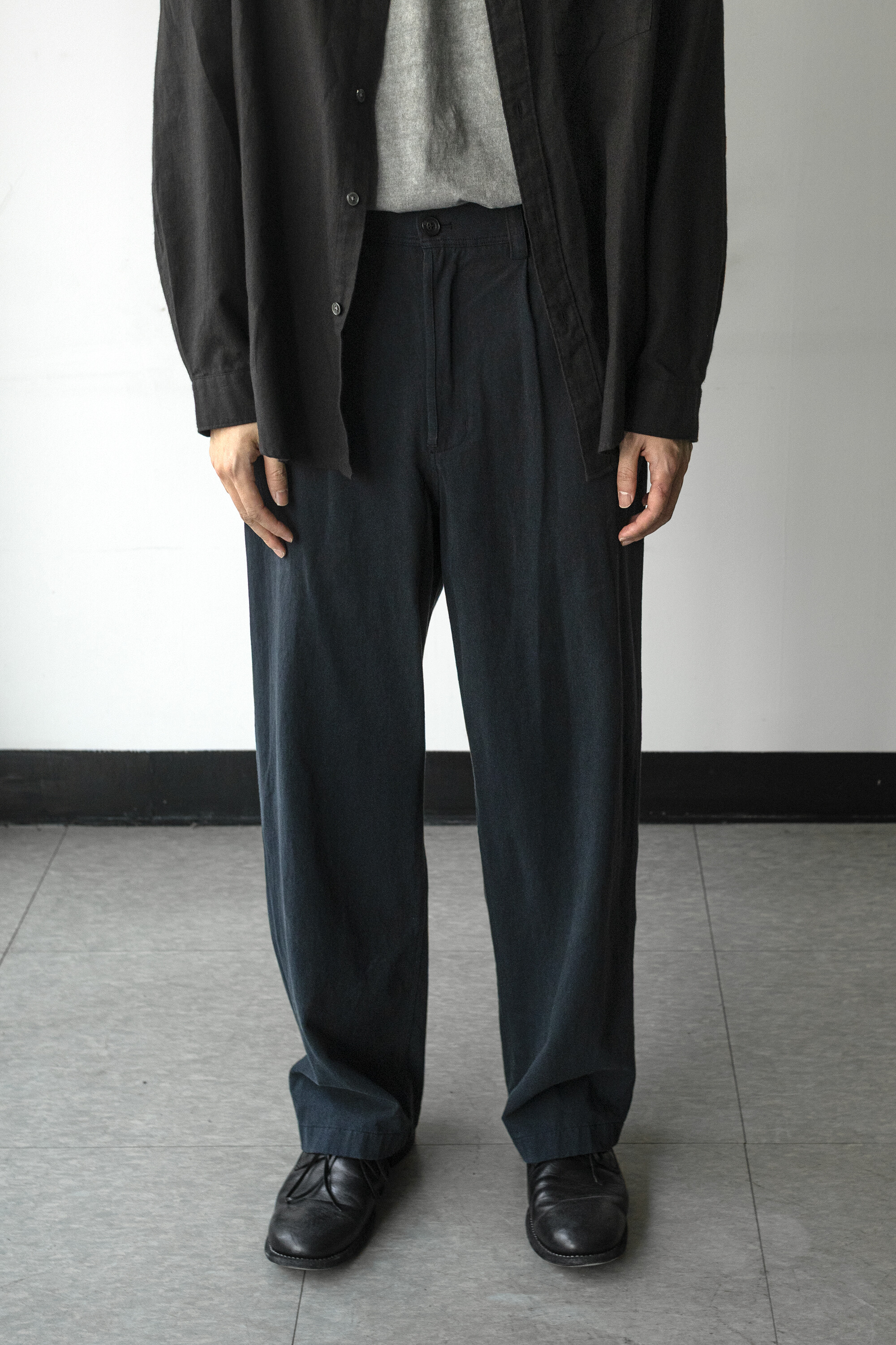염색 공정 특성상 미세한 불균일과 옅은 페이드가 있을 수 있으며, 부드럽고 자연스러운 드레이프와 조화가 좋습니다.