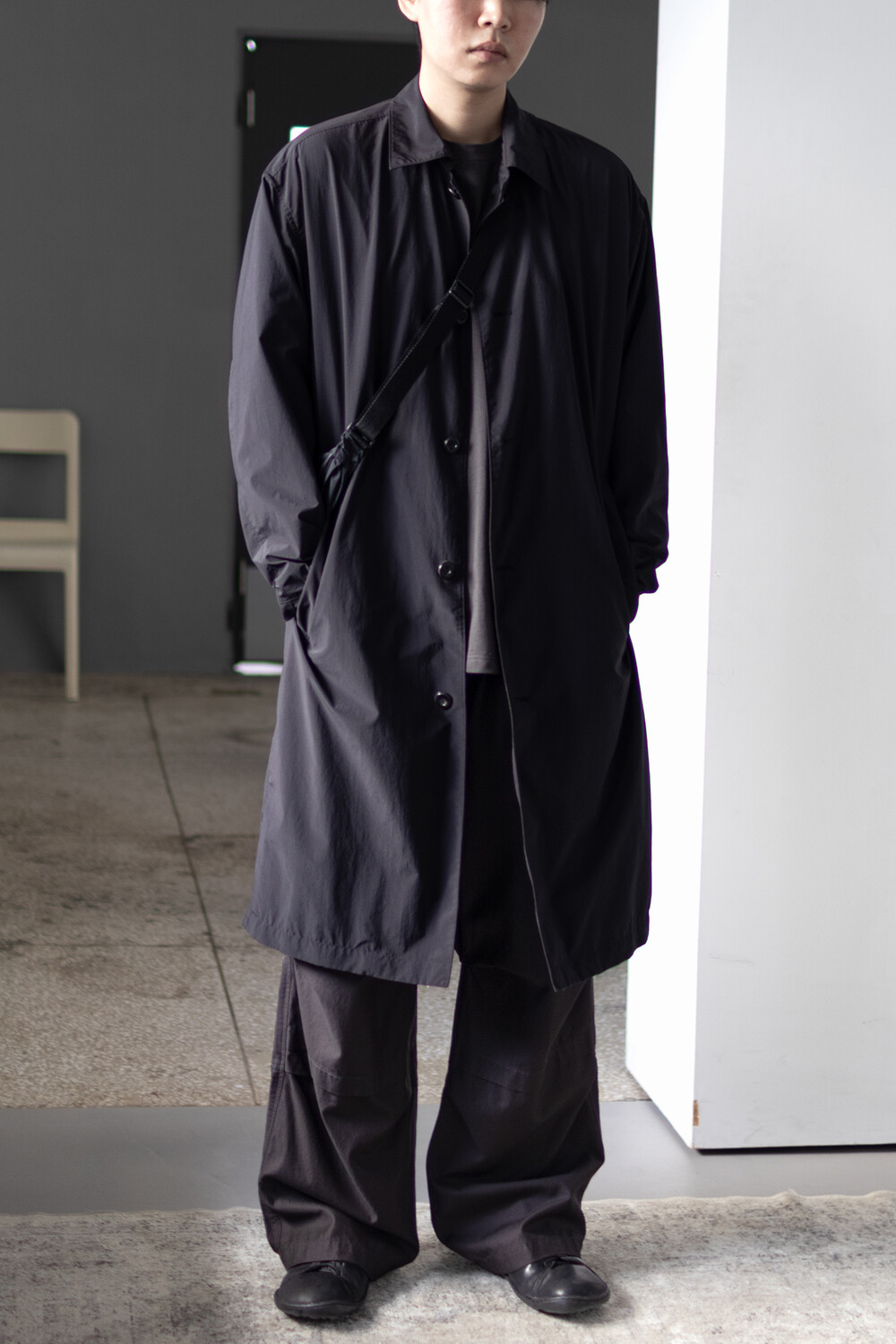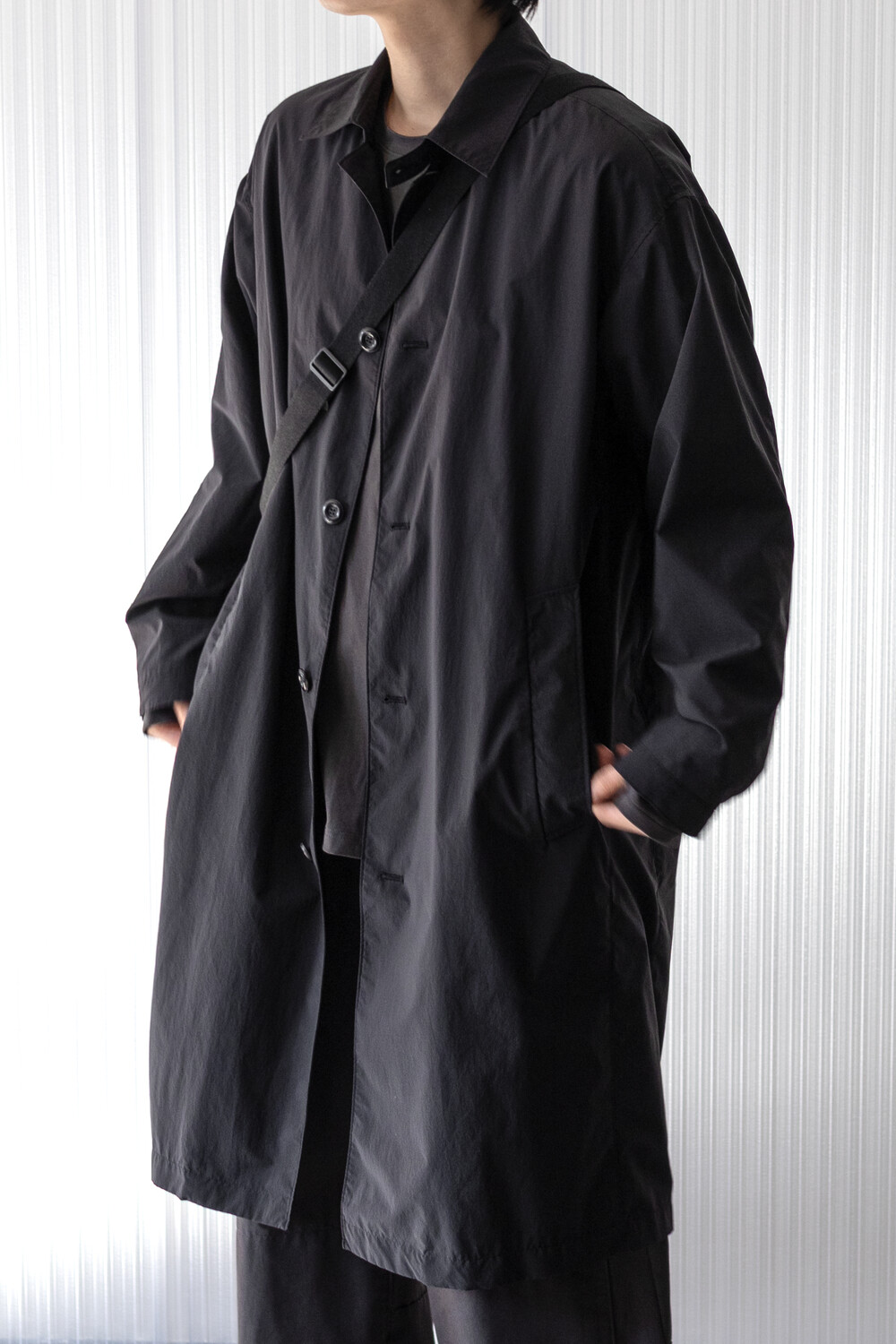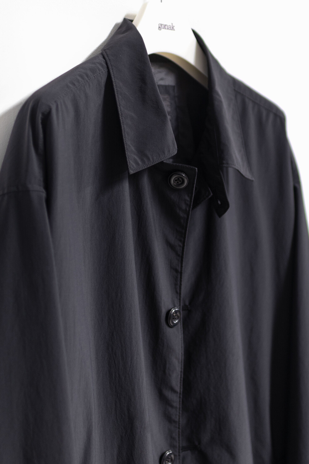 고품질의 폴리에스터 원단을 베이스로 제작, 완성 후 가먼트 워싱으로 피니시한 <탭 카라 코트>입니다.