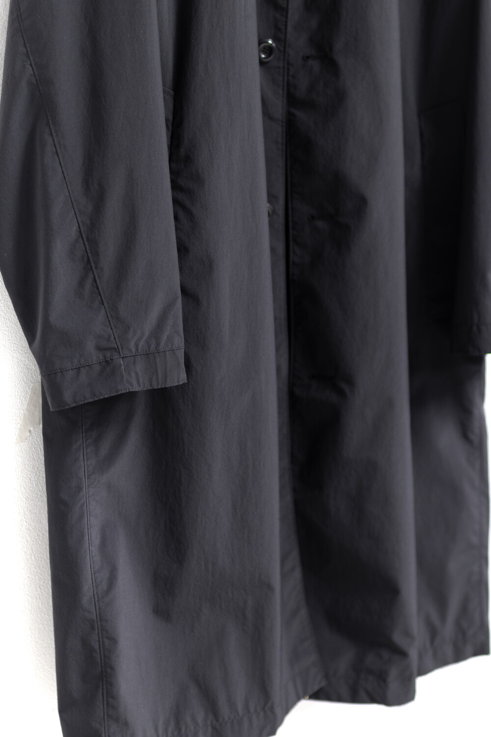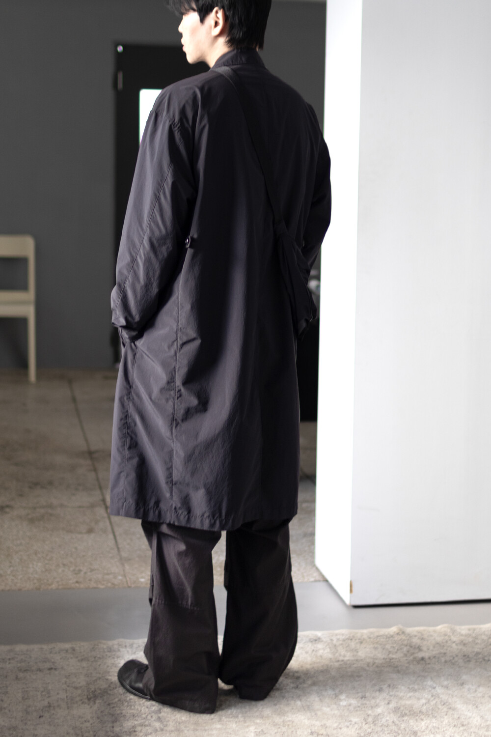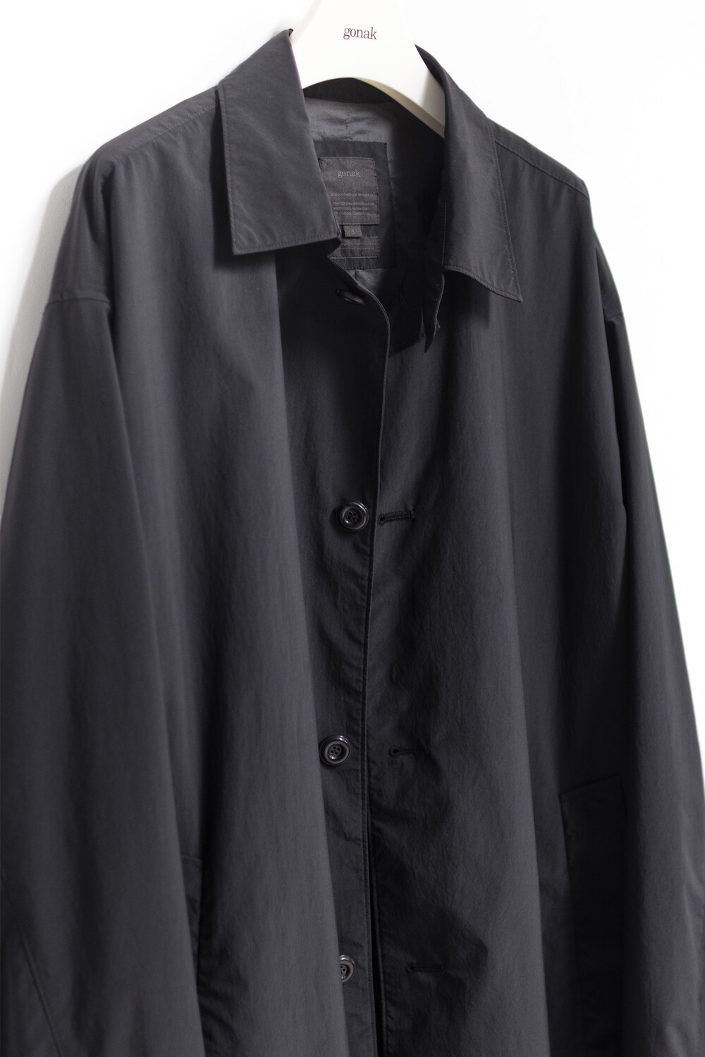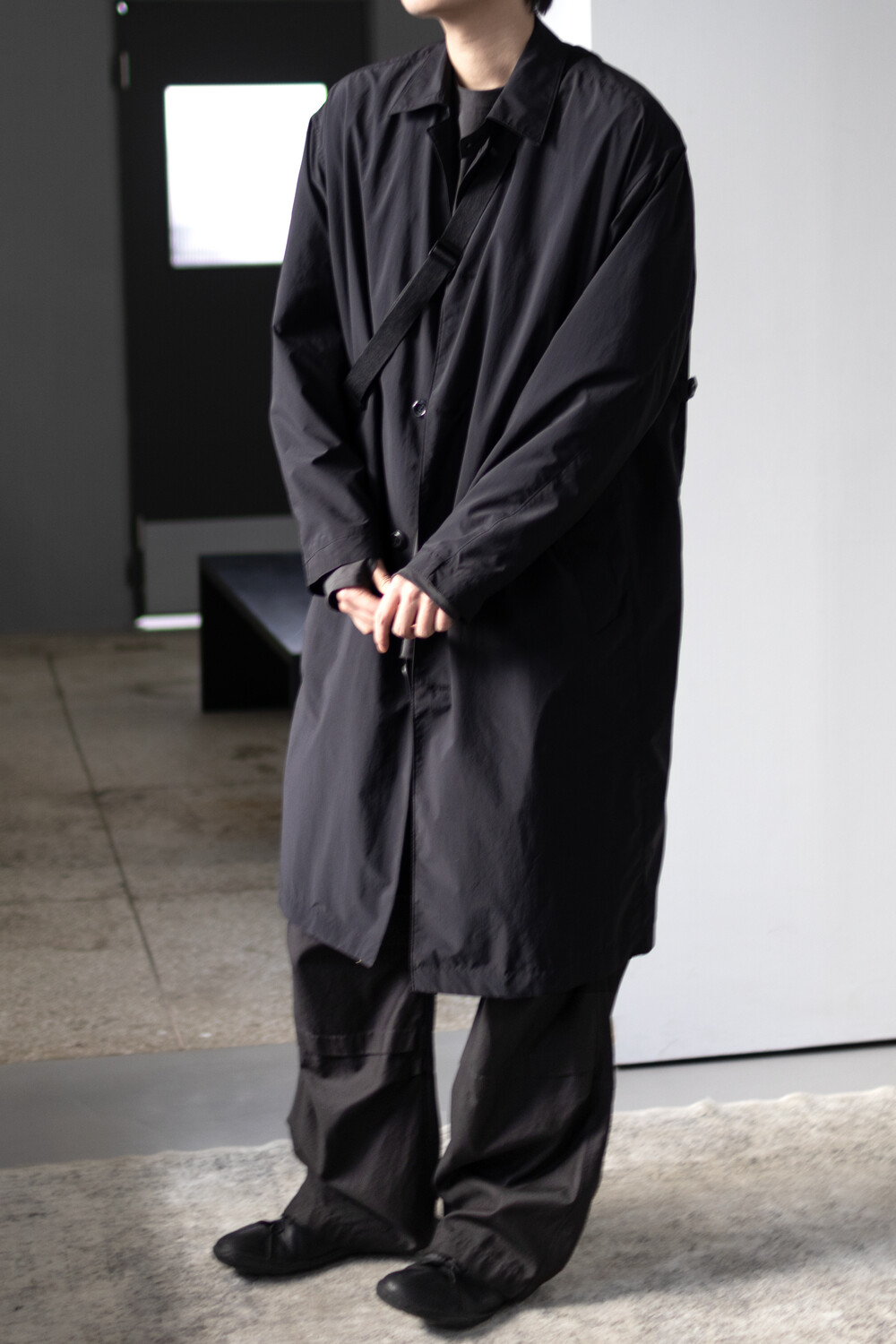 고품질의 폴리에스터 원단을 베이스로 제작, 완성 후 가먼트 워싱으로 피니시한 <탭 카라 코트>입니다.