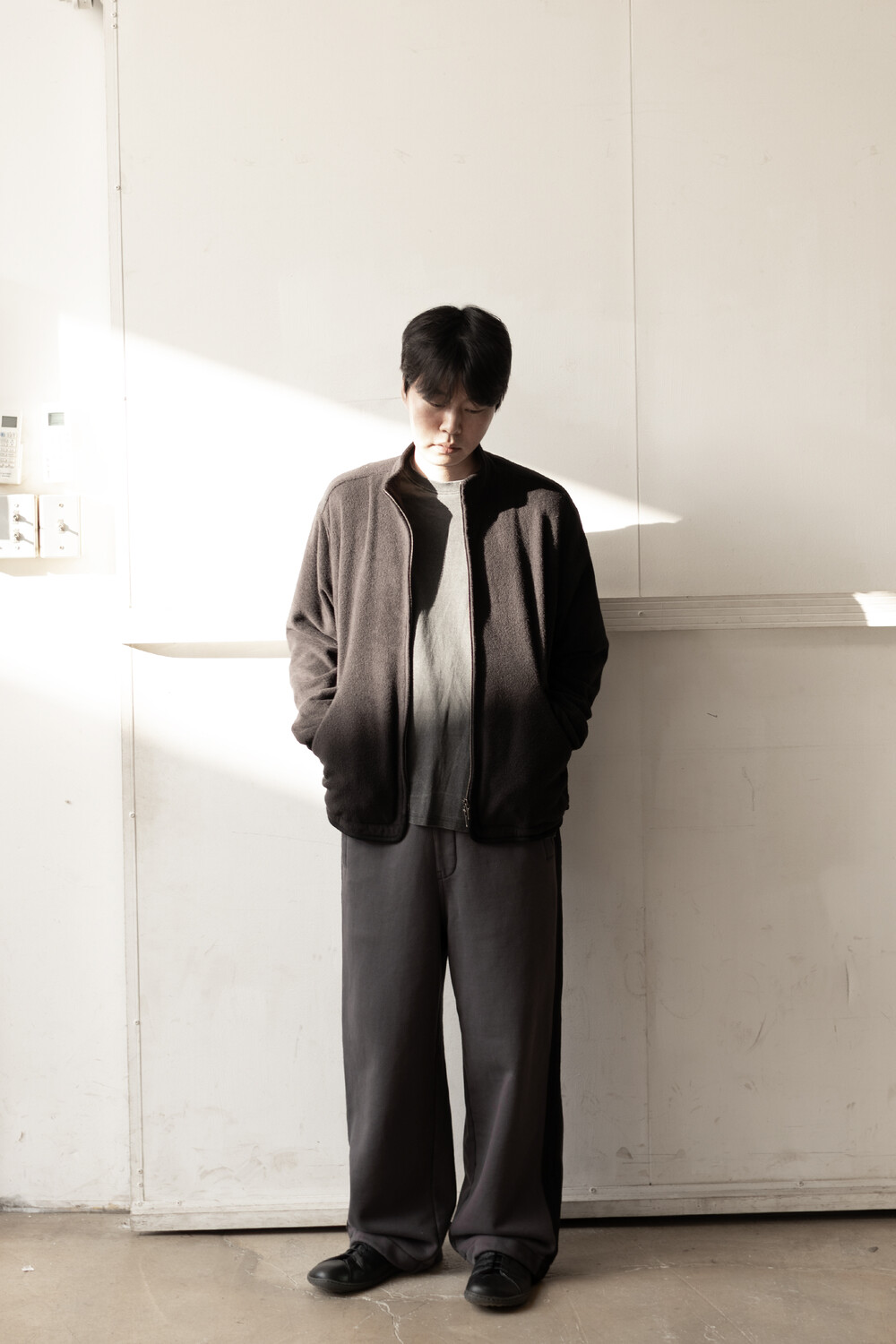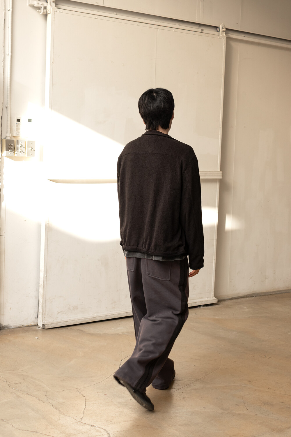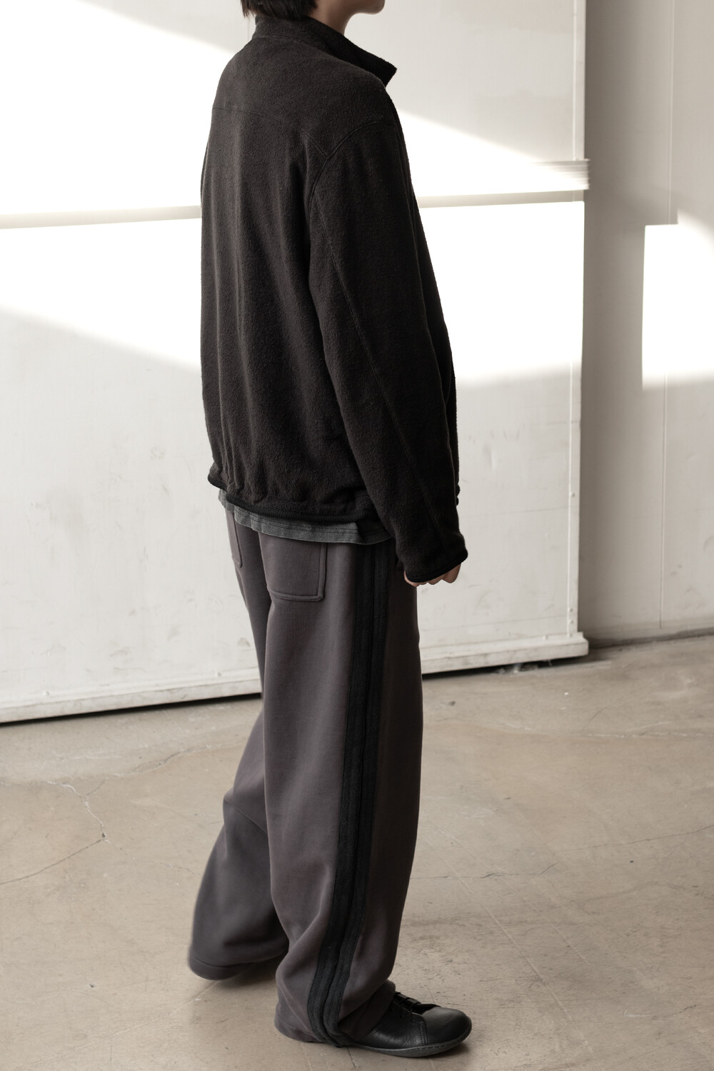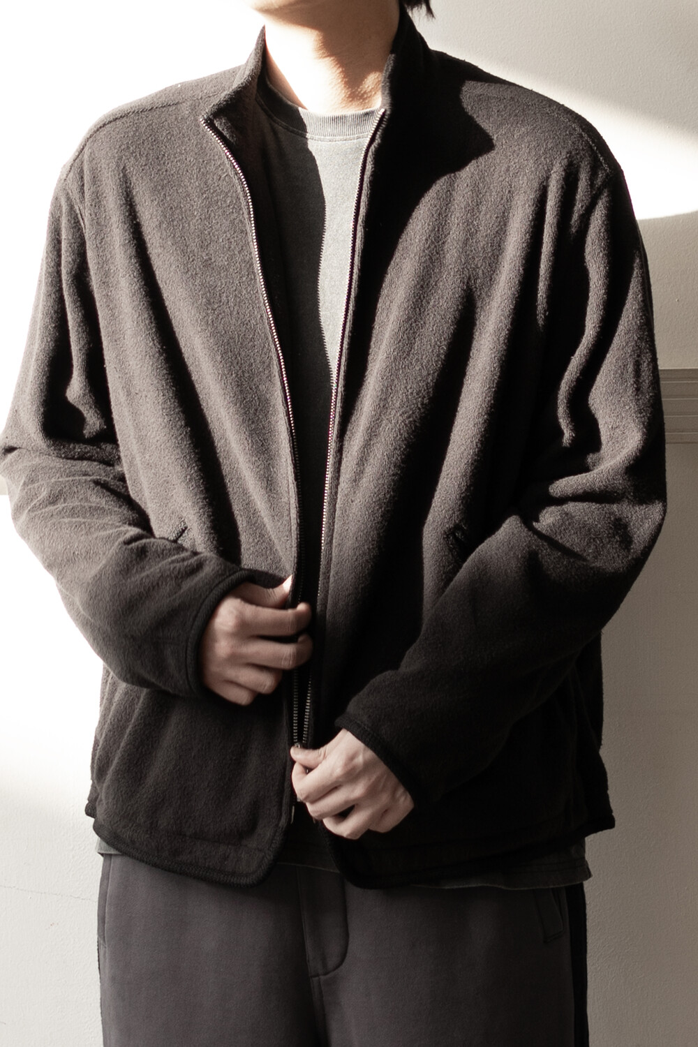 밀도감 있는 코튼 베이스 고리가 서있는 테리 조직에 양면으로 양기모를 낸 원단을 사용했습니다. 일반적인 테리 조직의 경우 후면에서 폴리사가 잡아주어 살에 닿는 부분에 불편감이 있어, 중앙에서 잡아주고 양면에 코튼 조직이 드러나게 직조하여 착용감이 좋습니다.