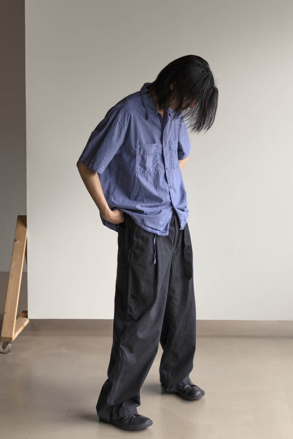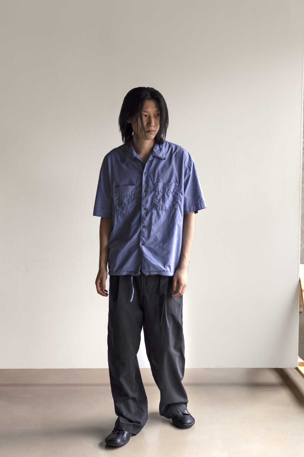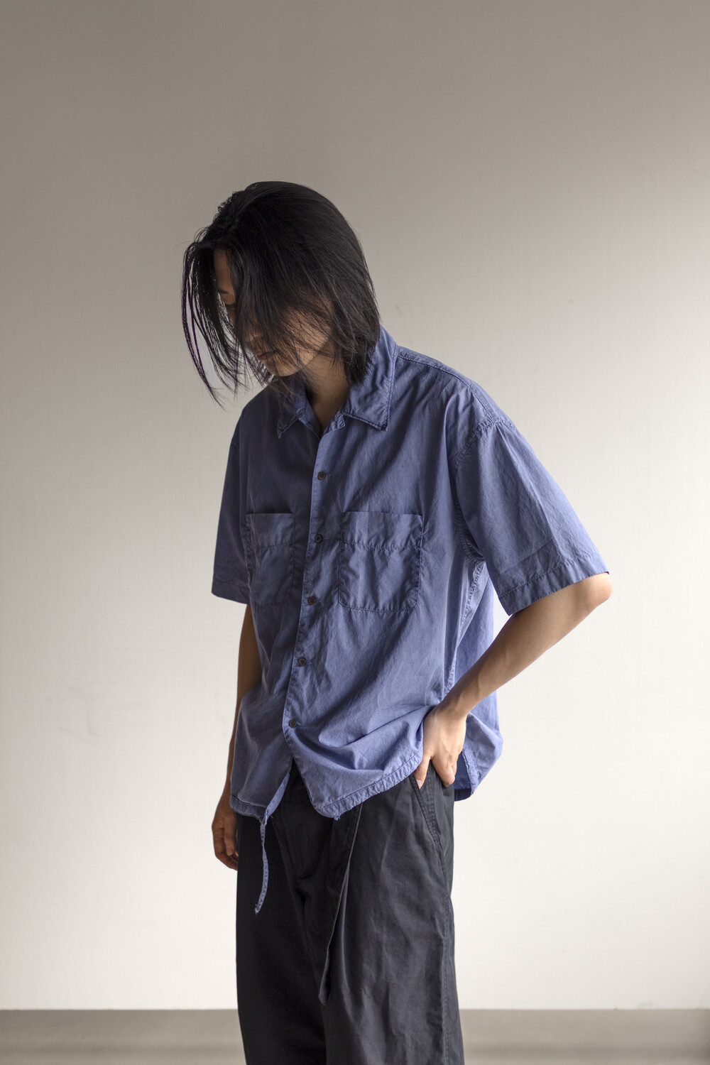 two pocket half shirt - washed blue