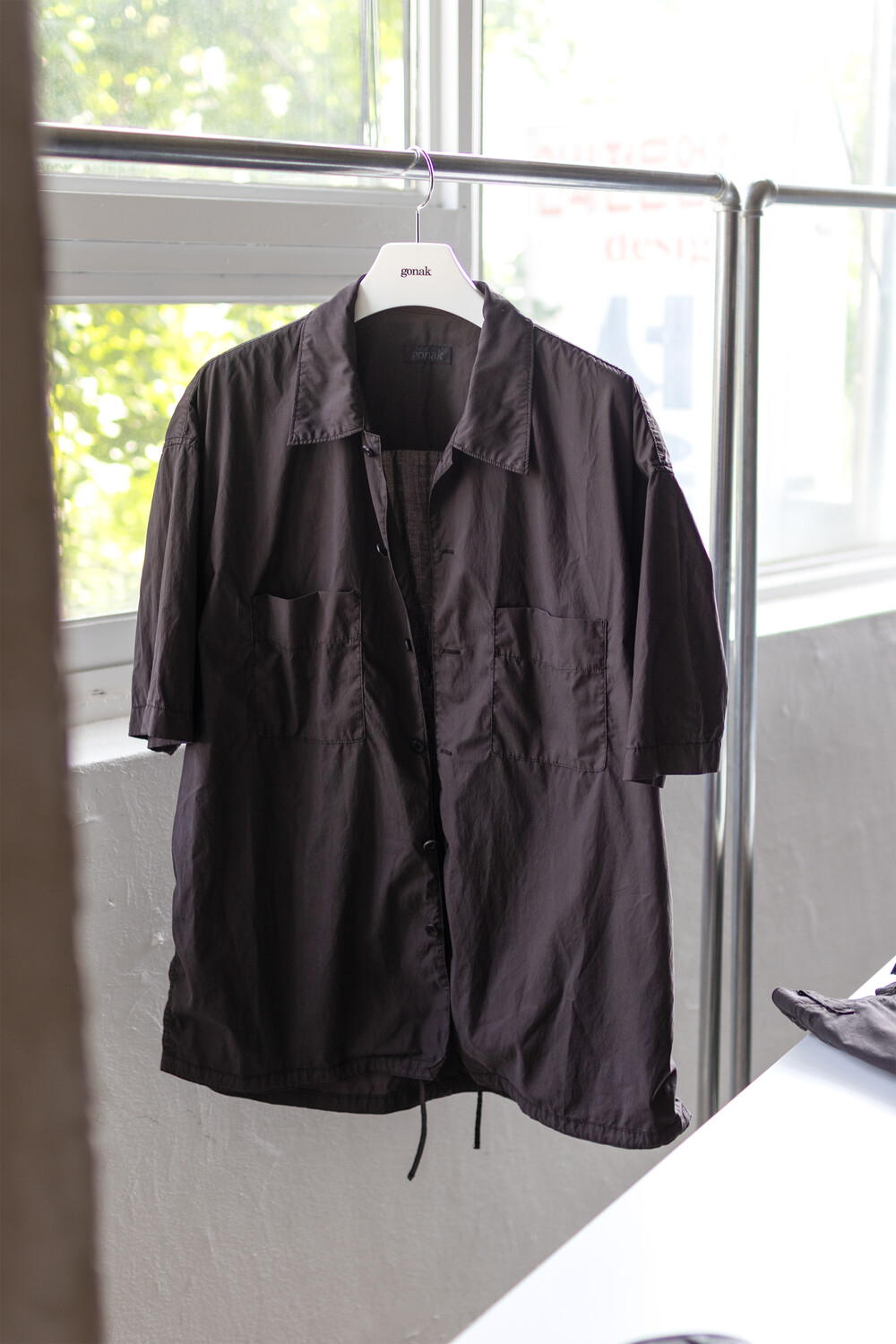 촉촉하고 부드러운 터치의 코튼/모달 혼방 원단으로 베이스로 가슴 전면에는 두개의 포켓을, 하단에는 품을 조절할 수 있는 끈을 설치한 <two-poket half shirt>입니다.