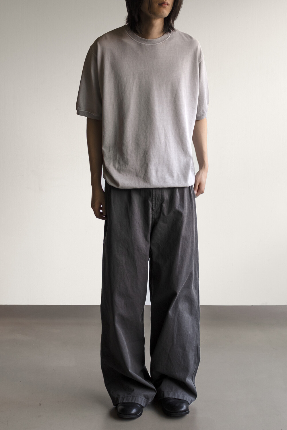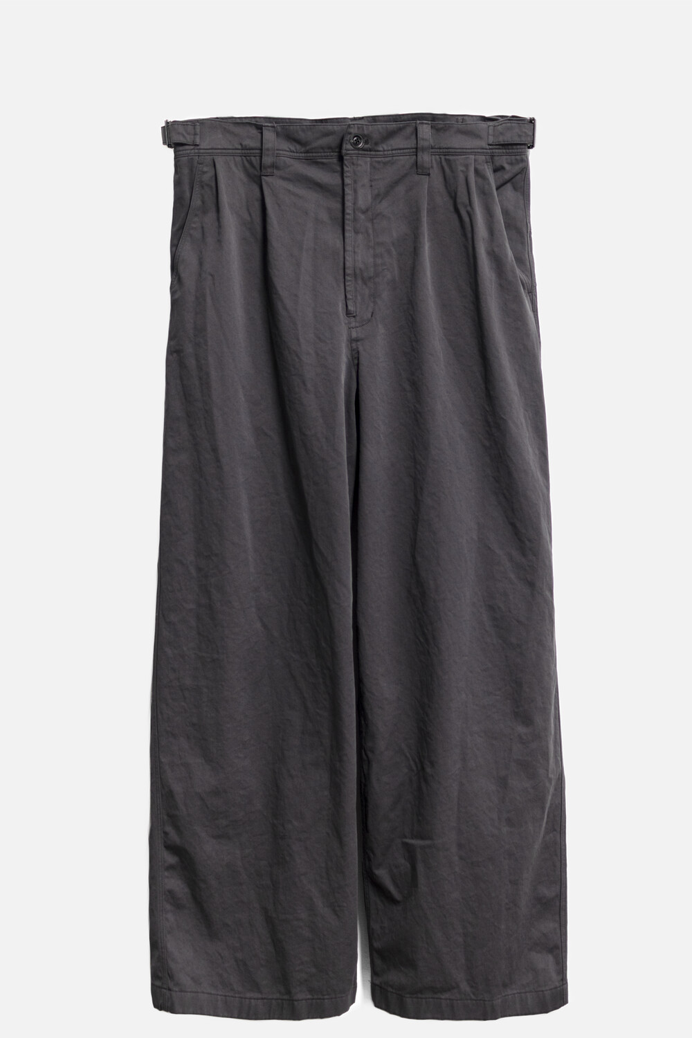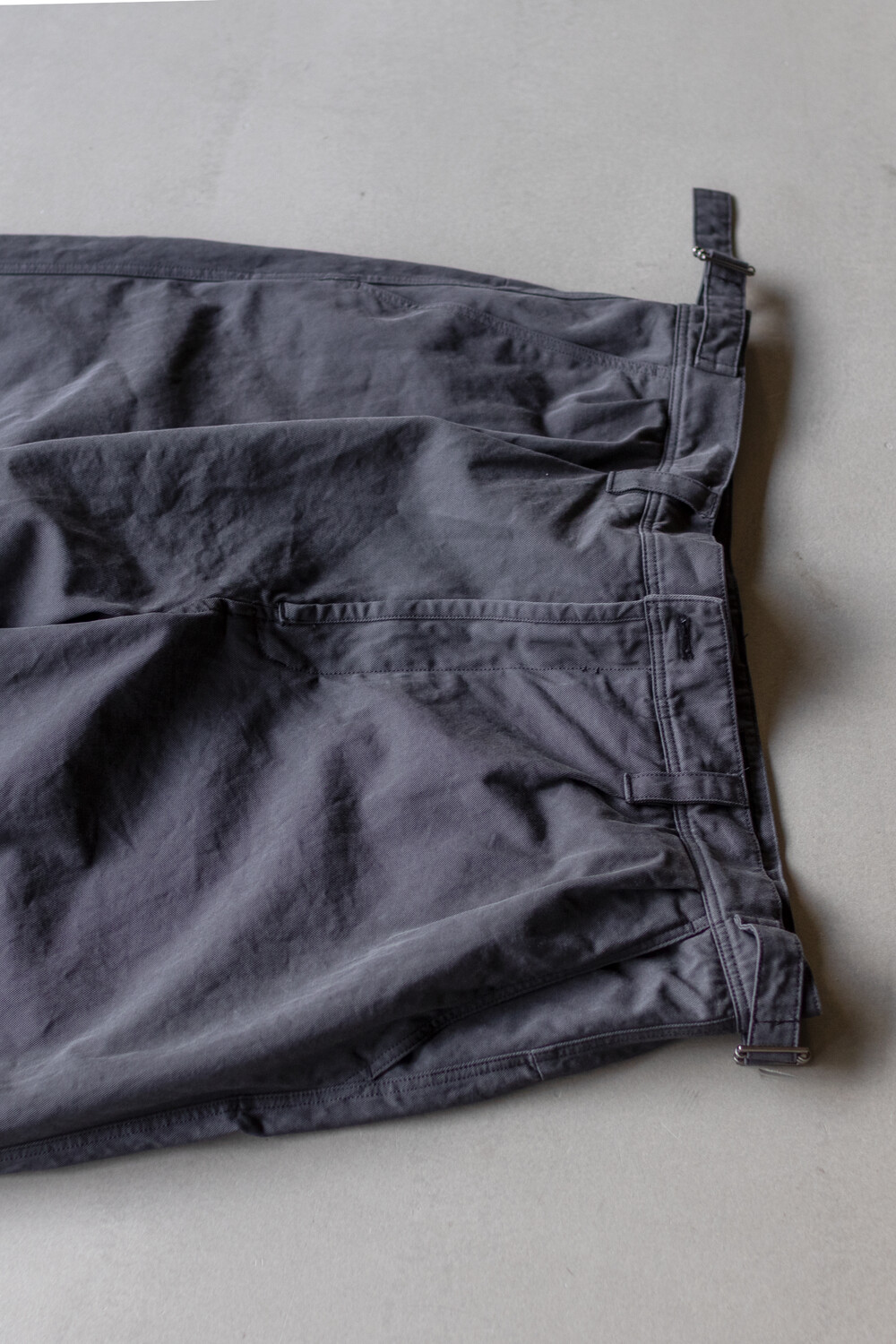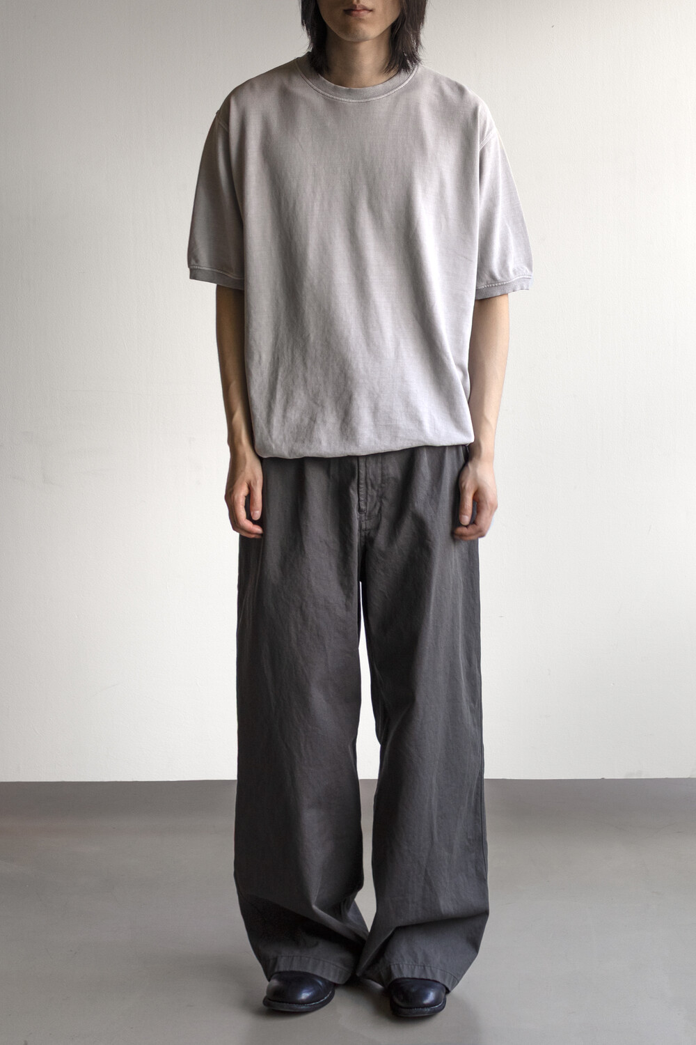 선명하고 깊은 골의, 튼튼한 짜임의 20수 코튼 드릴 원단을 사용. 소프트한 턱 설치로 상동의 여유감. 전반적으로 여유 있는 실루엣의 <washed chino pants>입니다.
