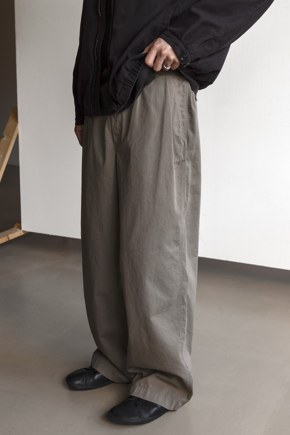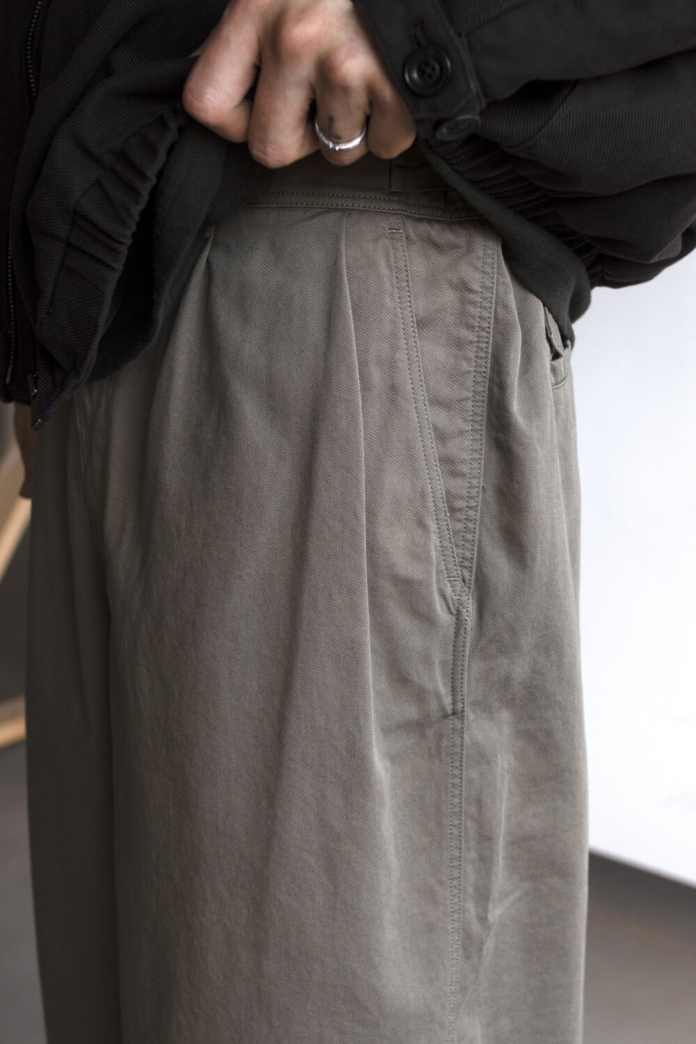 ring-spun으로 내구성과 부드러움을 갖는 20수 드릴 조직의 코튼 원단으로 제작된 <washed chino pants>입니다.