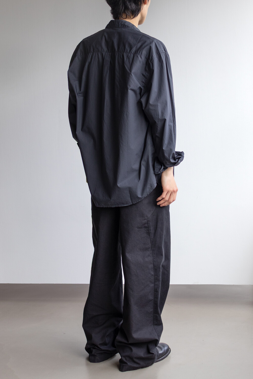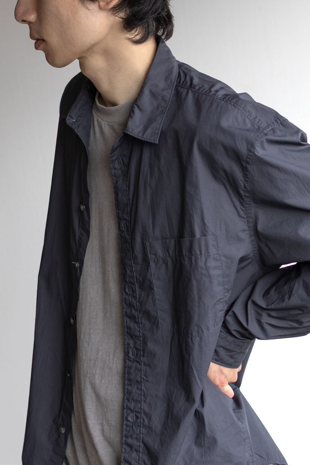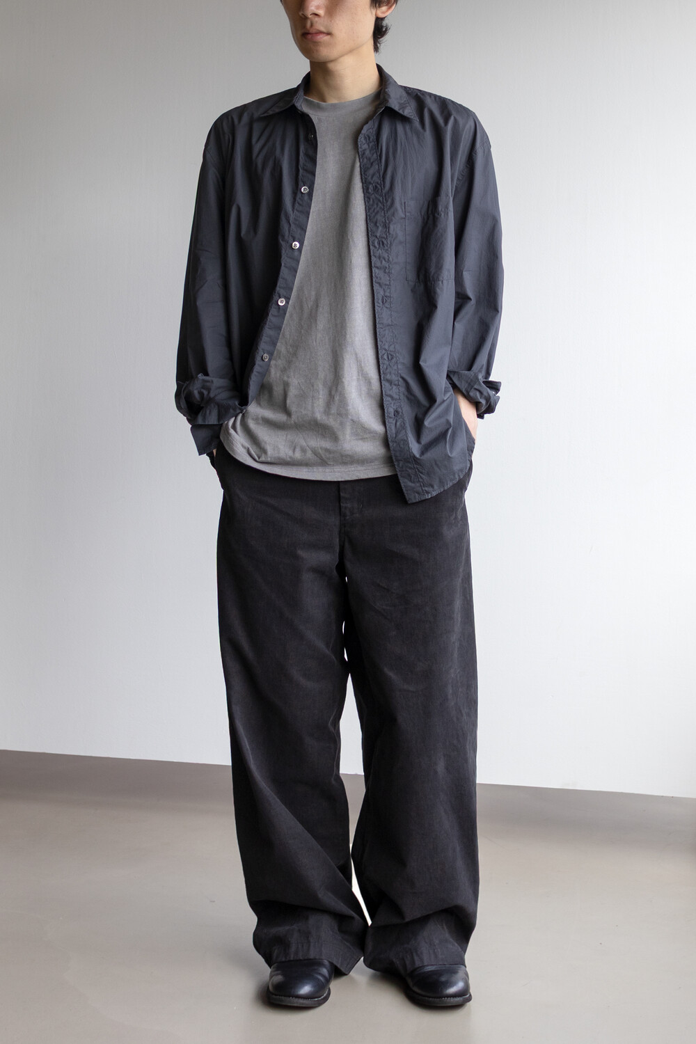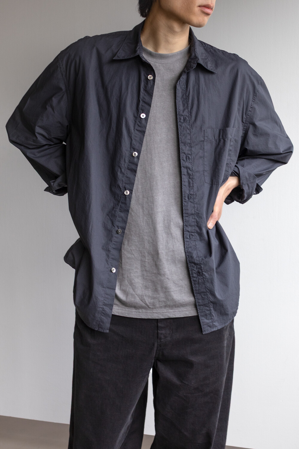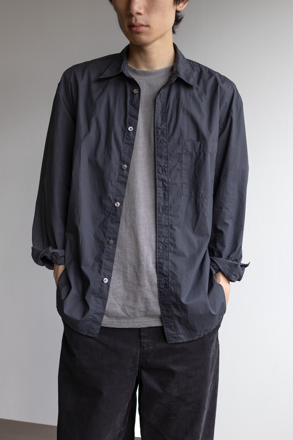 - 앞섬과 넥 카라 단에 비접착 심지를 사용. 봉제 완성 후 두 차례 고낙의 레시피로 후가공하여 앞섬과 넥-카라, 봉제 부위에 자연스러운 퍼커링이 형성되는 동시에 부드럽고 터치와 함께 감기는 실루엣입니다.