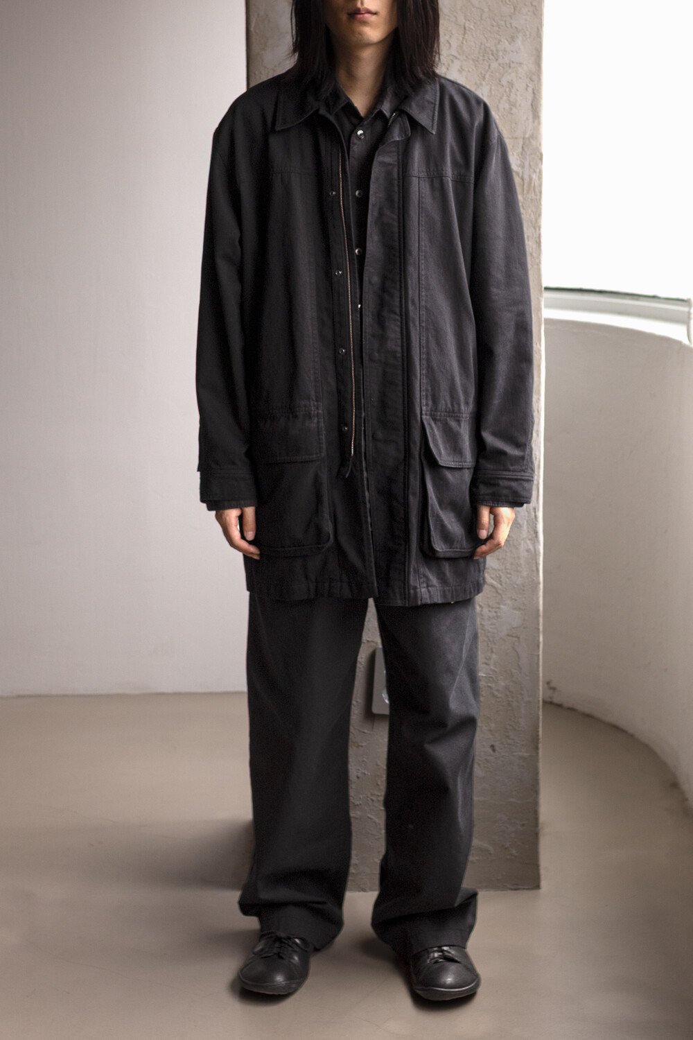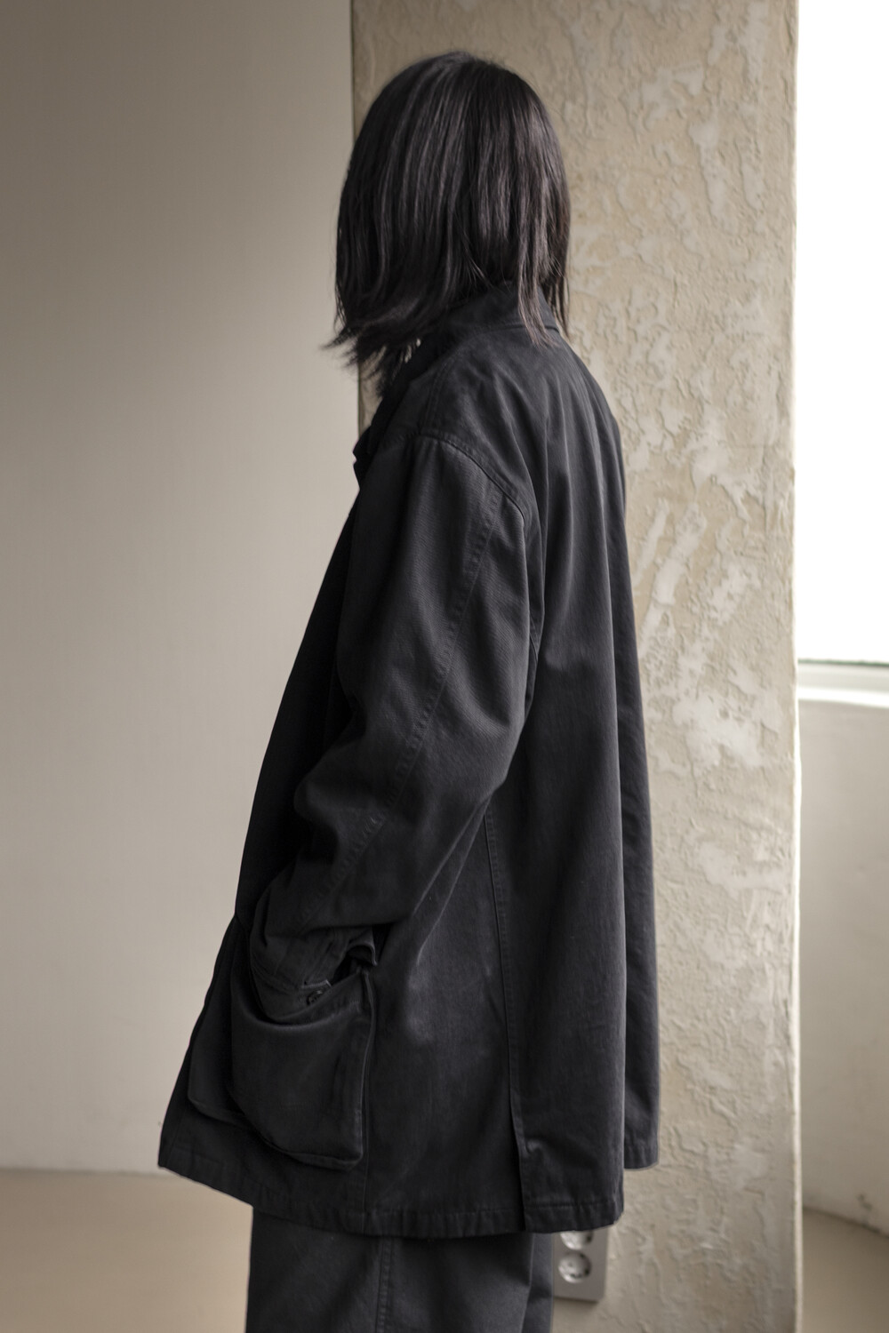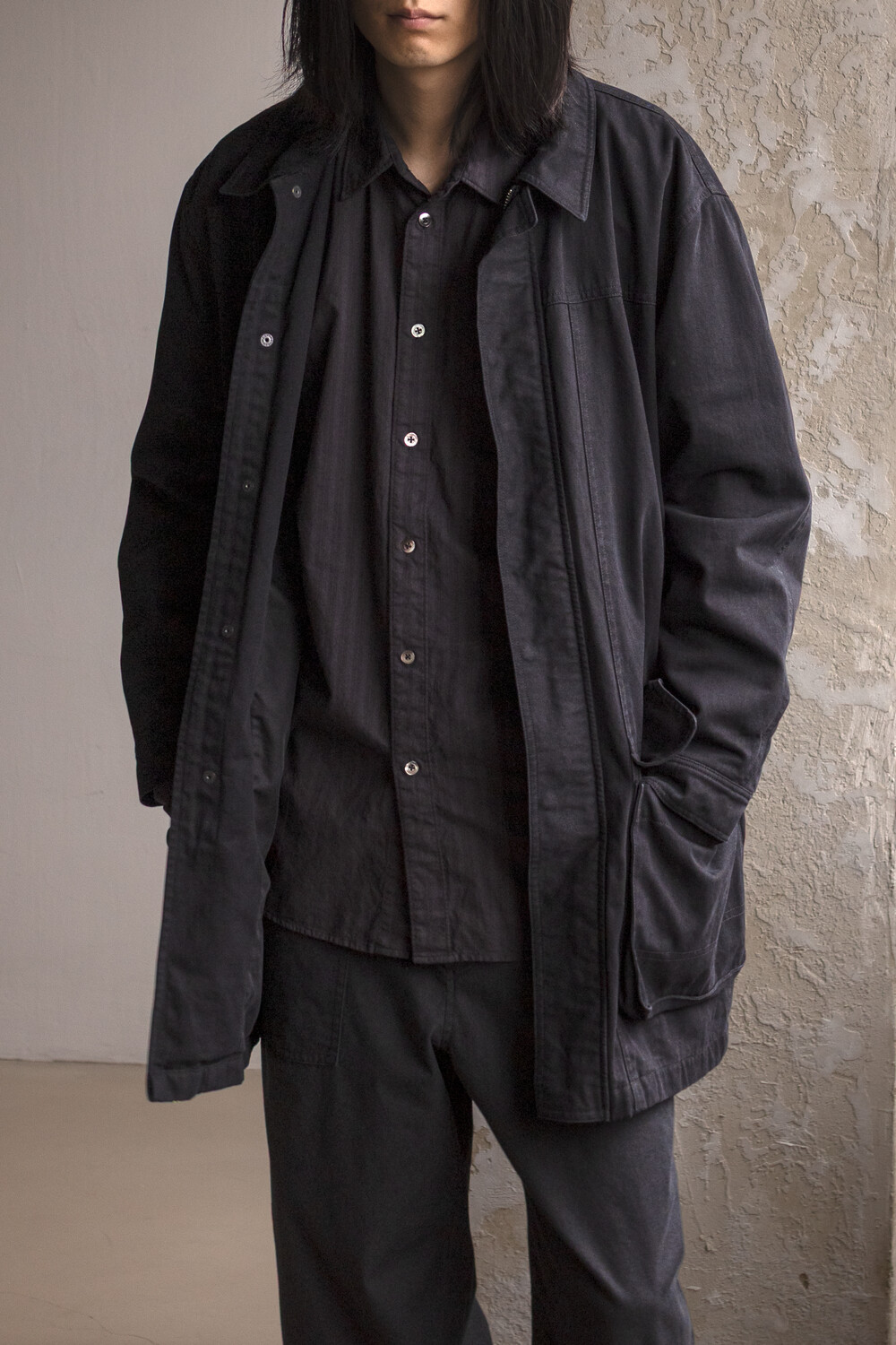 밀도감 있고 부드러운 헤비코튼 원단을 겉감으로, 라이너 자켓 등과 겹겹이 레이어드하여 착용할 수 있도록 여유 있는 품/실루엣을 갖는 <washed heavy cotton car coat>입니다.
