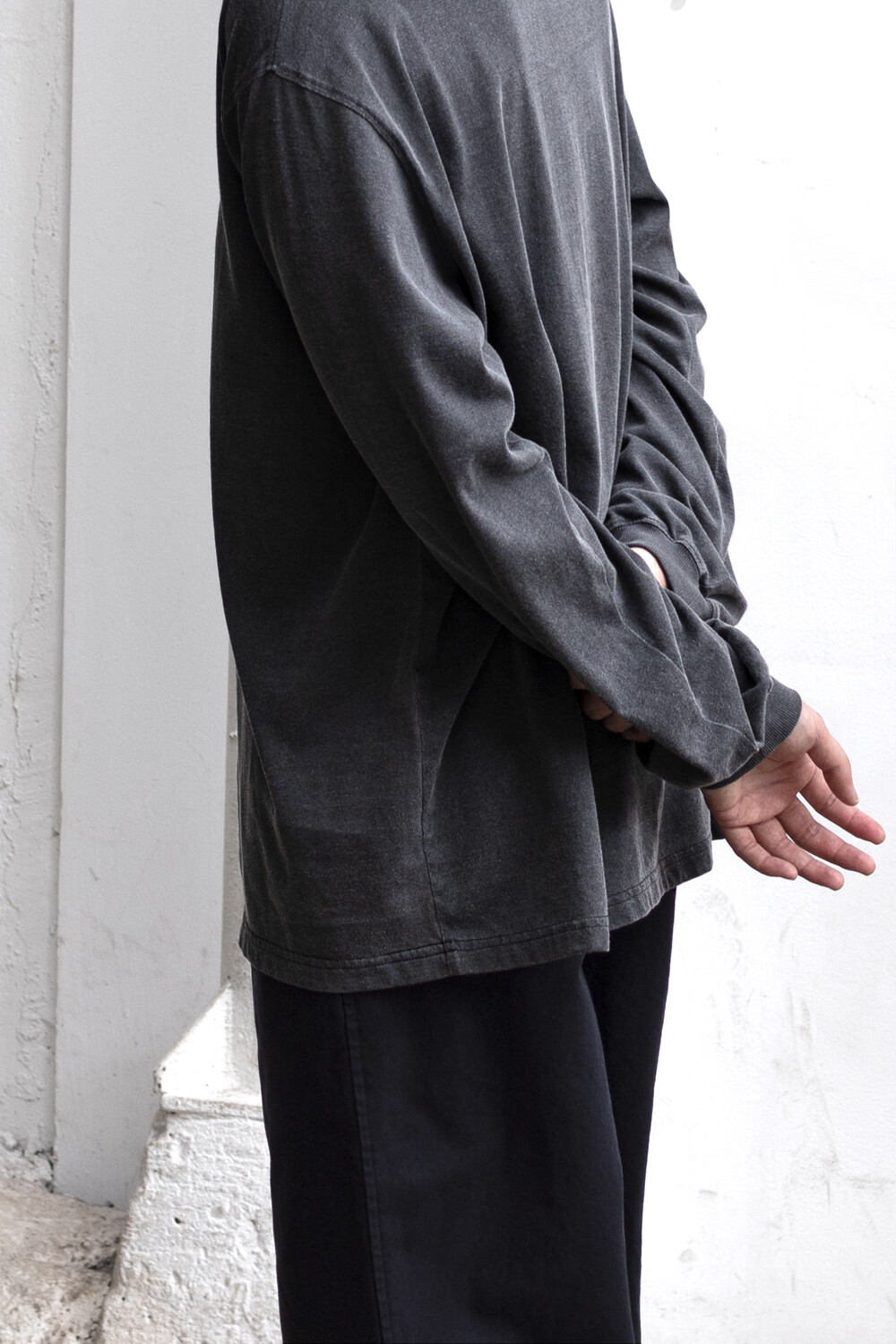 피그먼트 다잉의 자연스러운 페이드와 적당히 여유있는 실루엣의 <워시드 롱 슬리브>입니다.