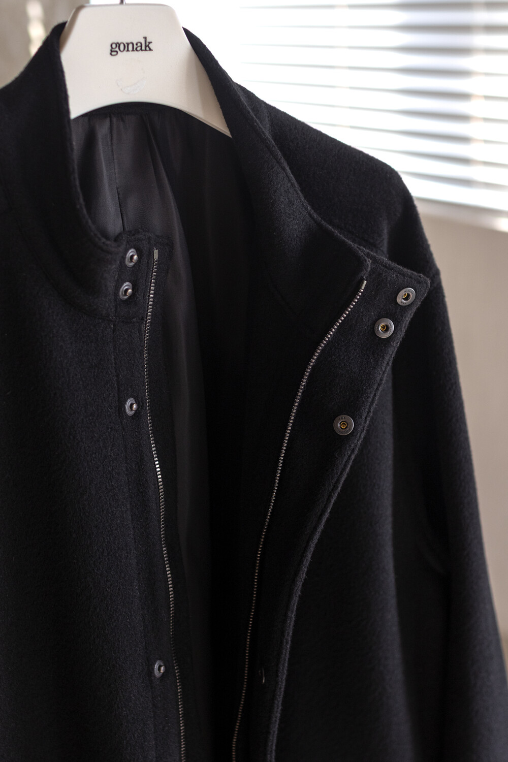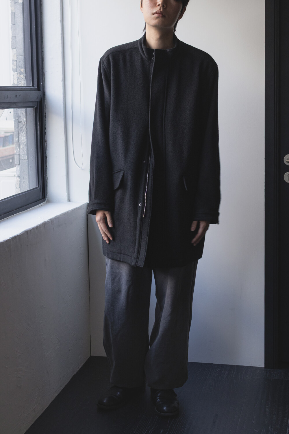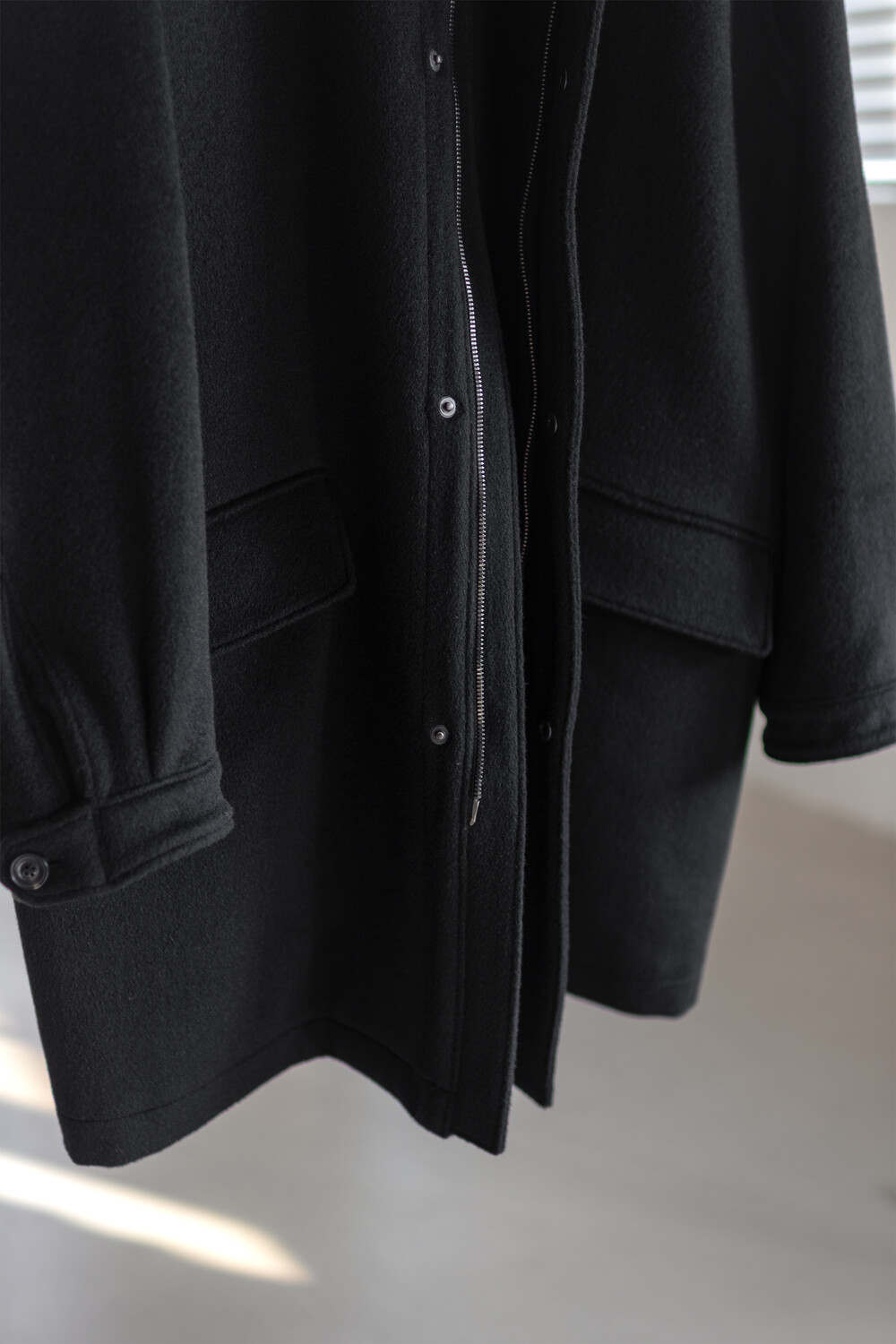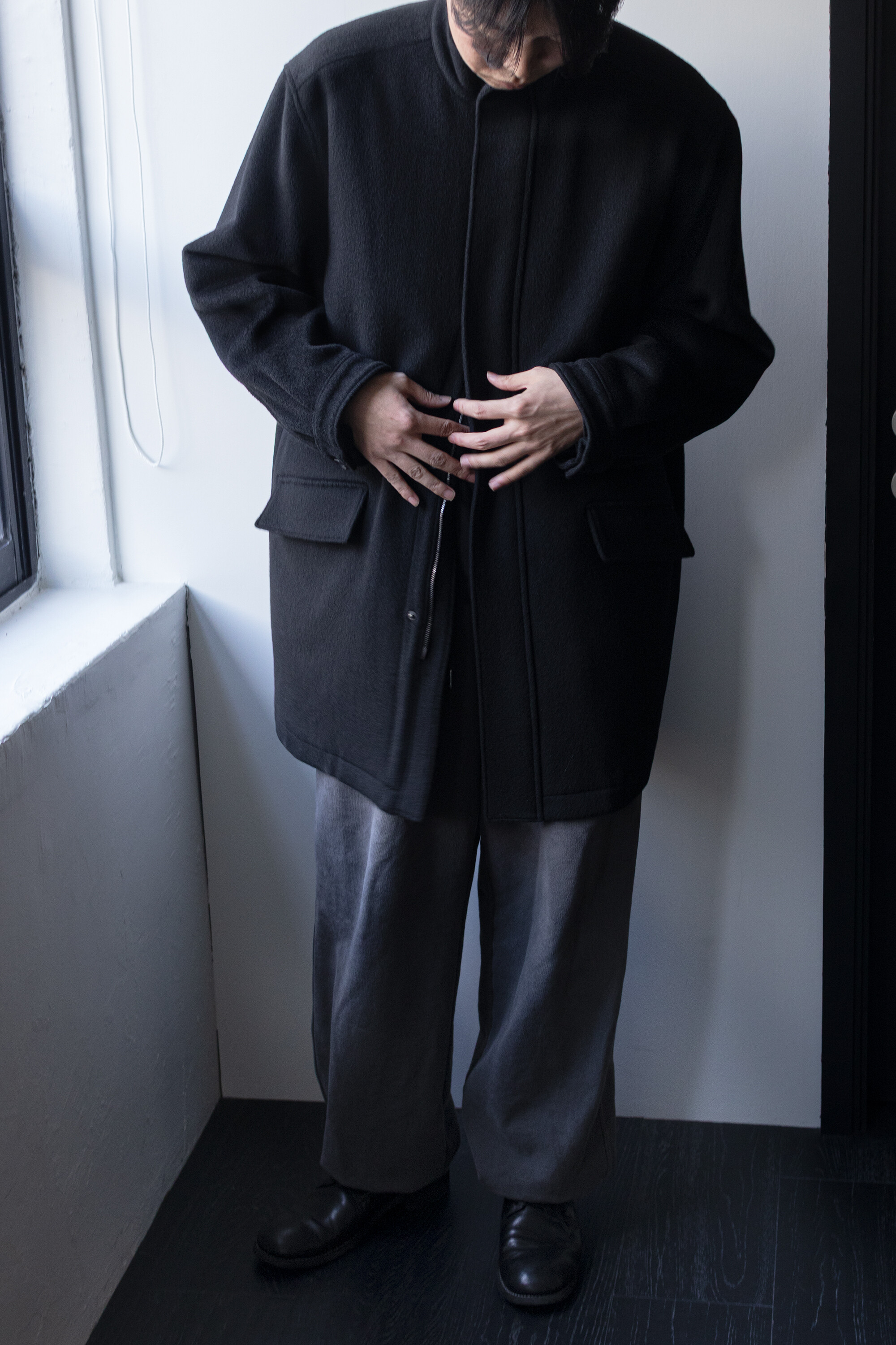 24시즌 알파카 모즈 파카에서부드럽고 유려한 착용감의 울/앙고라 소재를 겉감으로. 엑셀라 지퍼등의 부속 사양. 실루엣 미세조정과 함께 기장감 키움 등의 수정이 있었습니다.