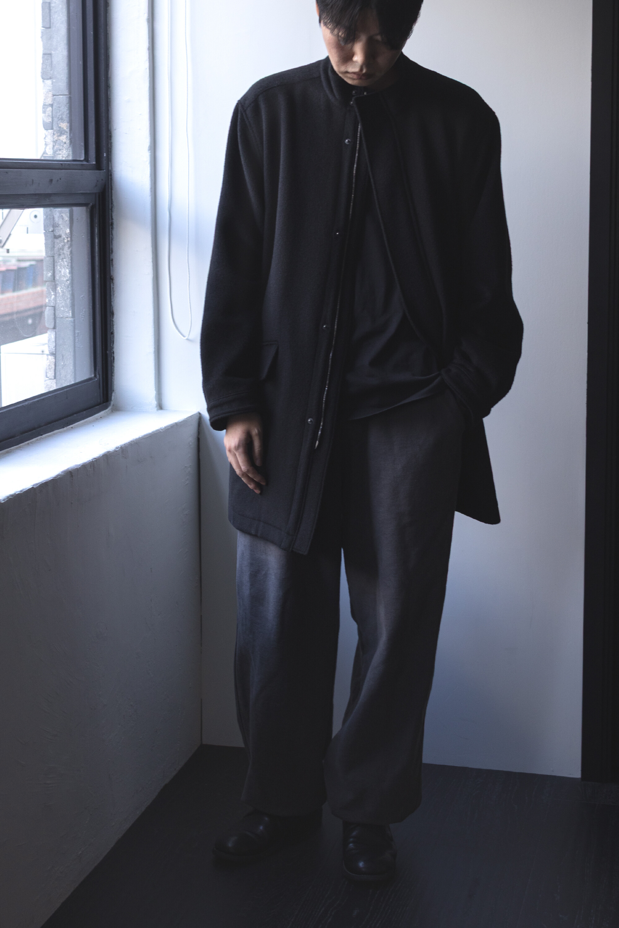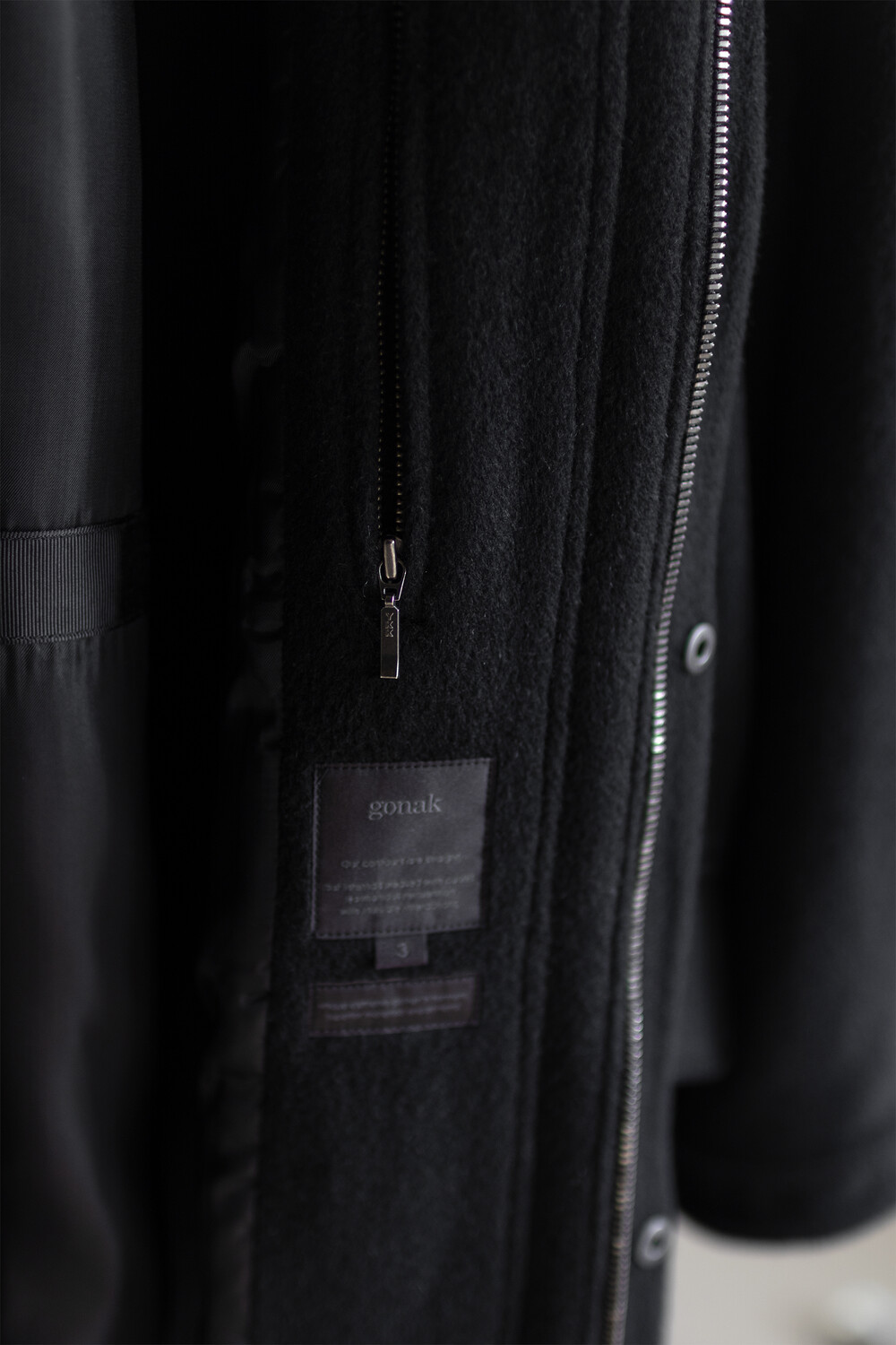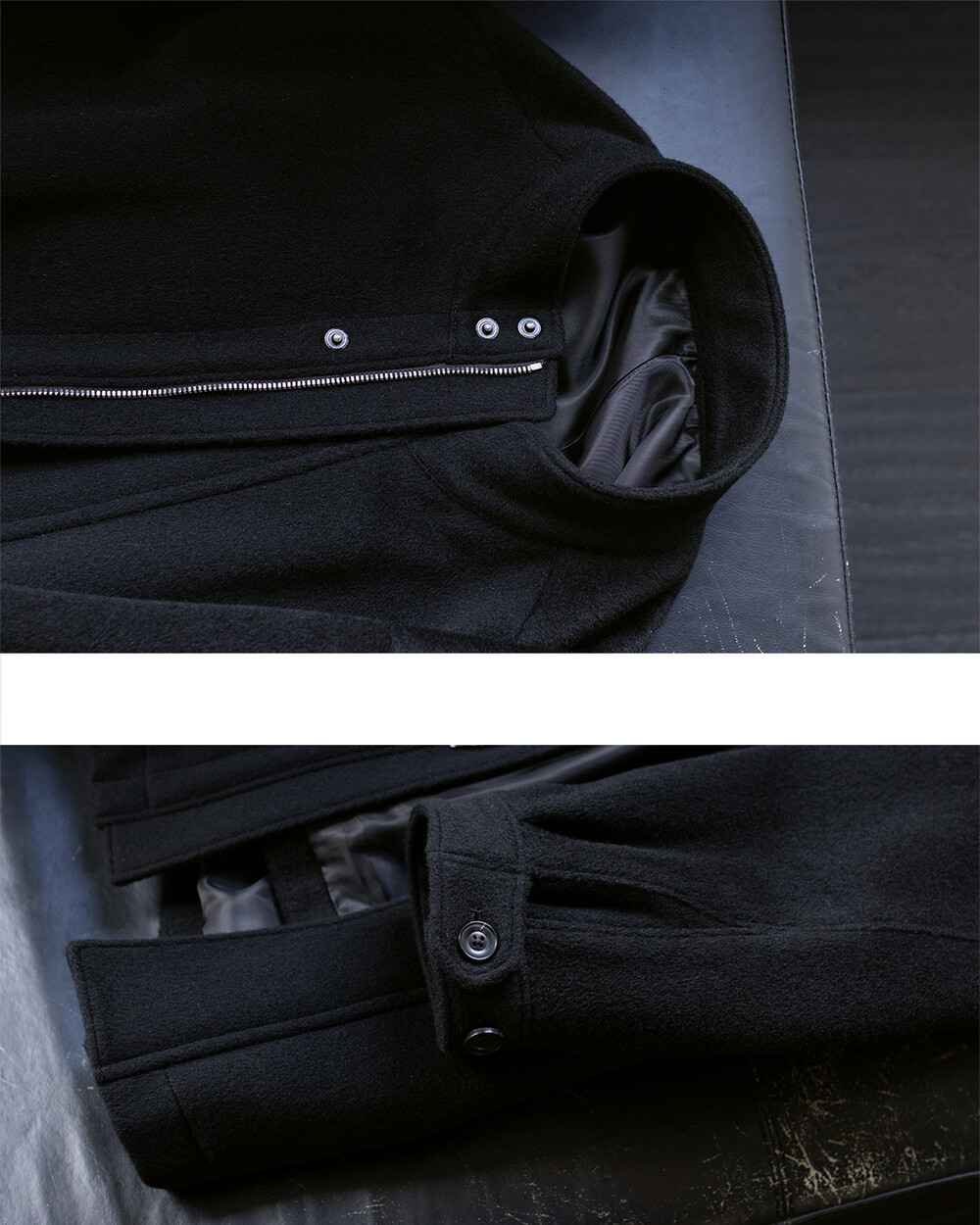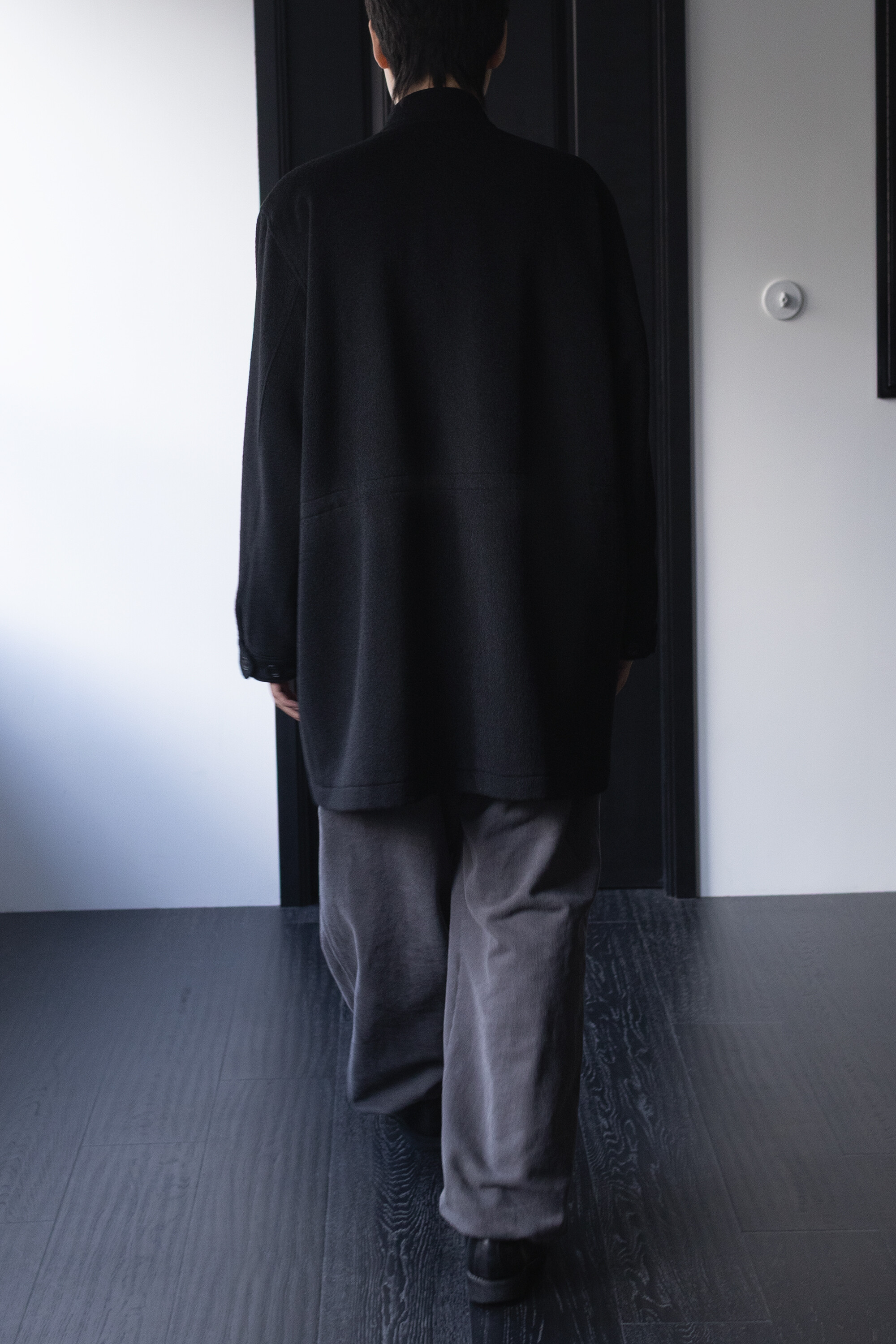 24시즌 알파카 모즈 파카에서부드럽고 유려한 착용감의 울/앙고라 소재를 겉감으로. 엑셀라 지퍼등의 부속 사양. 실루엣 미세조정과 함께 기장감 키움 등의 수정이 있었습니다.