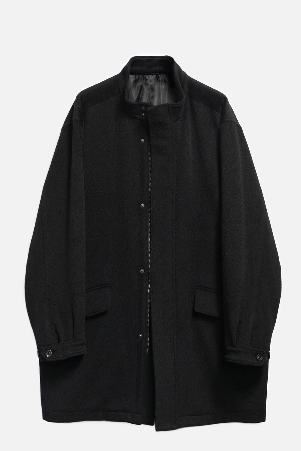 넥을 감싸는 하이넥 형태의 카라. 여유있는 실루엣으로 겹겹이 레이어드하여 착용할 수 있는 울 앙고라 모즈 파카입니다.